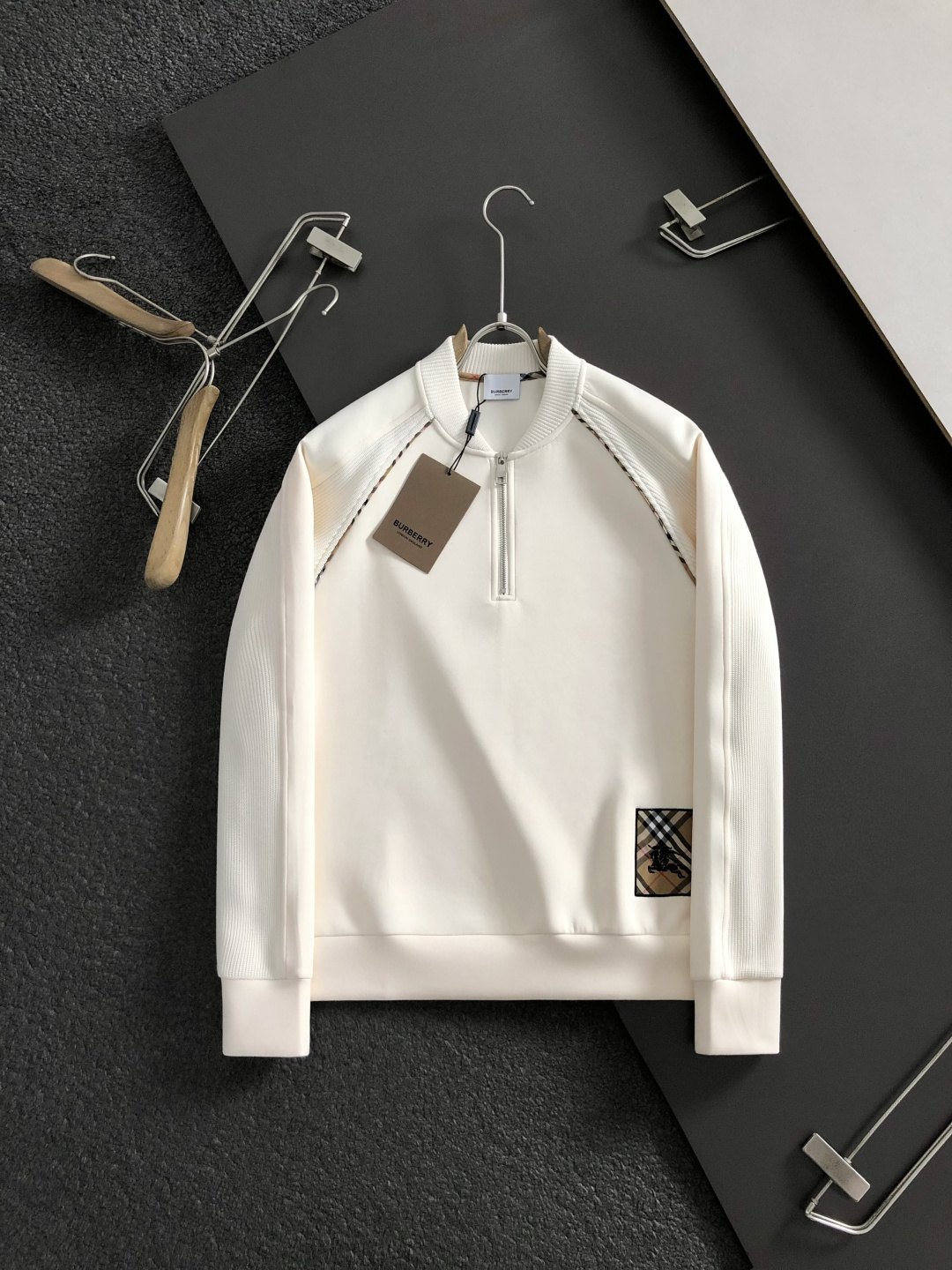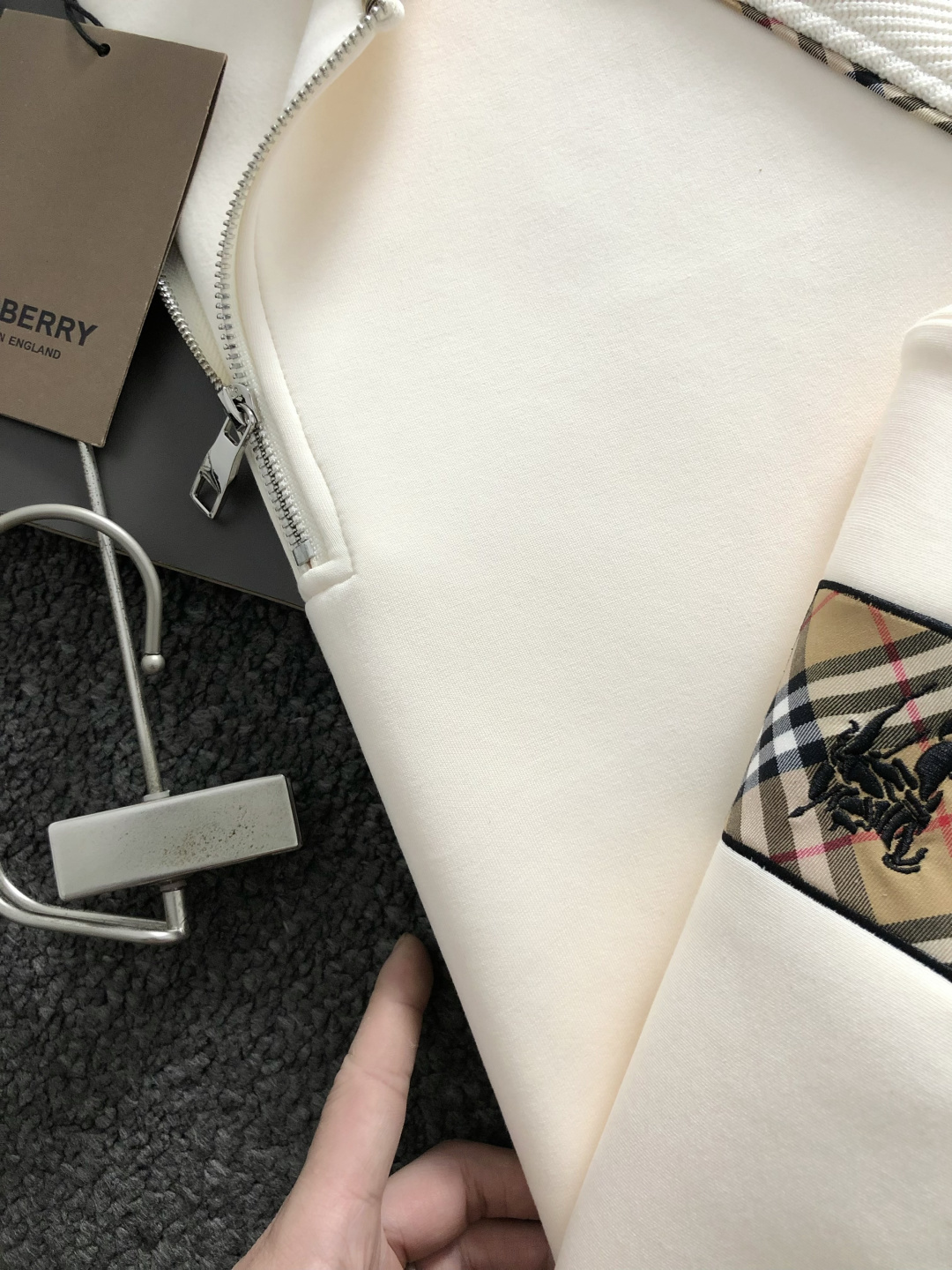這款衣服是AAAAA 1:1 質量(非常棒). 使用了和原版一模一樣的材料. 商標部分也保持了和巴寶莉/Burberry一樣. 圖片拍攝是實物衣服拍攝, 您所收到的實物保證和我們圖片一模一樣.