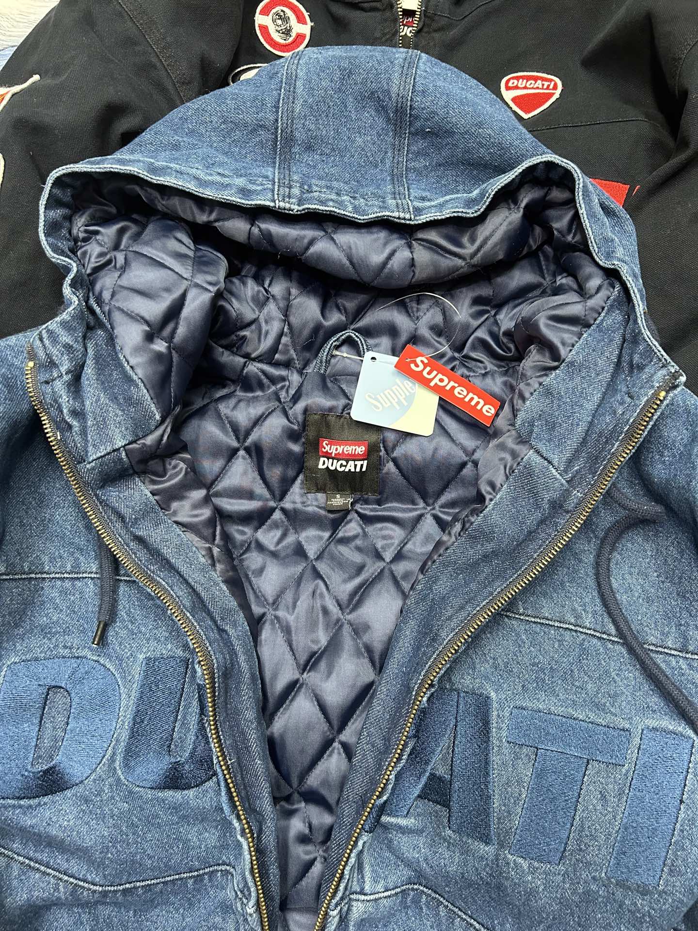 這款衣服是AAAAA 1:1 質量(非常棒). 使用了和原版一模一樣的材料. 商標部分也保持了和Superme一樣. 圖片拍攝是實物衣服拍攝, 您所收到的實物保證和我們圖片一模一樣.