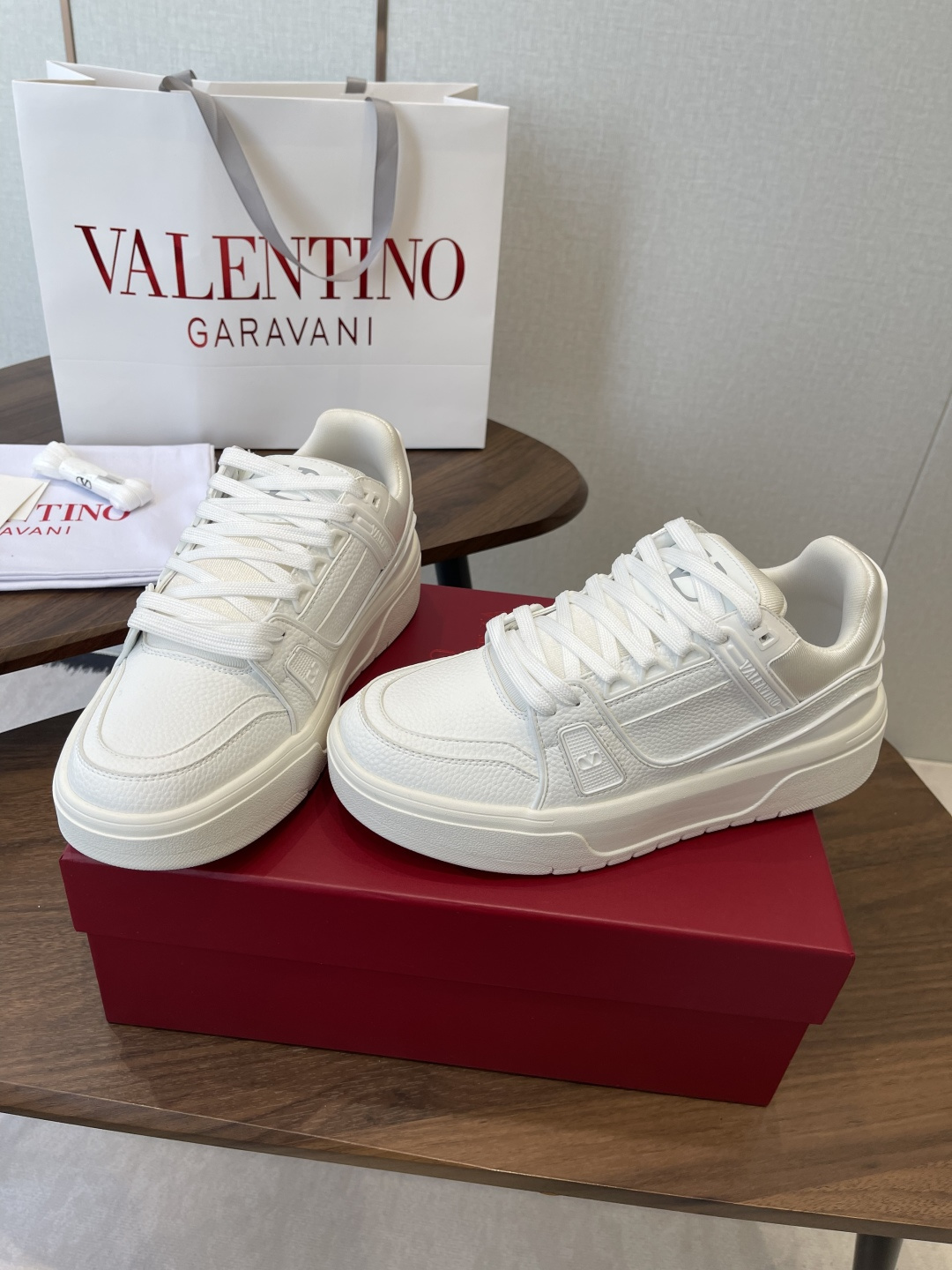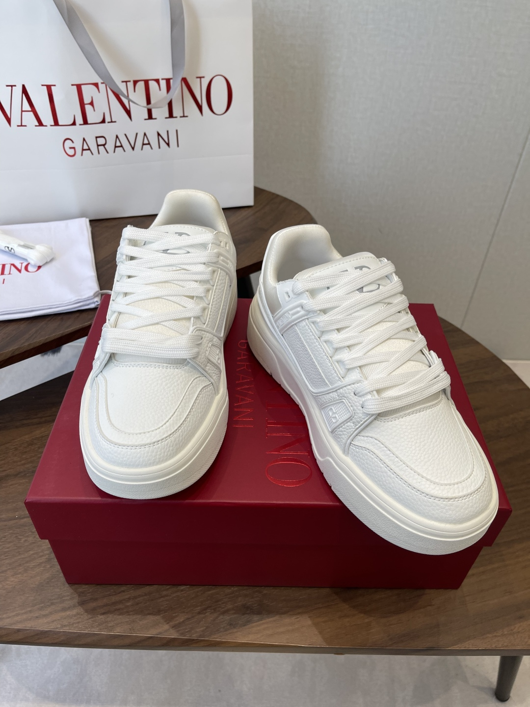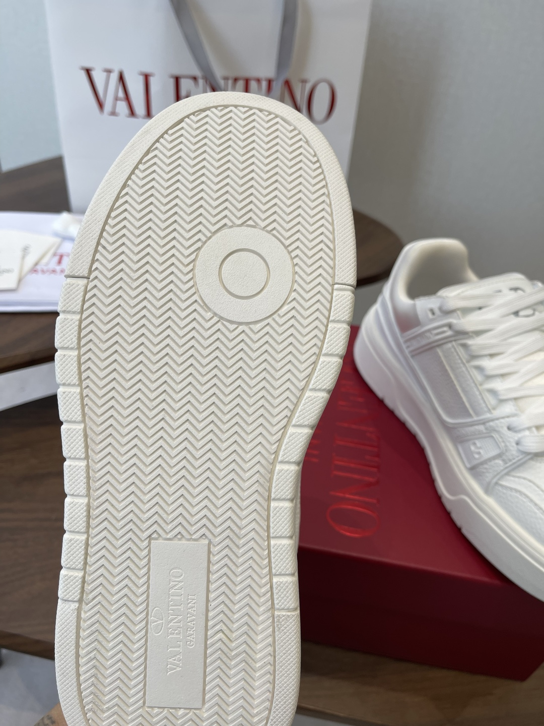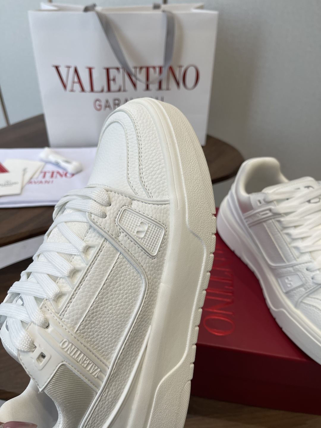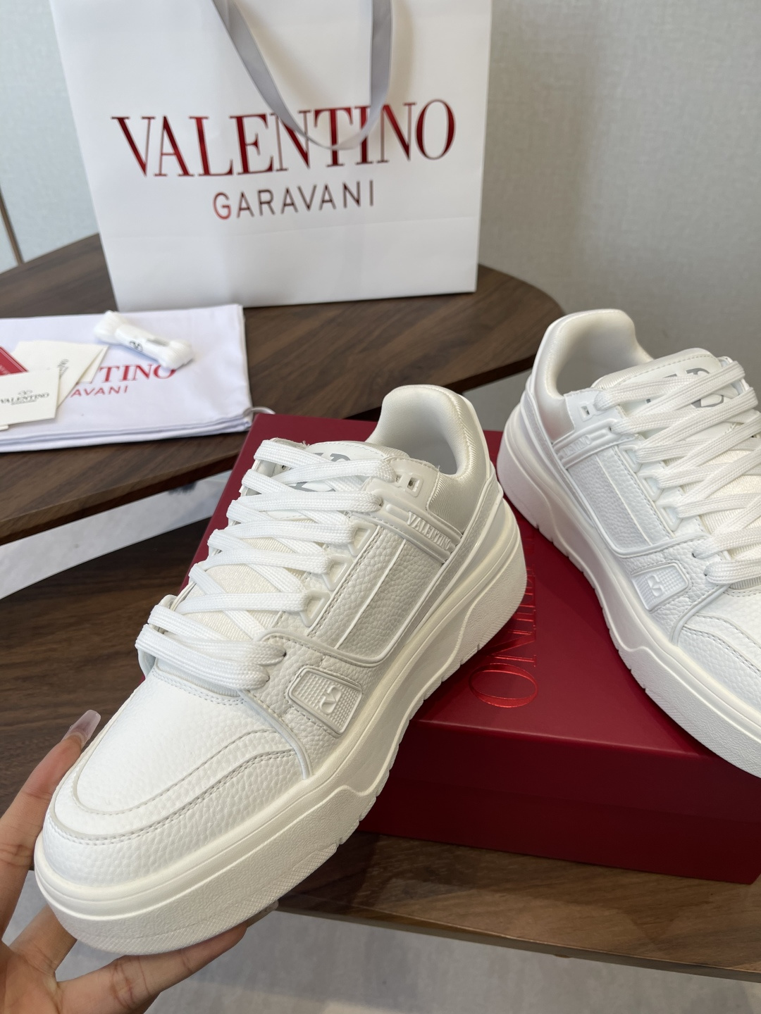 這款鞋子是AAAAA 1:1 質量(非常棒). 使用了和原版一模一樣的材料. 商標部分也保持了和瓦倫蒂諾/Valentino一樣. 圖片拍攝是實物鞋子拍攝, 您所收到的實物保證和我們圖片一模一樣.