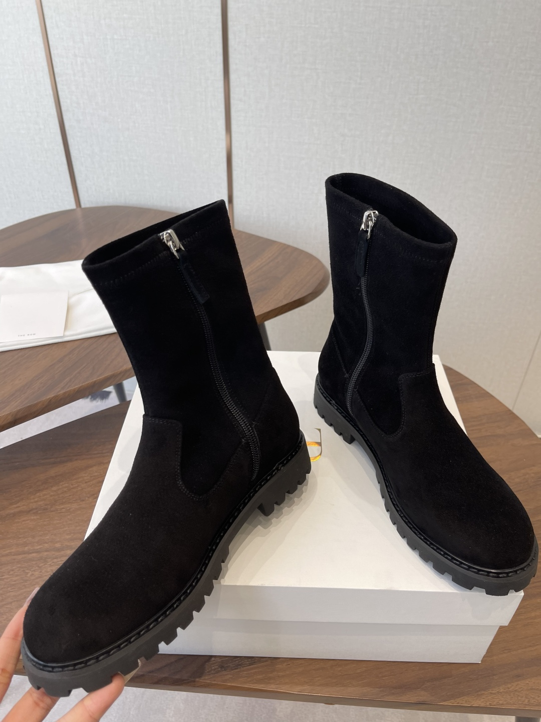 這款鞋子是AAAAA 1:1 質量(非常棒). 使用了和原版一模一樣的材料. 商標部分也保持了和The Row一樣. 圖片拍攝是實物鞋子拍攝, 您所收到的實物保證和我們圖片一模一樣.