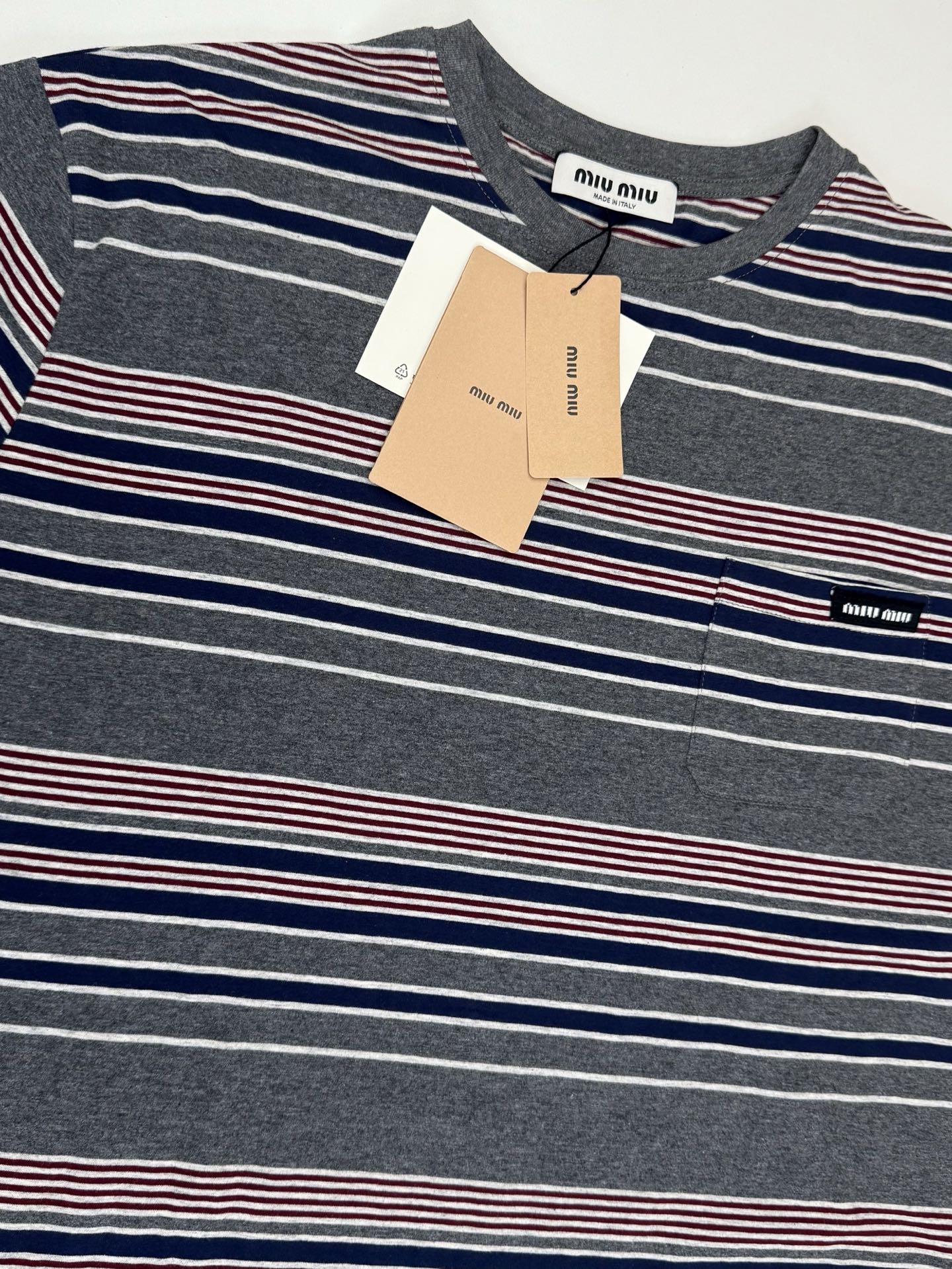 這款衣服是AAAAA 1:1 質量(非常棒). 使用了和原版一模一樣的材料. 商標部分也保持了和繆繆/Miu Miu一樣. 圖片拍攝是實物衣服拍攝, 您所收到的實物保證和我們圖片一模一樣.