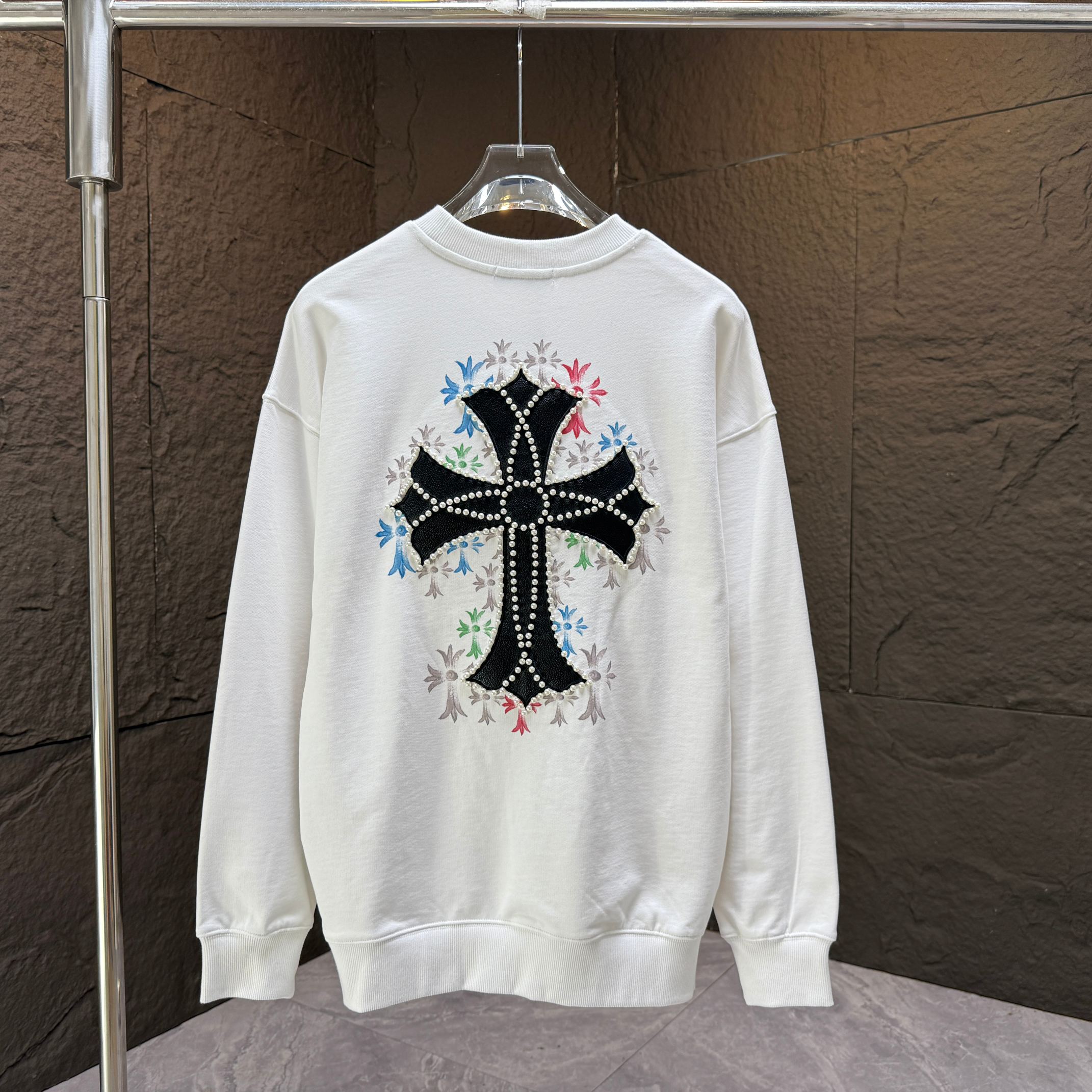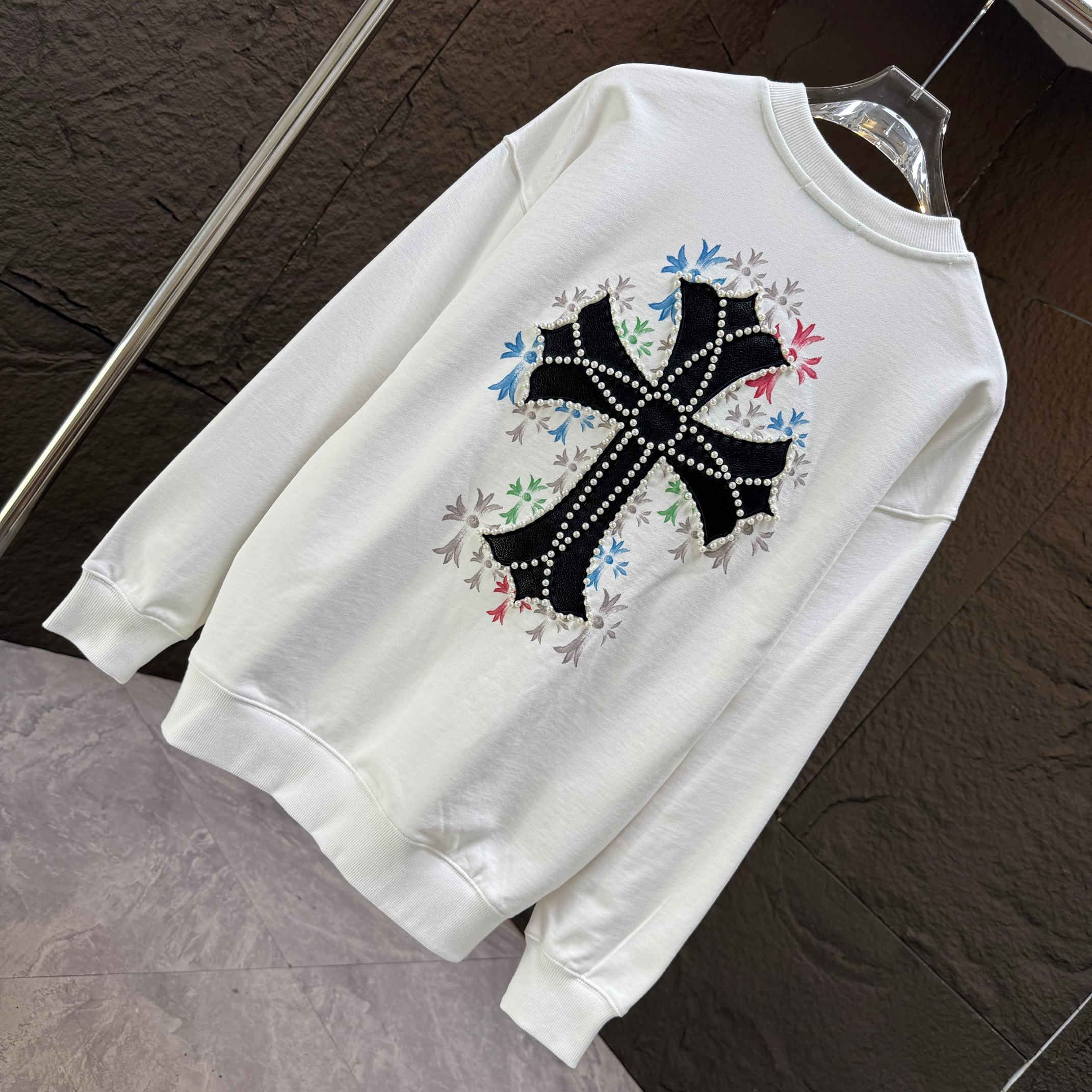 這款衣服是AAAAA 1:1 質量(非常棒). 使用了和原版一模一樣的材料. 商標部分也保持了和鉻心/Chrome Hearts一樣. 圖片拍攝是實物衣服拍攝, 您所收到的實物保證和我們圖片一模一樣.