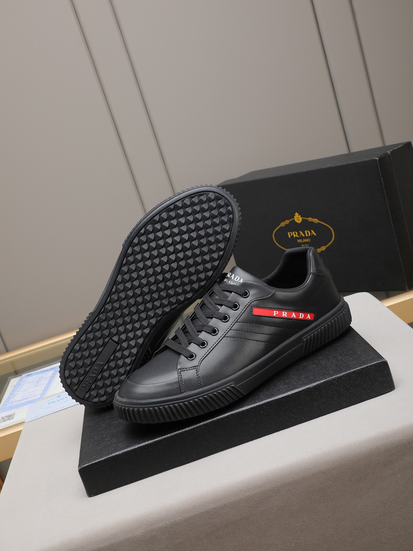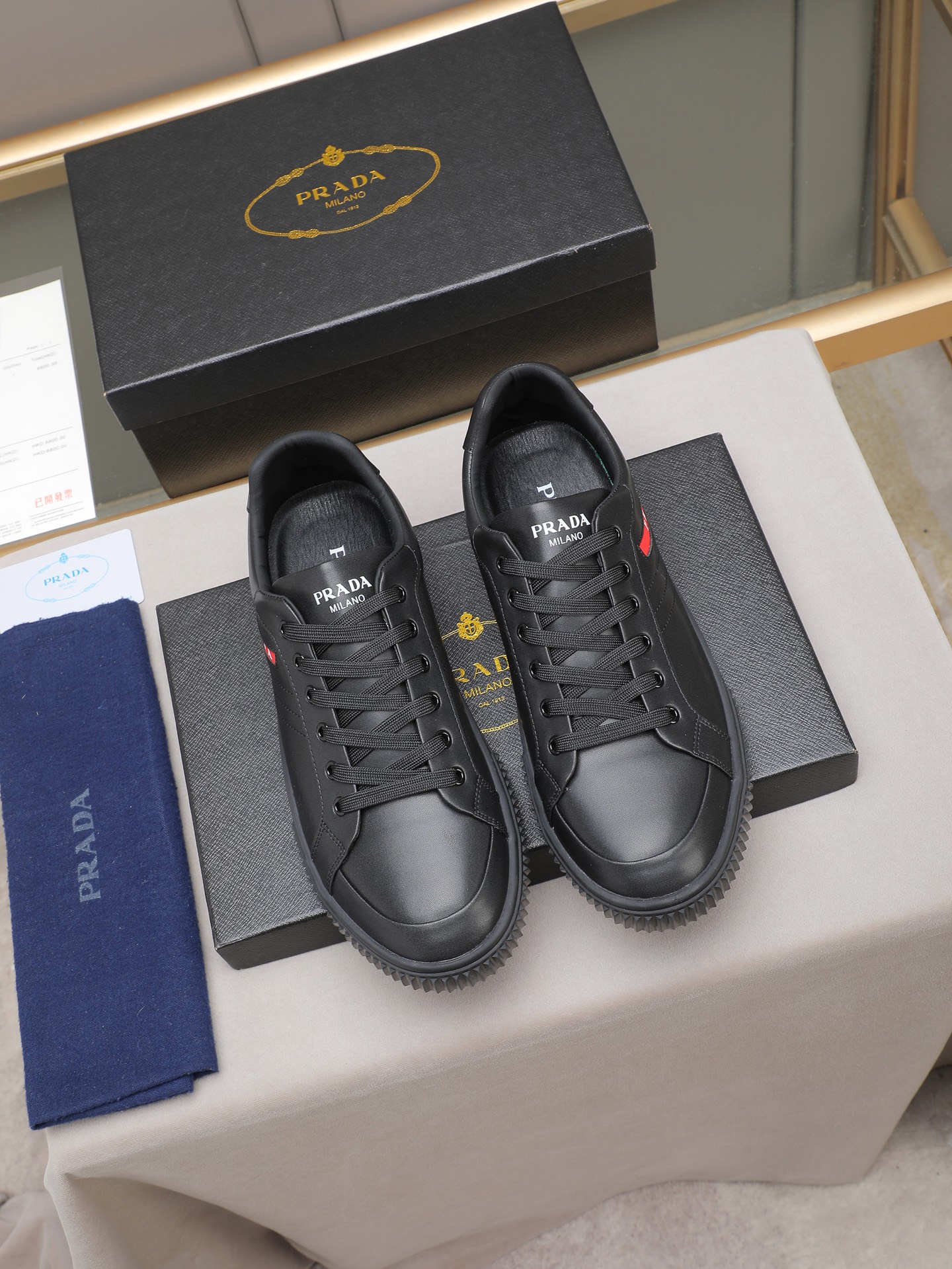 這款鞋子是AAAAA 1:1 質量(非常棒). 使用了和原版一模一樣的材料. 商標部分也保持了和普拉達/Prada一樣. 圖片拍攝是實物鞋子拍攝, 您所收到的實物保證和我們圖片一模一樣.