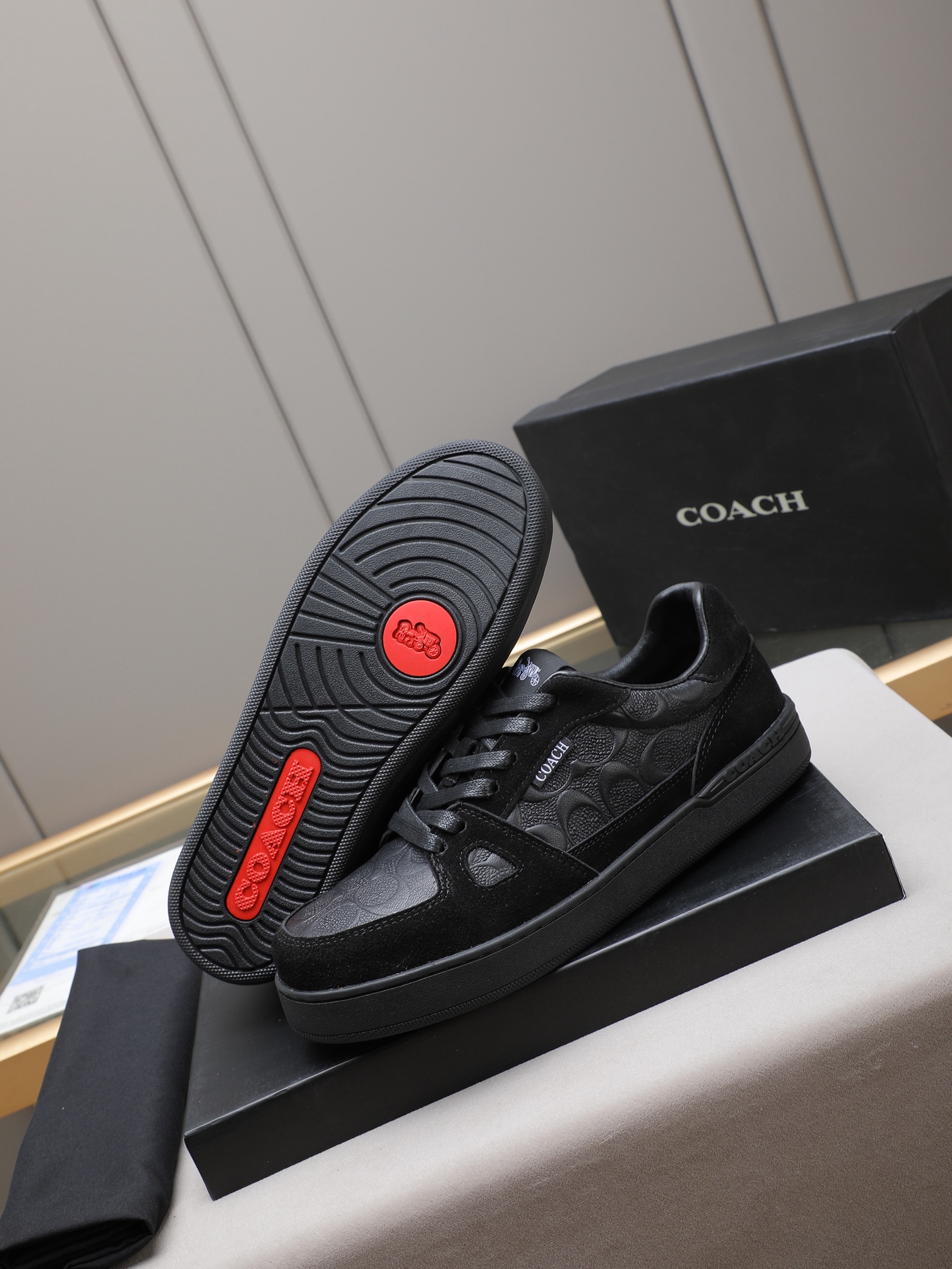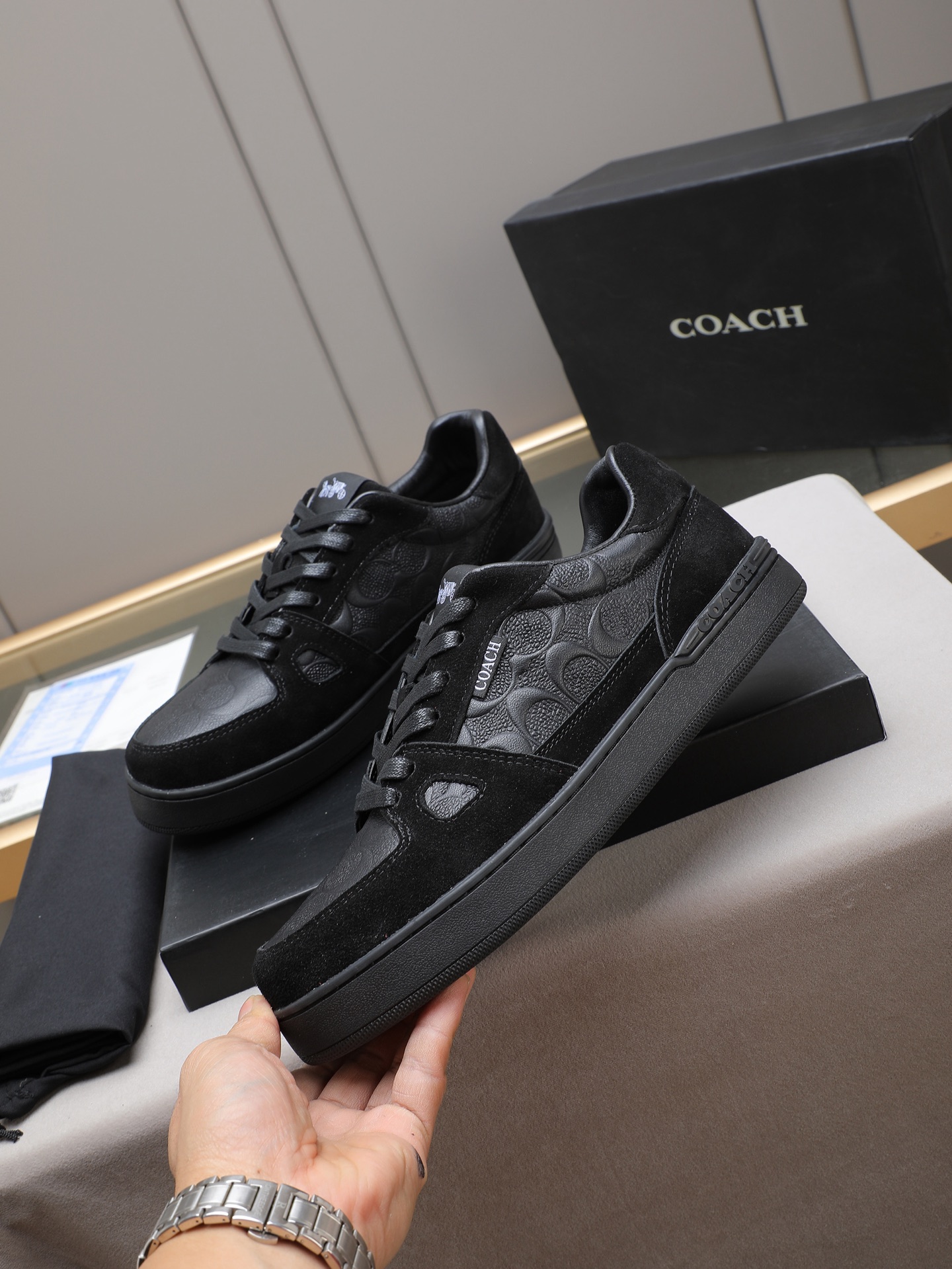 這款鞋子是AAAAA 1:1 質量(非常棒). 使用了和原版一模一樣的材料. 商標部分也保持了和Coach一樣. 圖片拍攝是實物鞋子拍攝, 您所收到的實物保證和我們圖片一模一樣.