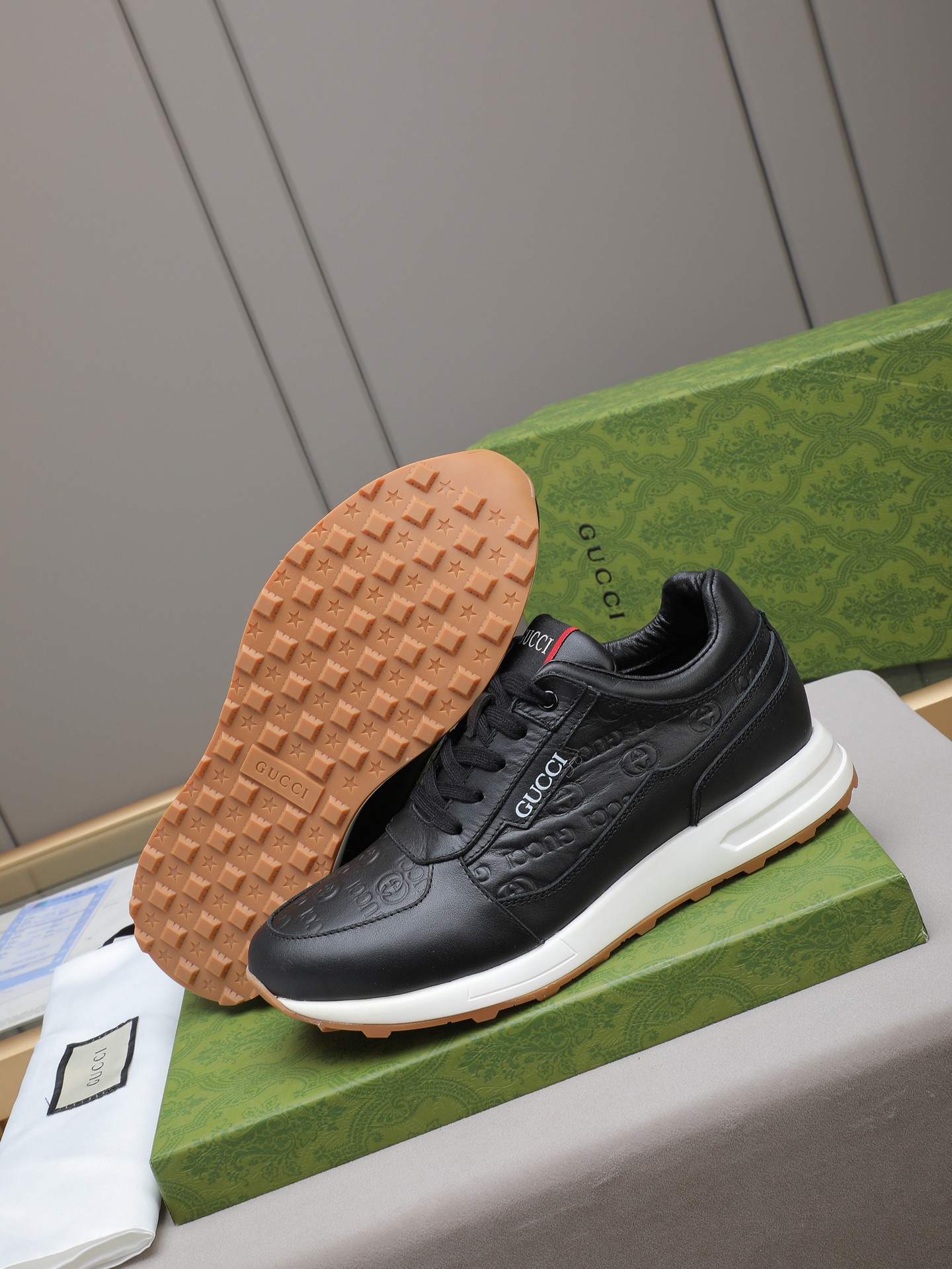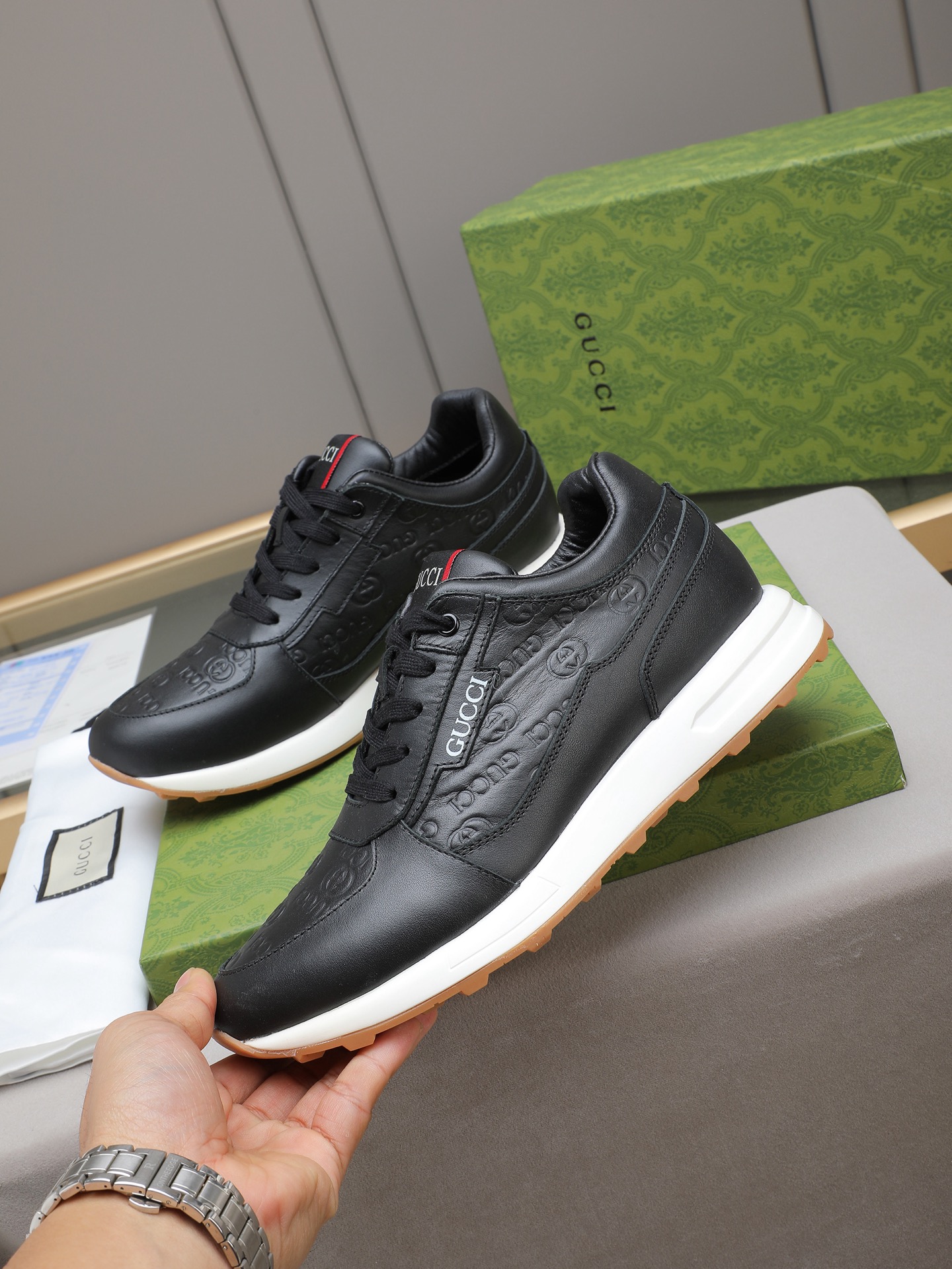 這款鞋子是AAAAA 1:1 質量(非常棒). 使用了和原版一模一樣的材料. 商標部分也保持了和古奇/Gucci一樣. 圖片拍攝是實物鞋子拍攝, 您所收到的實物保證和我們圖片一模一樣.