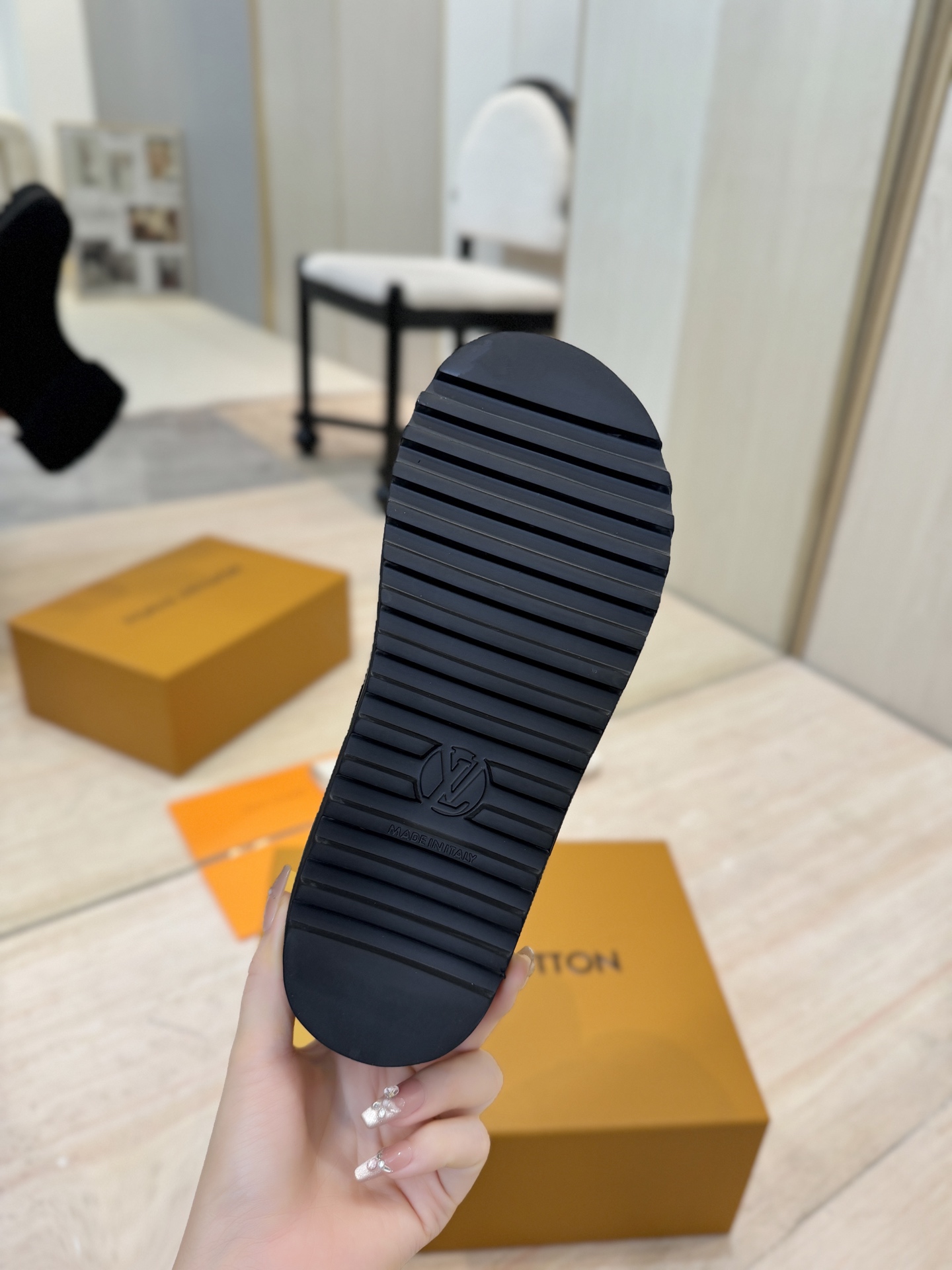 這款鞋子是AAAAA 1:1 質量(非常棒). 使用了和原版一模一樣的材料. 商標部分也保持了和路易威登/Louis Vuitton一樣. 圖片拍攝是實物鞋子拍攝, 您所收到的實物保證和我們圖片一模一樣.