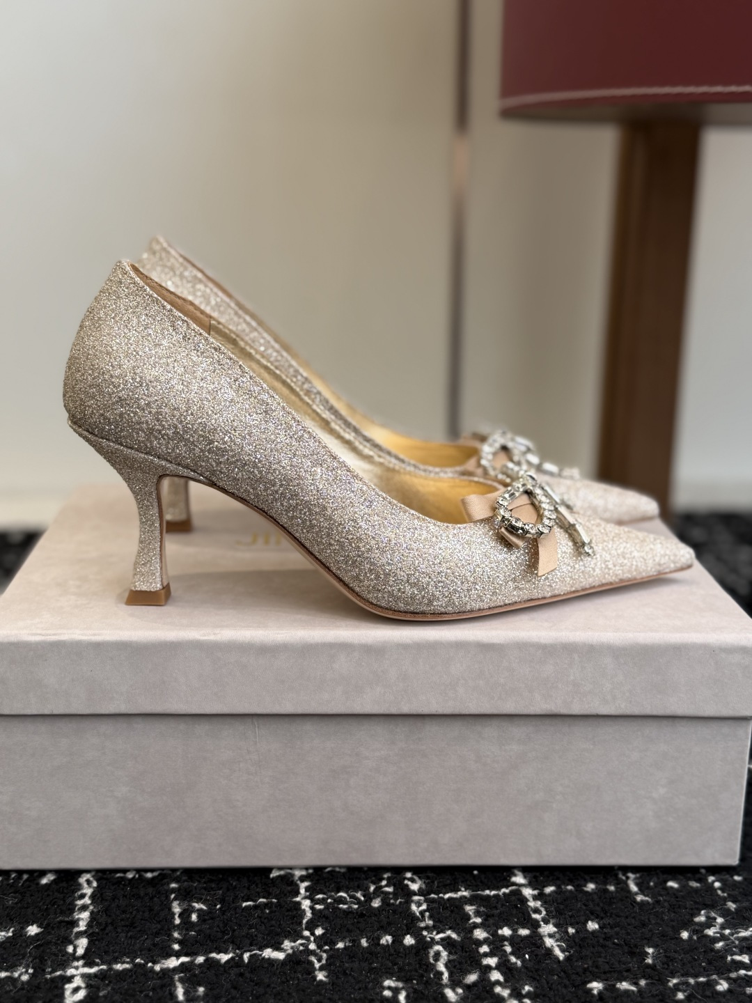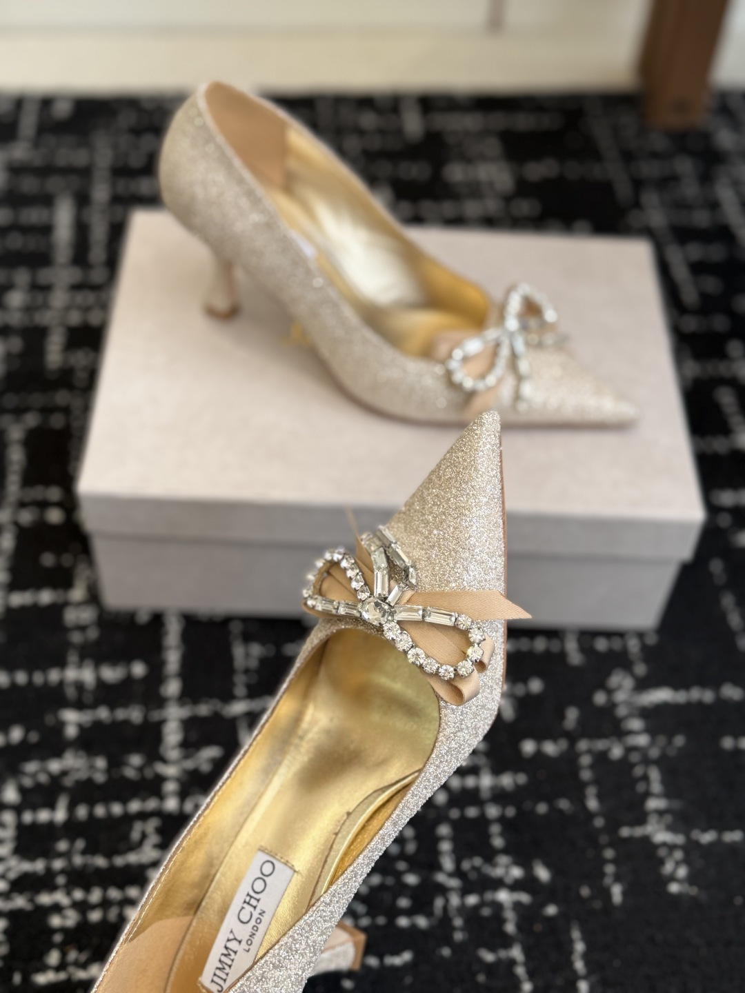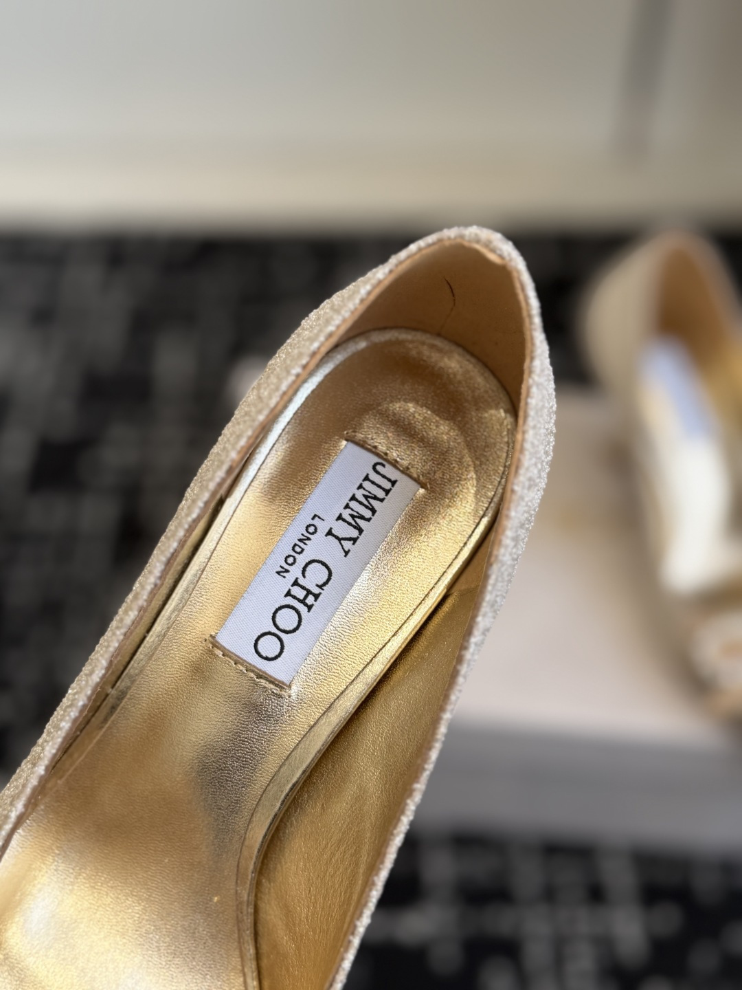 這款鞋子是AAAAA 1:1 質量(非常棒). 使用了和原版一模一樣的材料. 商標部分也保持了和吉米喬/JIMMY CHOO一樣. 圖片拍攝是實物鞋子拍攝, 您所收到的實物保證和我們圖片一模一樣.