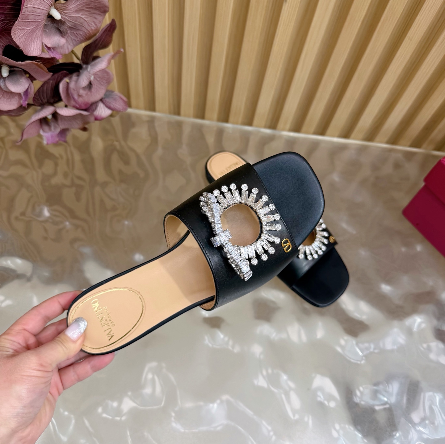 這款鞋子是AAAAA 1:1 質量(非常棒). 使用了和原版一模一樣的材料. 商標部分也保持了和瓦倫蒂諾/Valentino一樣. 圖片拍攝是實物鞋子拍攝, 您所收到的實物保證和我們圖片一模一樣.