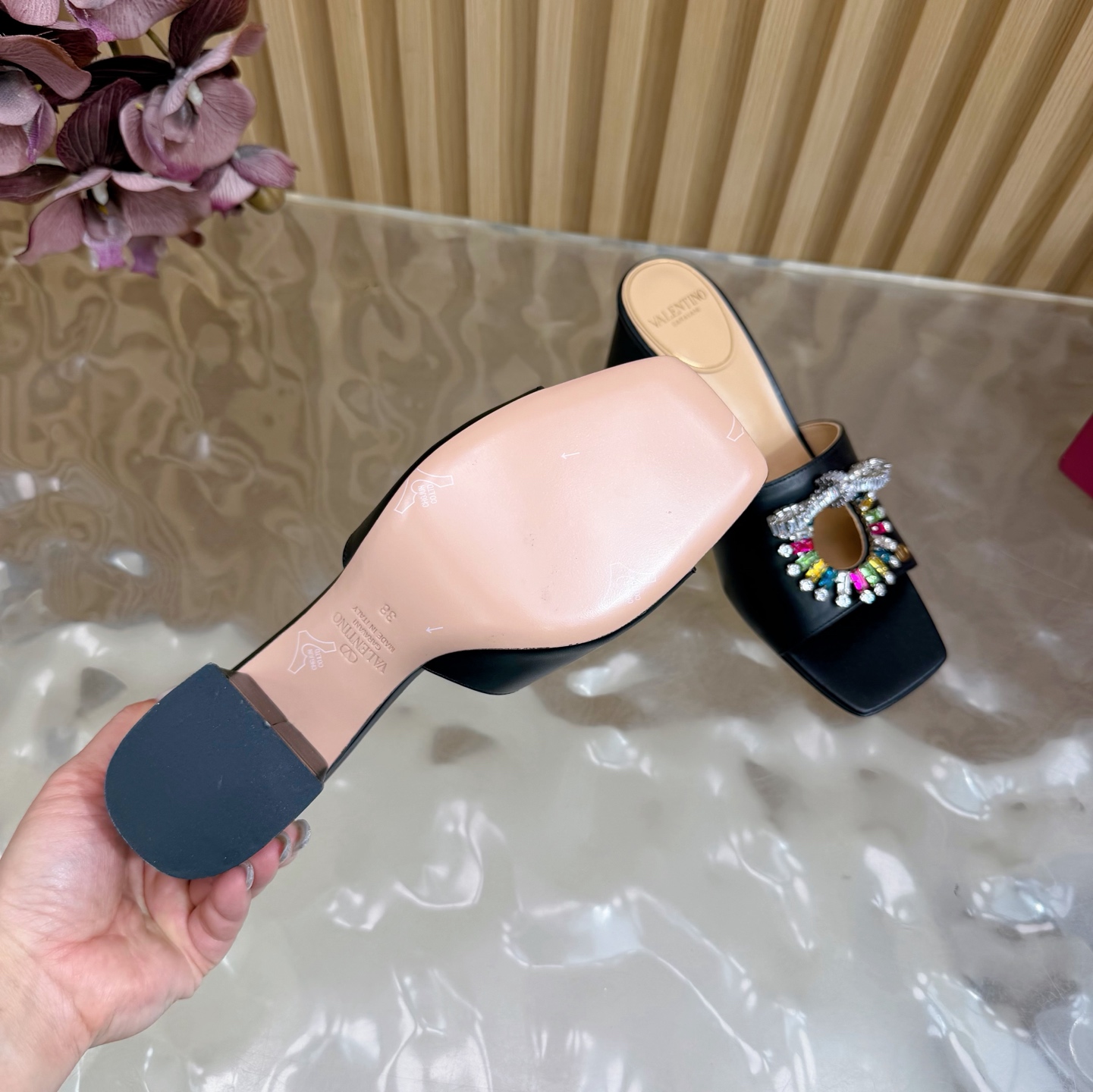 這款鞋子是AAAAA 1:1 質量(非常棒). 使用了和原版一模一樣的材料. 商標部分也保持了和瓦倫蒂諾/Valentino一樣. 圖片拍攝是實物鞋子拍攝, 您所收到的實物保證和我們圖片一模一樣.