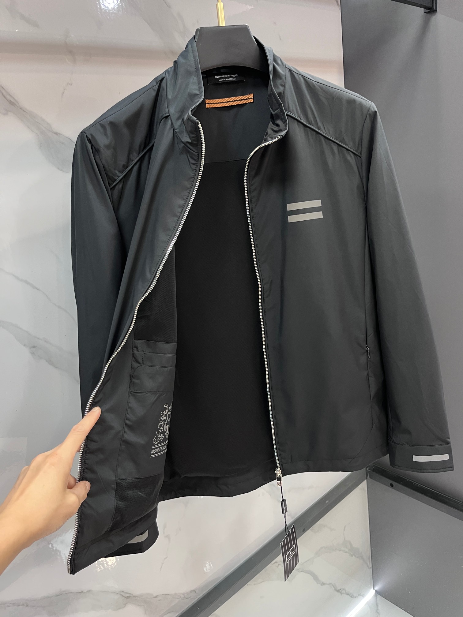 這款衣服是AAAAA 1:1 質量(非常棒). 使用了和原版一模一樣的材料. 商標部分也保持了和Zegna一樣. 圖片拍攝是實物衣服拍攝, 您所收到的實物保證和我們圖片一模一樣.