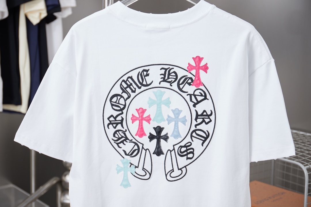 這款衣服是AAAAA 1:1 質量(非常棒). 使用了和原版一模一樣的材料. 商標部分也保持了和鉻心/Chrome Hearts一樣. 圖片拍攝是實物衣服拍攝, 您所收到的實物保證和我們圖片一模一樣.