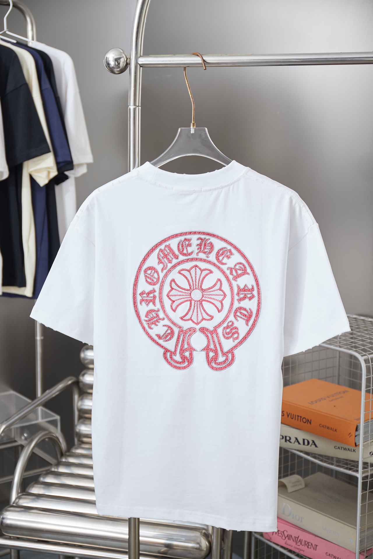 這款衣服是AAAAA 1:1 質量(非常棒). 使用了和原版一模一樣的材料. 商標部分也保持了和鉻心/Chrome Hearts一樣. 圖片拍攝是實物衣服拍攝, 您所收到的實物保證和我們圖片一模一樣.