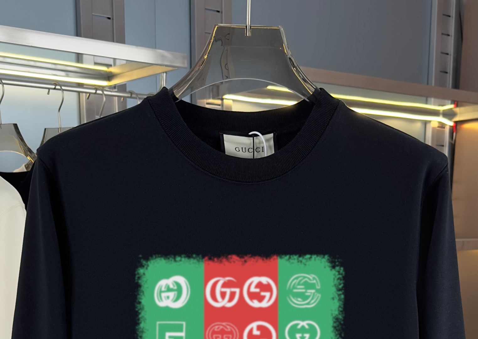 這款衣服是AAAAA 1:1 質量(非常棒). 使用了和原版一模一樣的材料. 商標部分也保持了和古奇/Gucci一樣. 圖片拍攝是實物衣服拍攝, 您所收到的實物保證和我們圖片一模一樣.