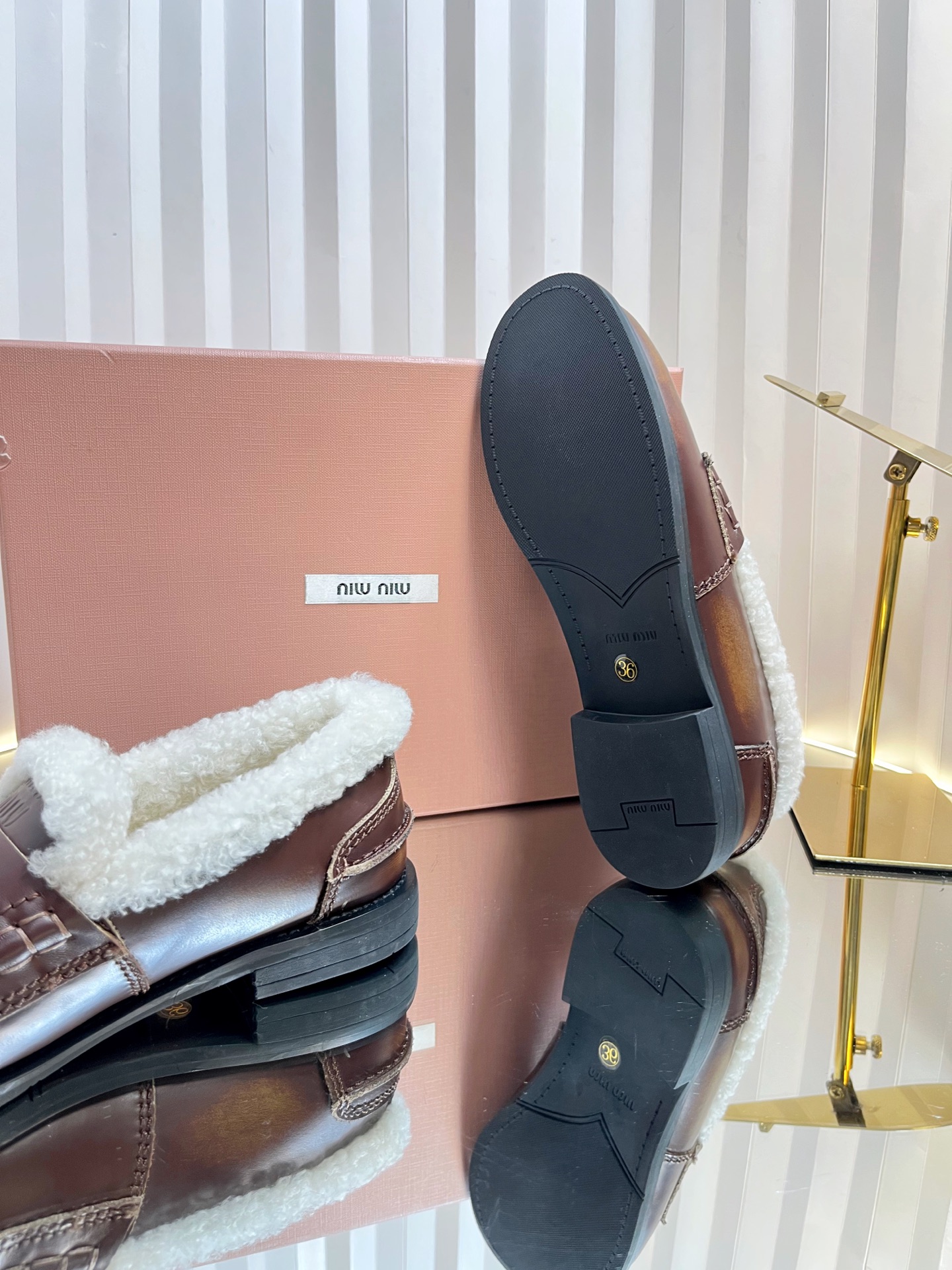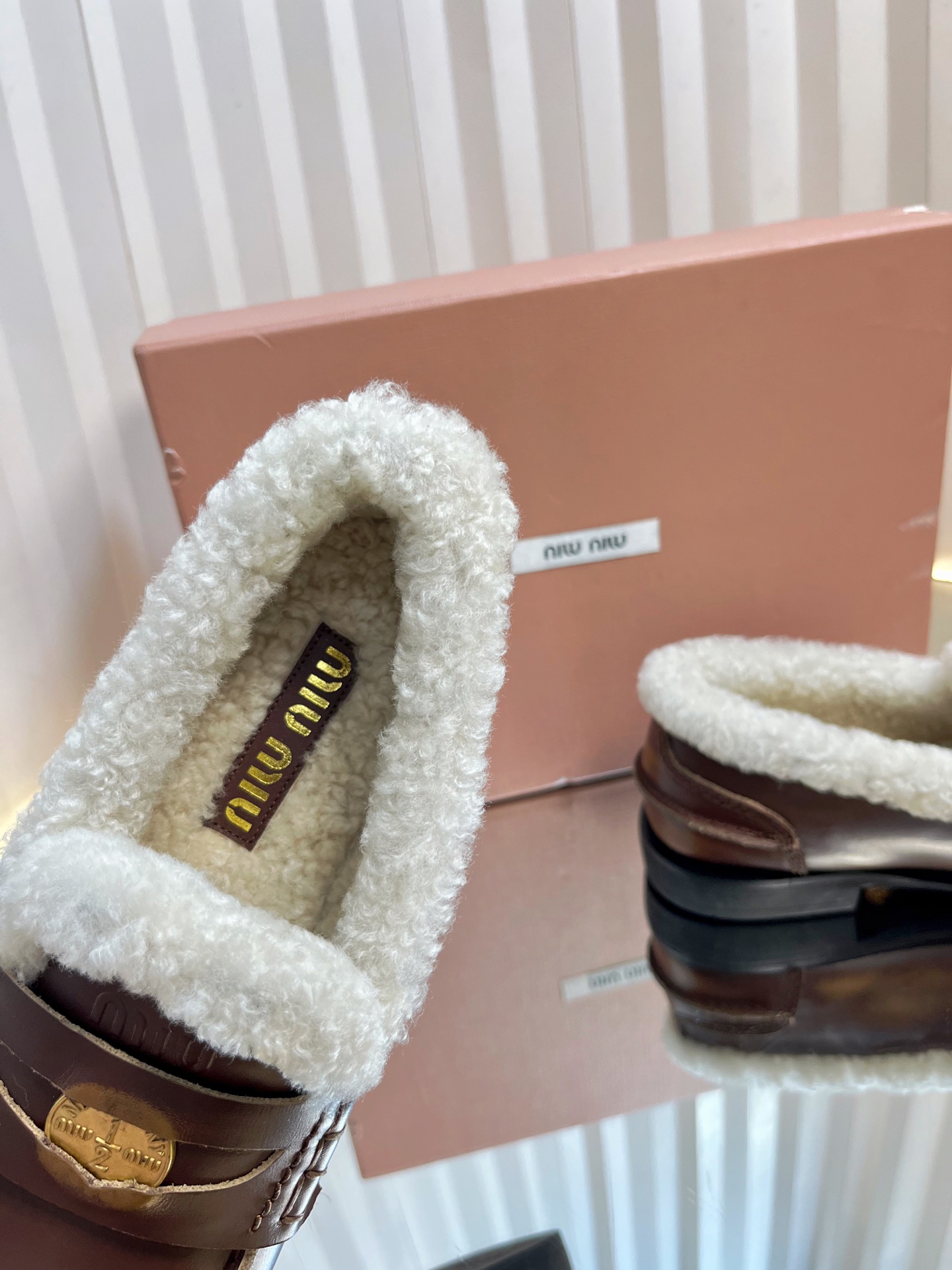 這款鞋子是AAAAA 1:1 質量(非常棒). 使用了和原版一模一樣的材料. 商標部分也保持了和繆繆/Miu Miu一樣. 圖片拍攝是實物鞋子拍攝, 您所收到的實物保證和我們圖片一模一樣.