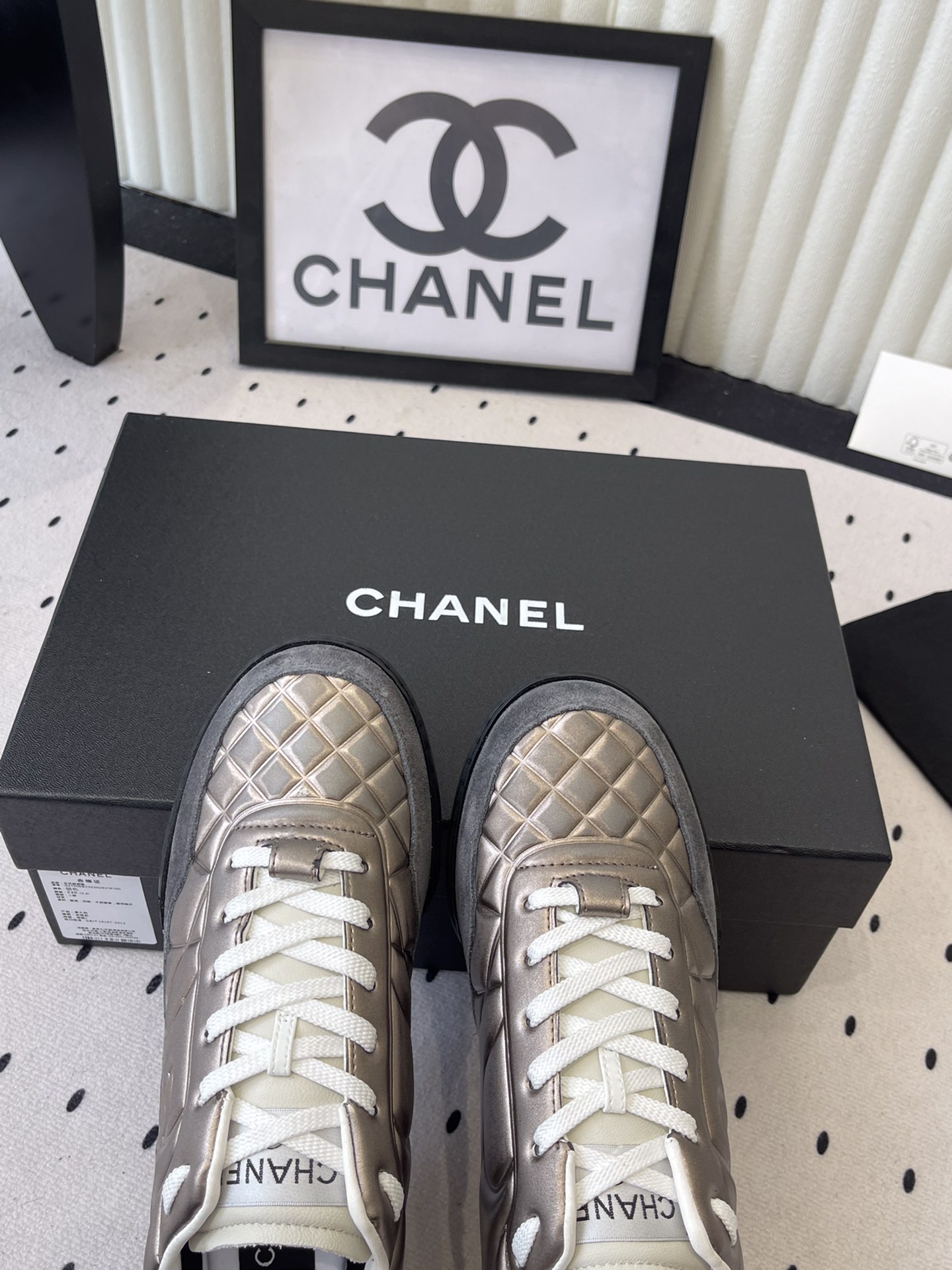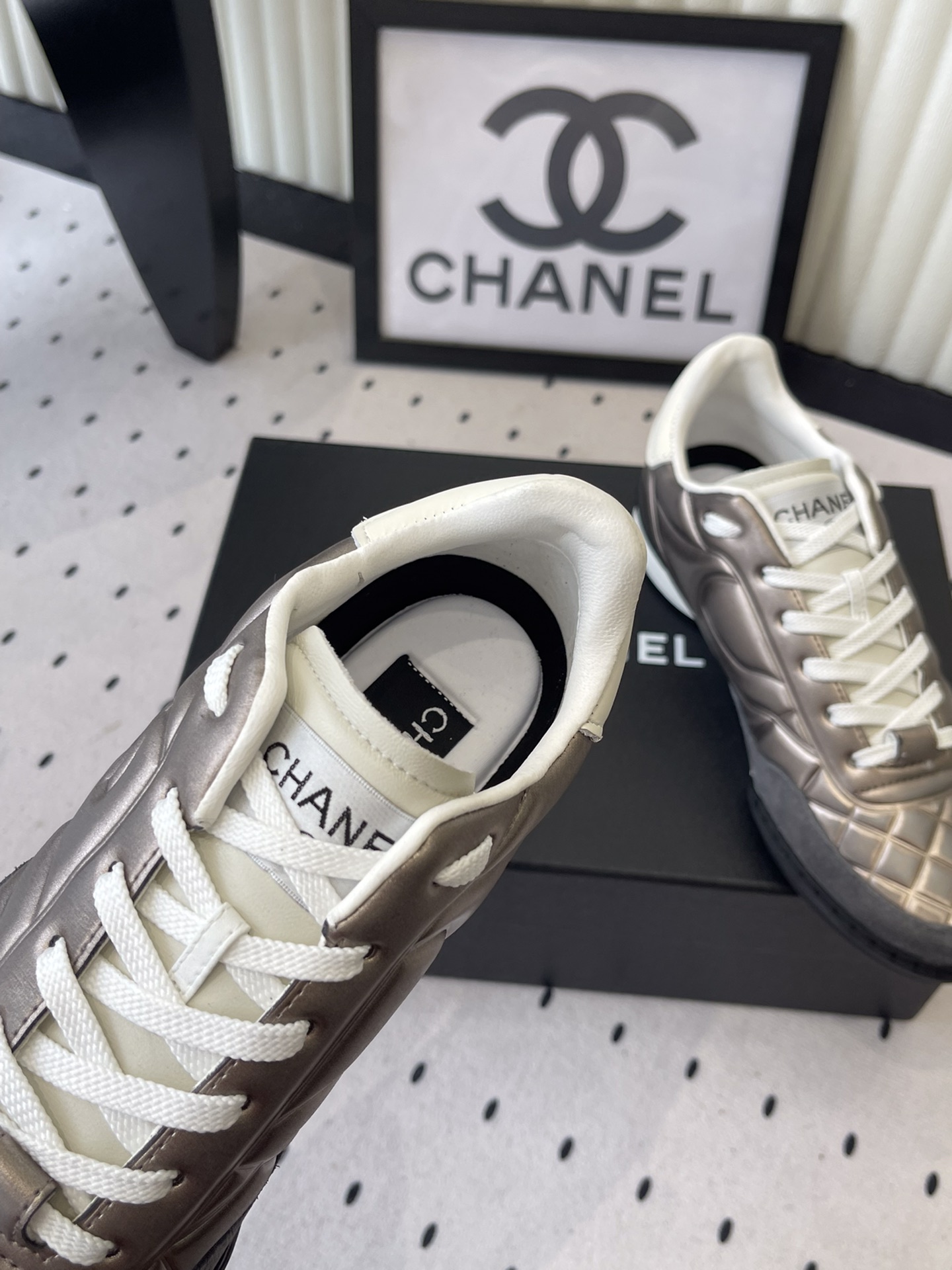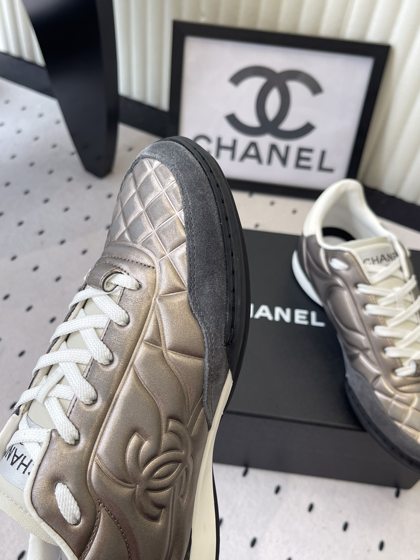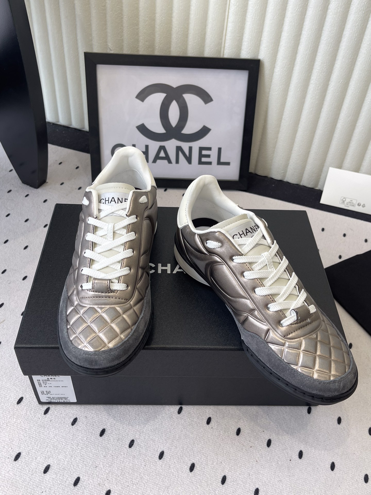 這款鞋子是AAAAA 1:1 質量(非常棒). 使用了和原版一模一樣的材料. 商標部分也保持了和香奈兒/Chanel一樣. 圖片拍攝是實物鞋子拍攝, 您所收到的實物保證和我們圖片一模一樣.