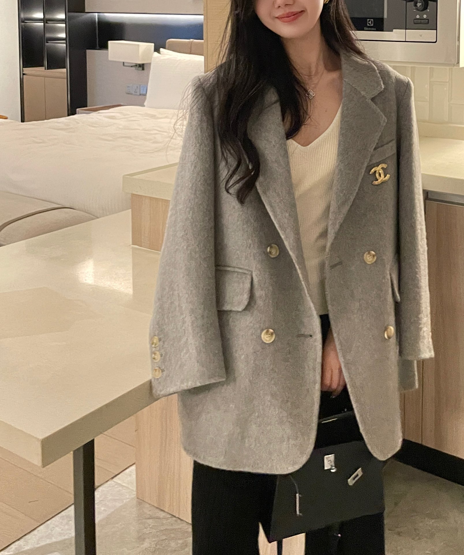 這款衣服是AAAAA 1:1 質量(非常棒). 使用了和原版一模一樣的材料. 商標部分也保持了和香奈兒/Chanel一樣. 圖片拍攝是實物衣服拍攝, 您所收到的實物保證和我們圖片一模一樣.