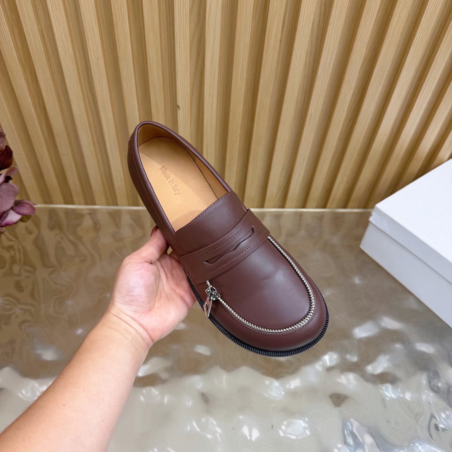 這款鞋子是AAAAA 1:1 質量(非常棒). 使用了和原版一模一樣的材料. 商標部分也保持了和安德森/J.W.Anderson一樣. 圖片拍攝是實物鞋子拍攝, 您所收到的實物保證和我們圖片一模一樣.