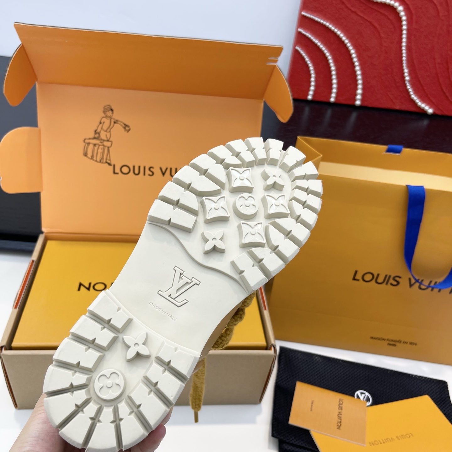 這款鞋子是AAAAA 1:1 質量(非常棒). 使用了和原版一模一樣的材料. 商標部分也保持了和路易威登/Louis Vuitton一樣. 圖片拍攝是實物鞋子拍攝, 您所收到的實物保證和我們圖片一模一樣.