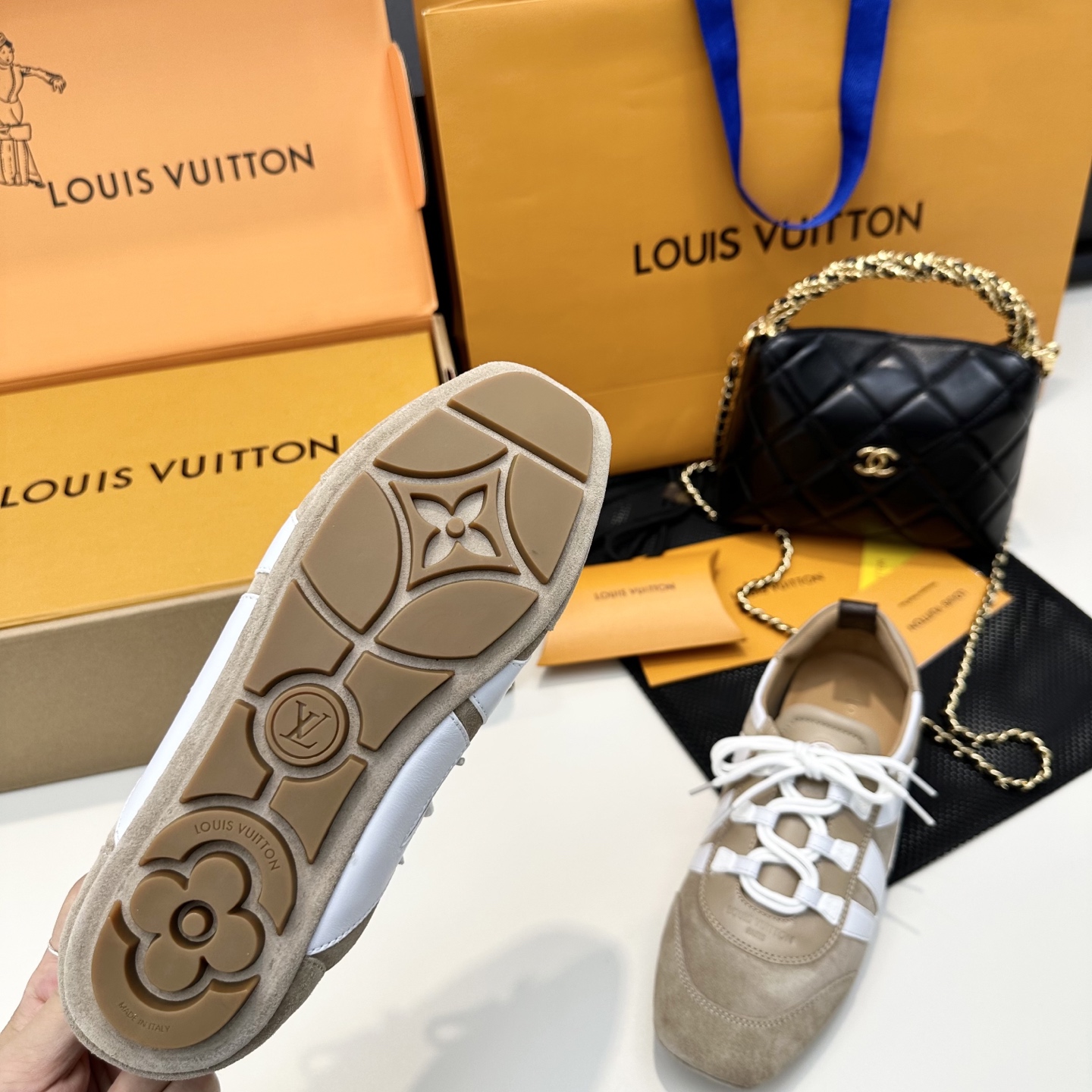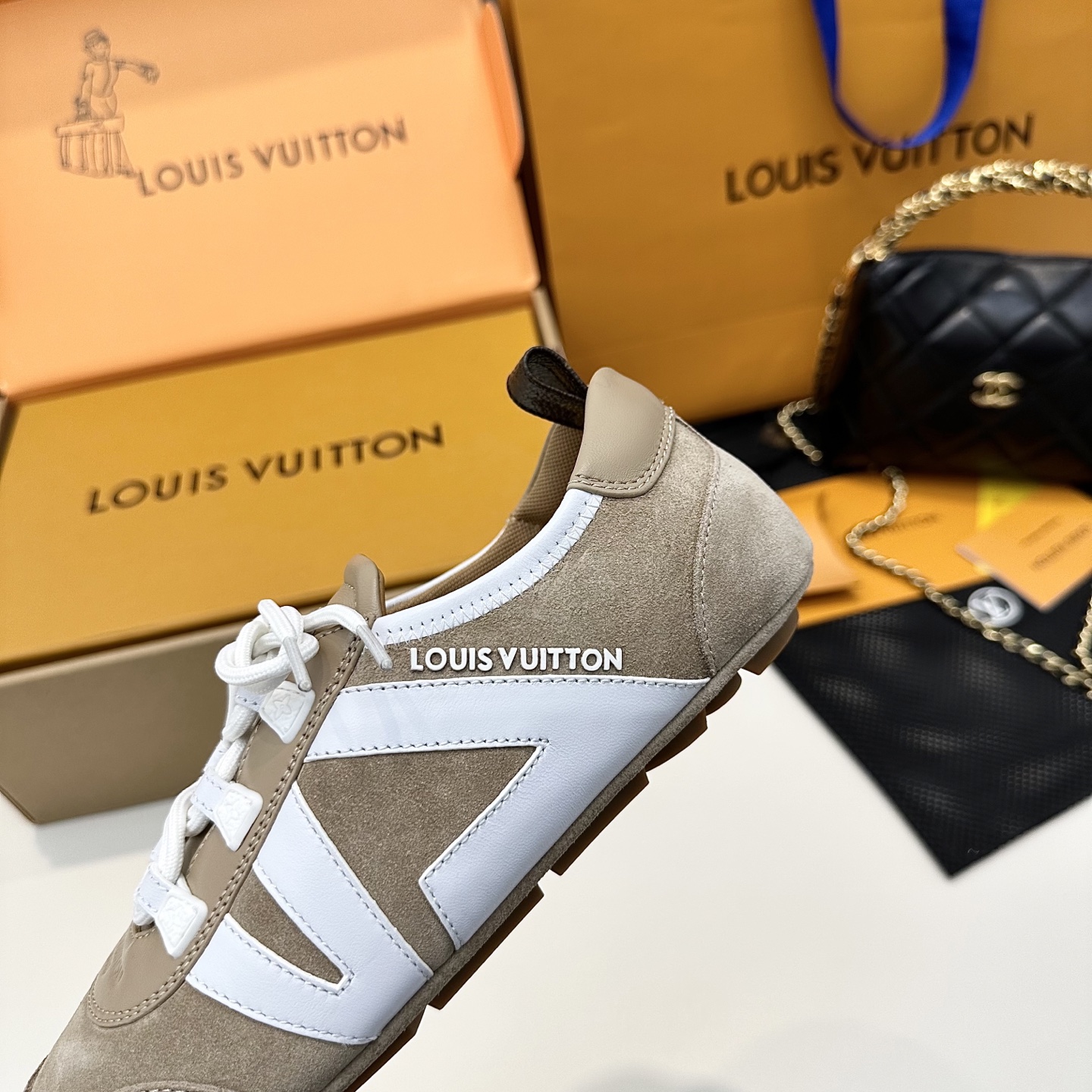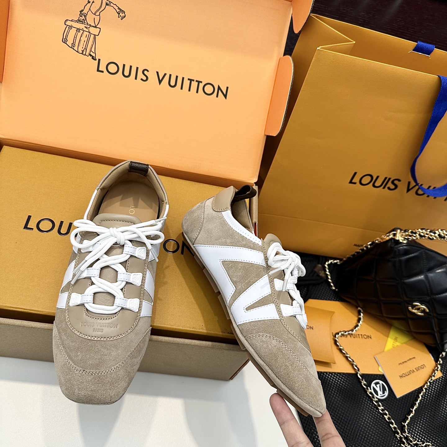 這款鞋子是AAAAA 1:1 質量(非常棒). 使用了和原版一模一樣的材料. 商標部分也保持了和路易威登/Louis Vuitton一樣. 圖片拍攝是實物鞋子拍攝, 您所收到的實物保證和我們圖片一模一樣.