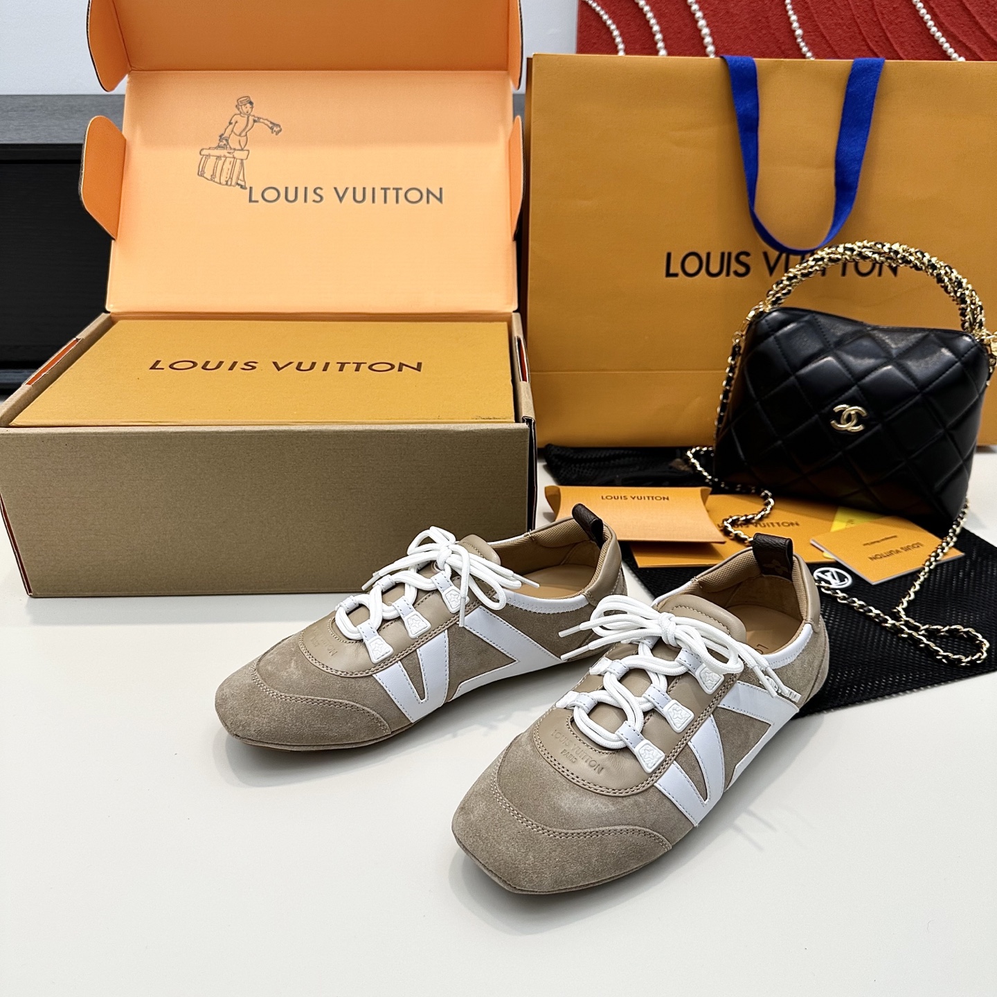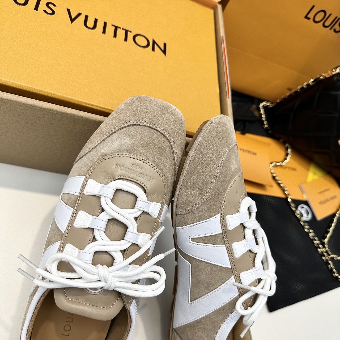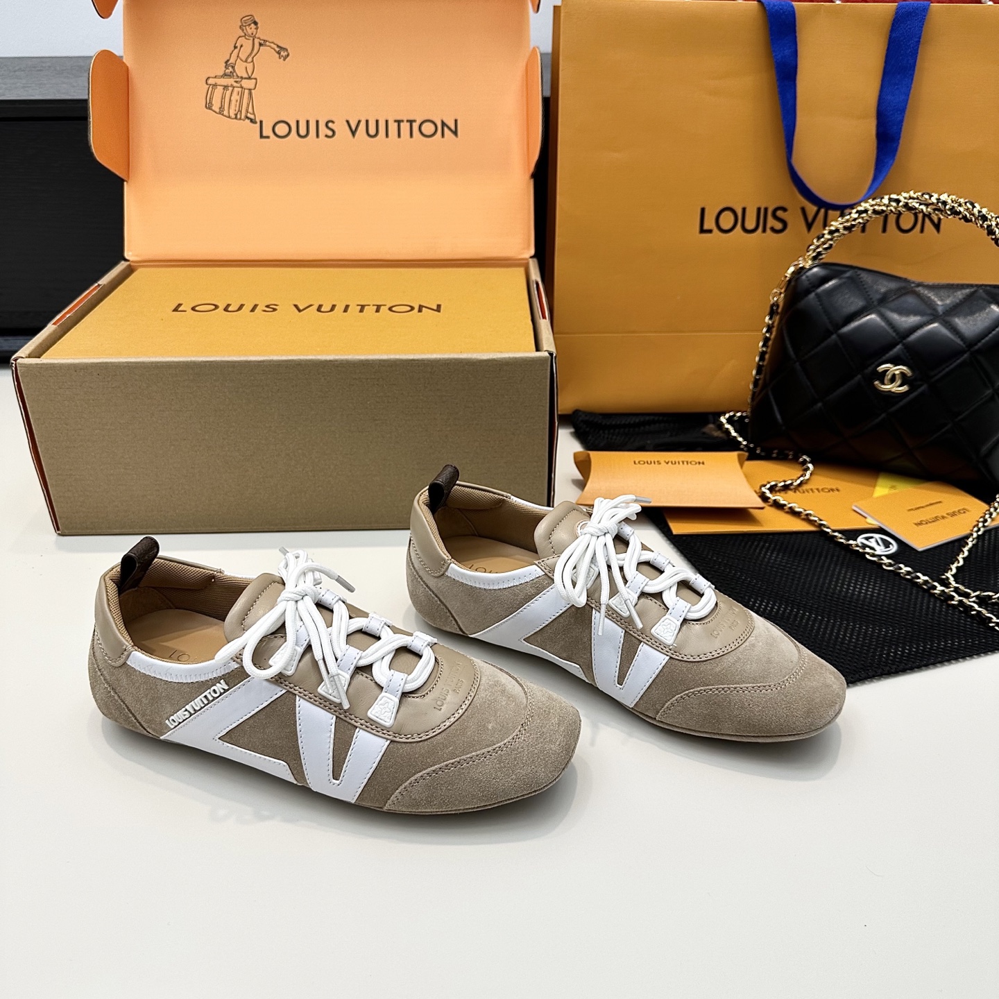 這款鞋子是AAAAA 1:1 質量(非常棒). 使用了和原版一模一樣的材料. 商標部分也保持了和路易威登/Louis Vuitton一樣. 圖片拍攝是實物鞋子拍攝, 您所收到的實物保證和我們圖片一模一樣.