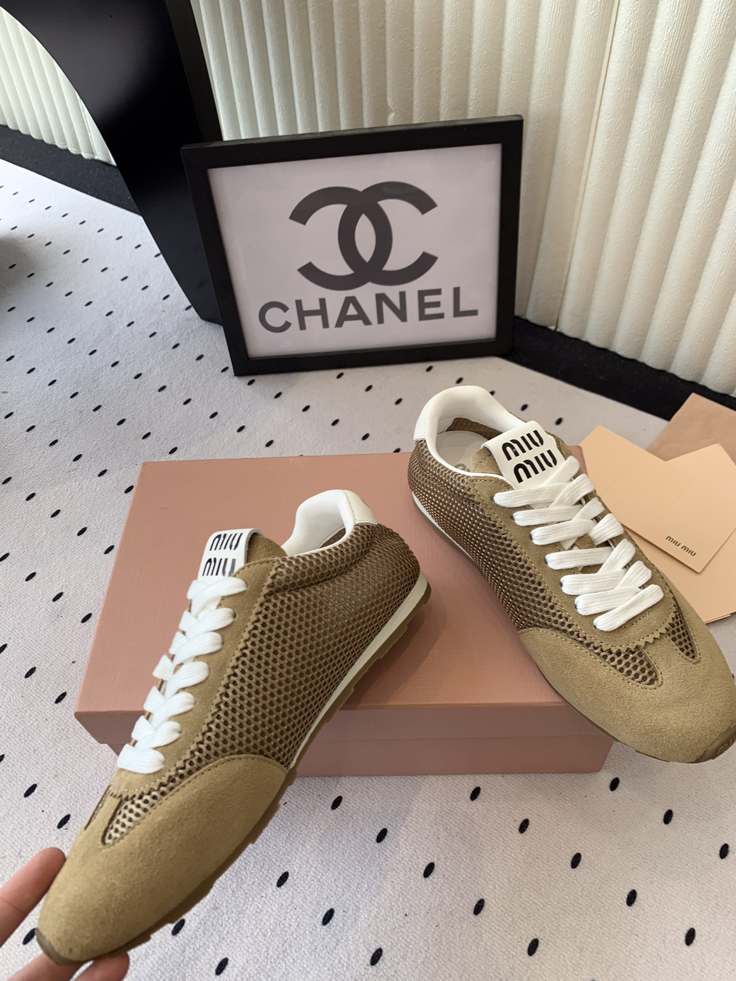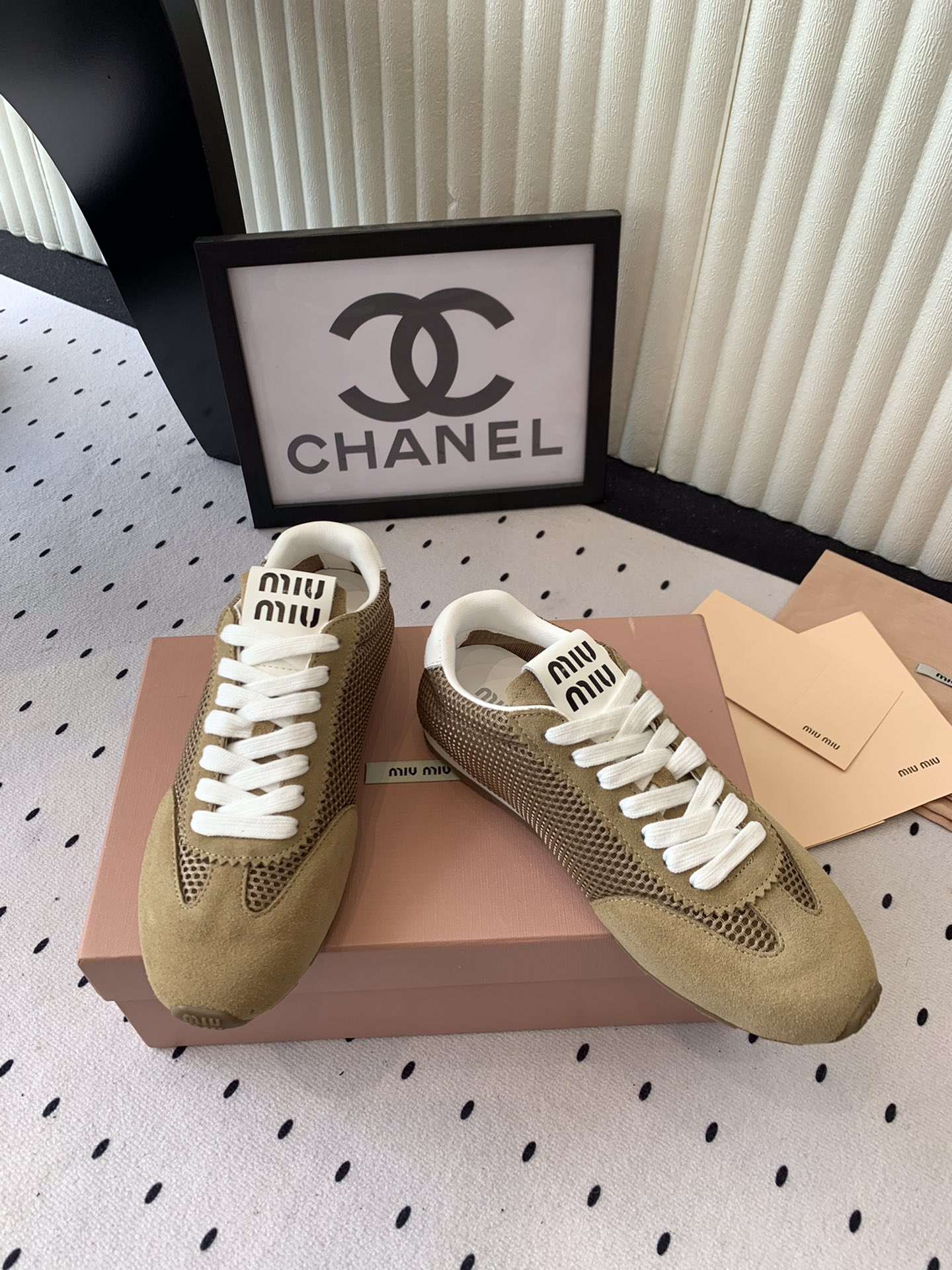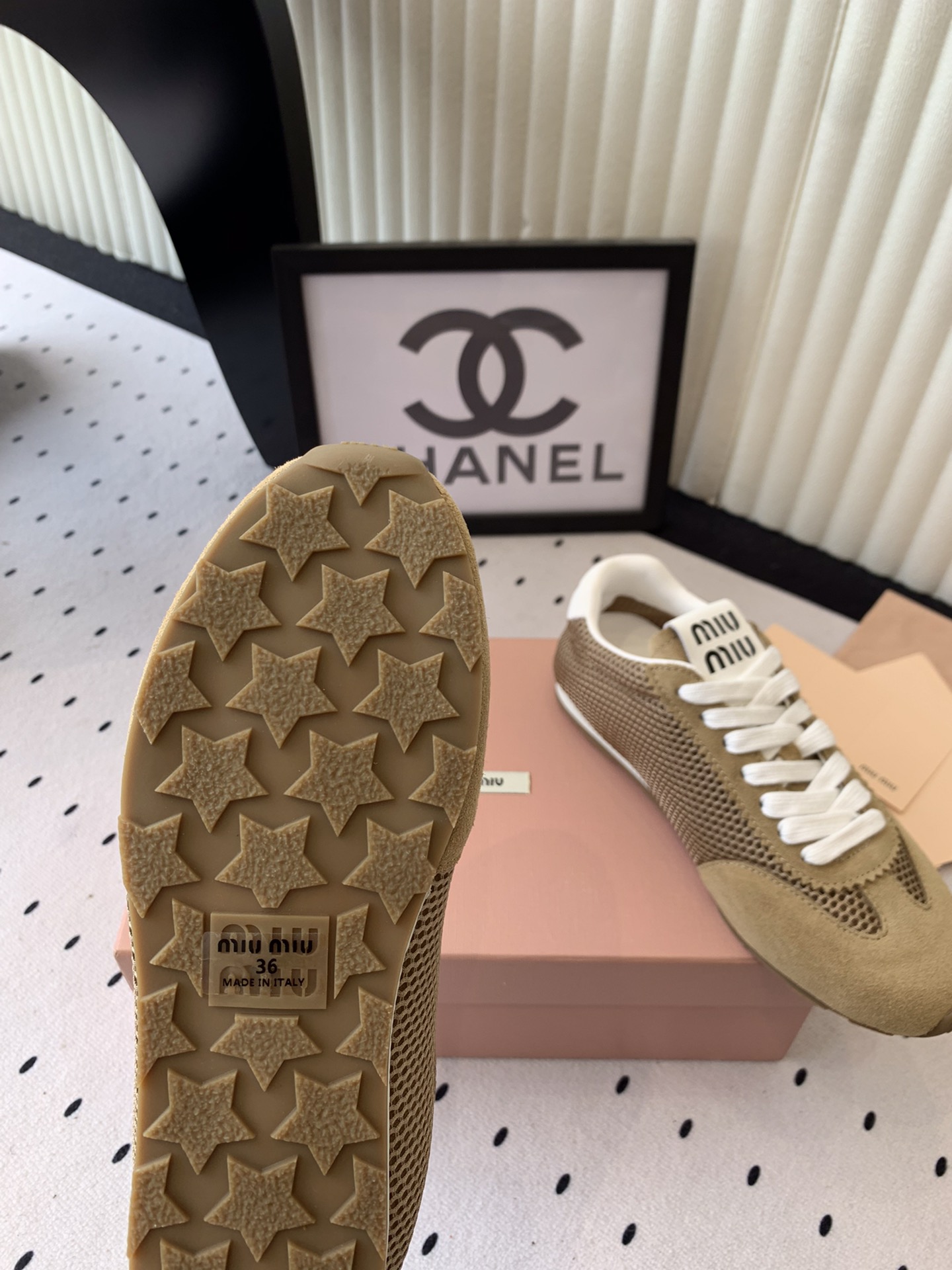 這款鞋子是AAAAA 1:1 質量(非常棒). 使用了和原版一模一樣的材料. 商標部分也保持了和繆繆/Miu Miu一樣. 圖片拍攝是實物鞋子拍攝, 您所收到的實物保證和我們圖片一模一樣.