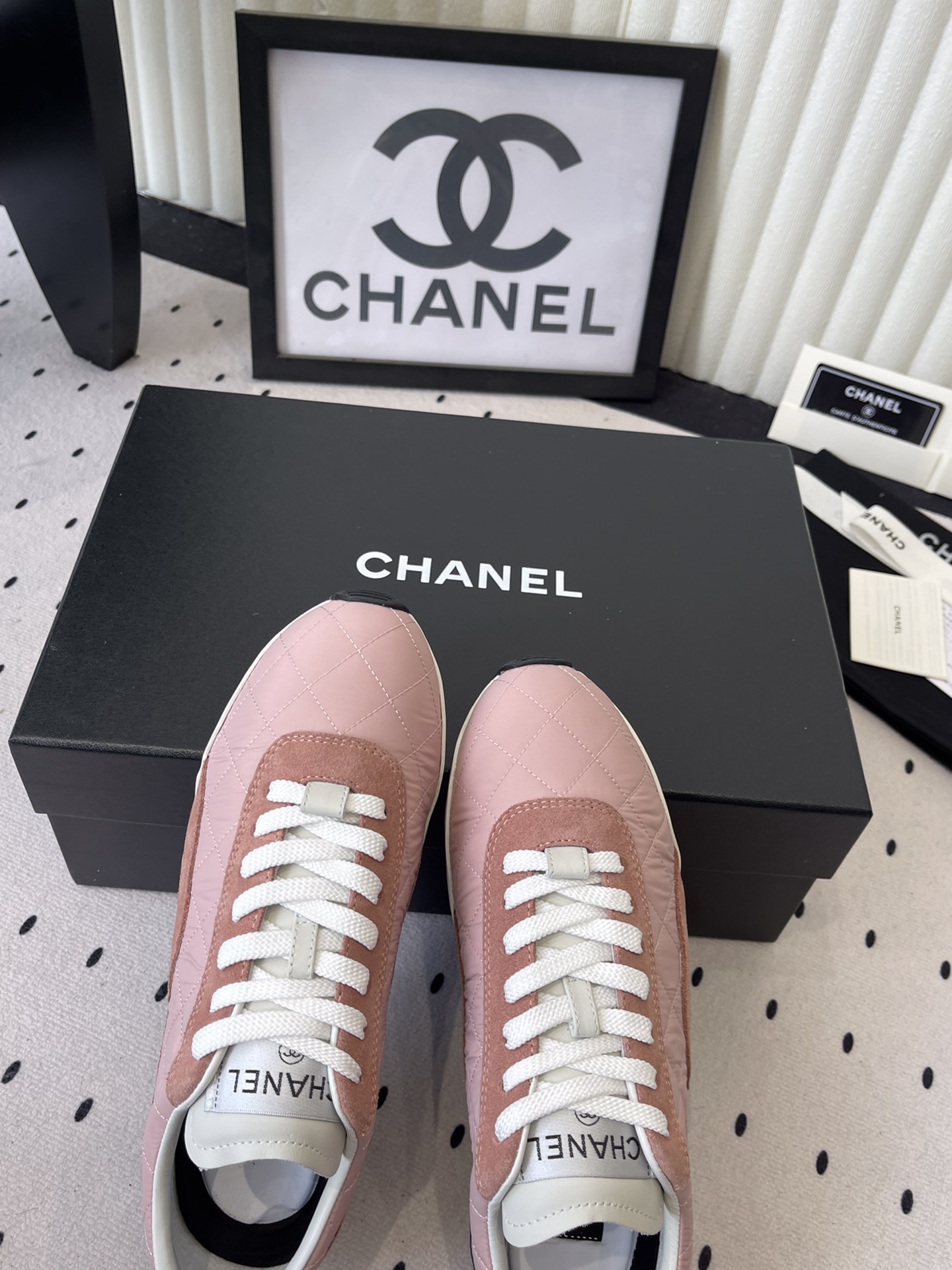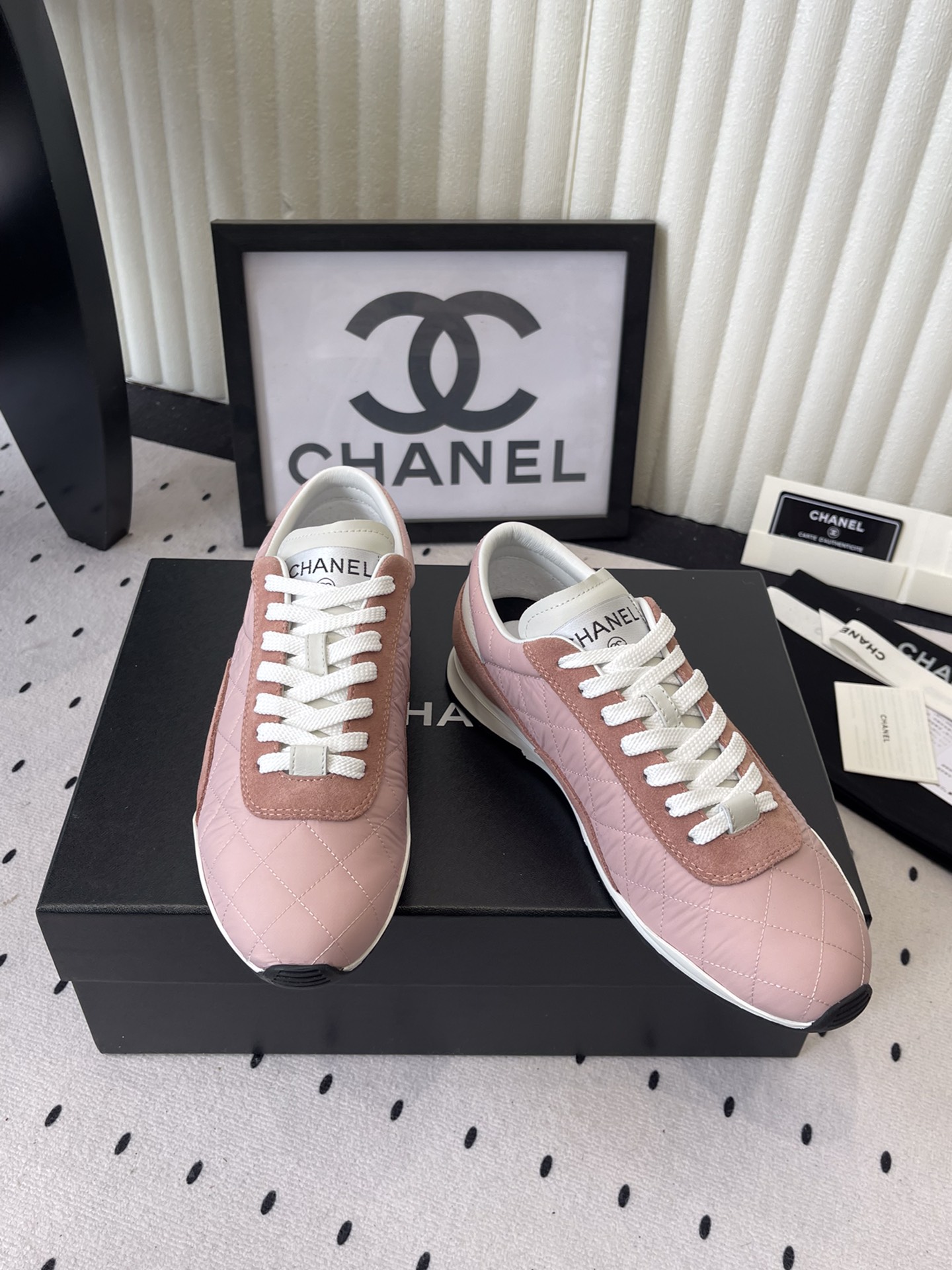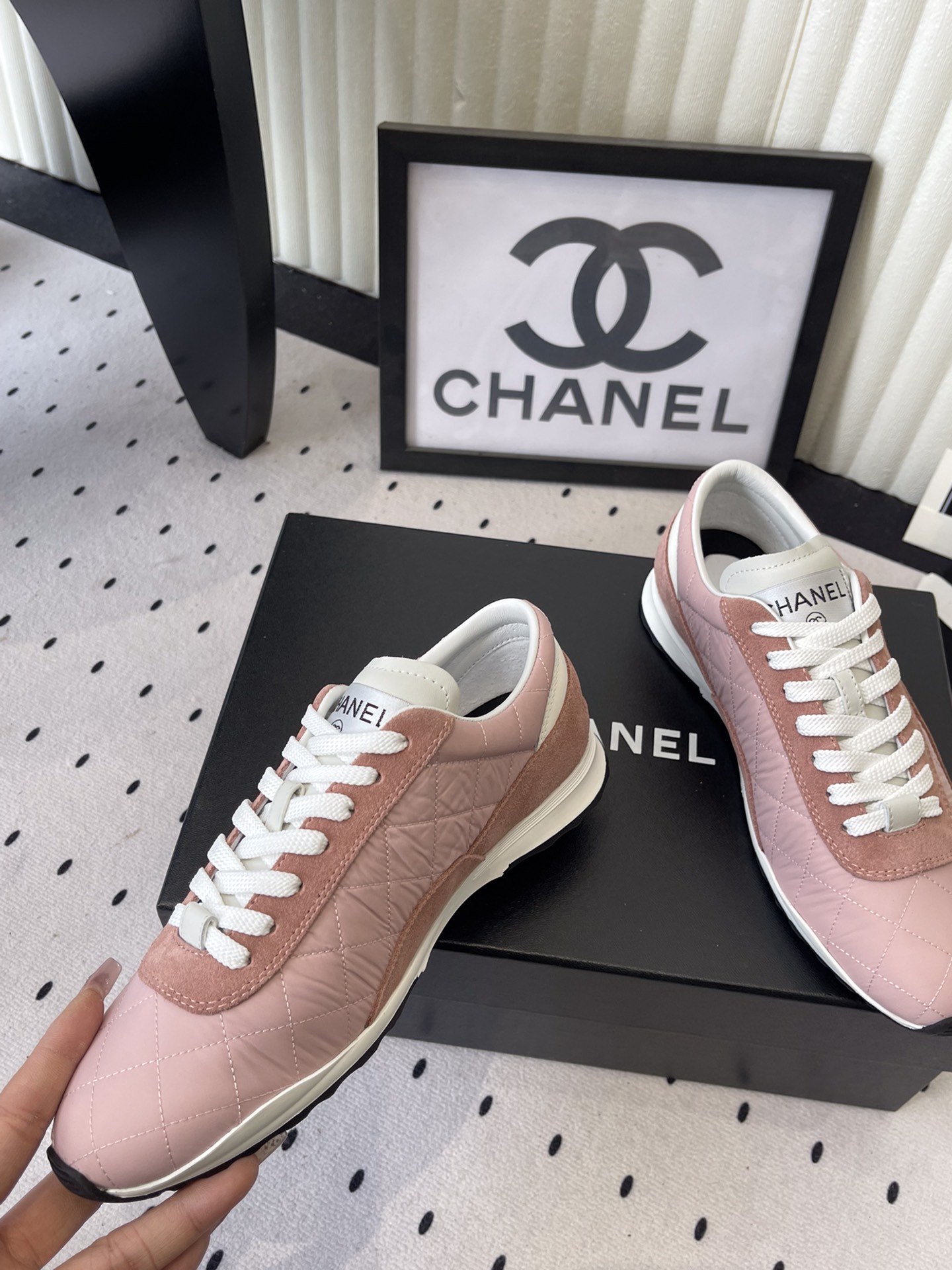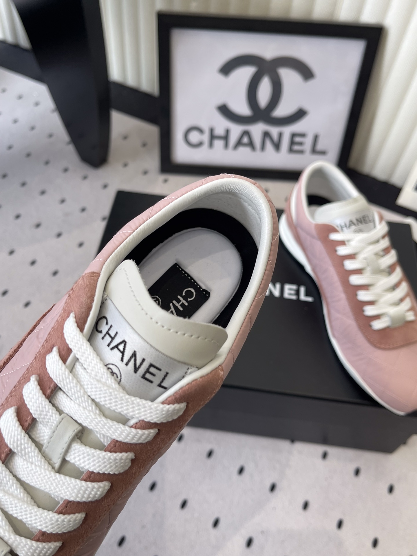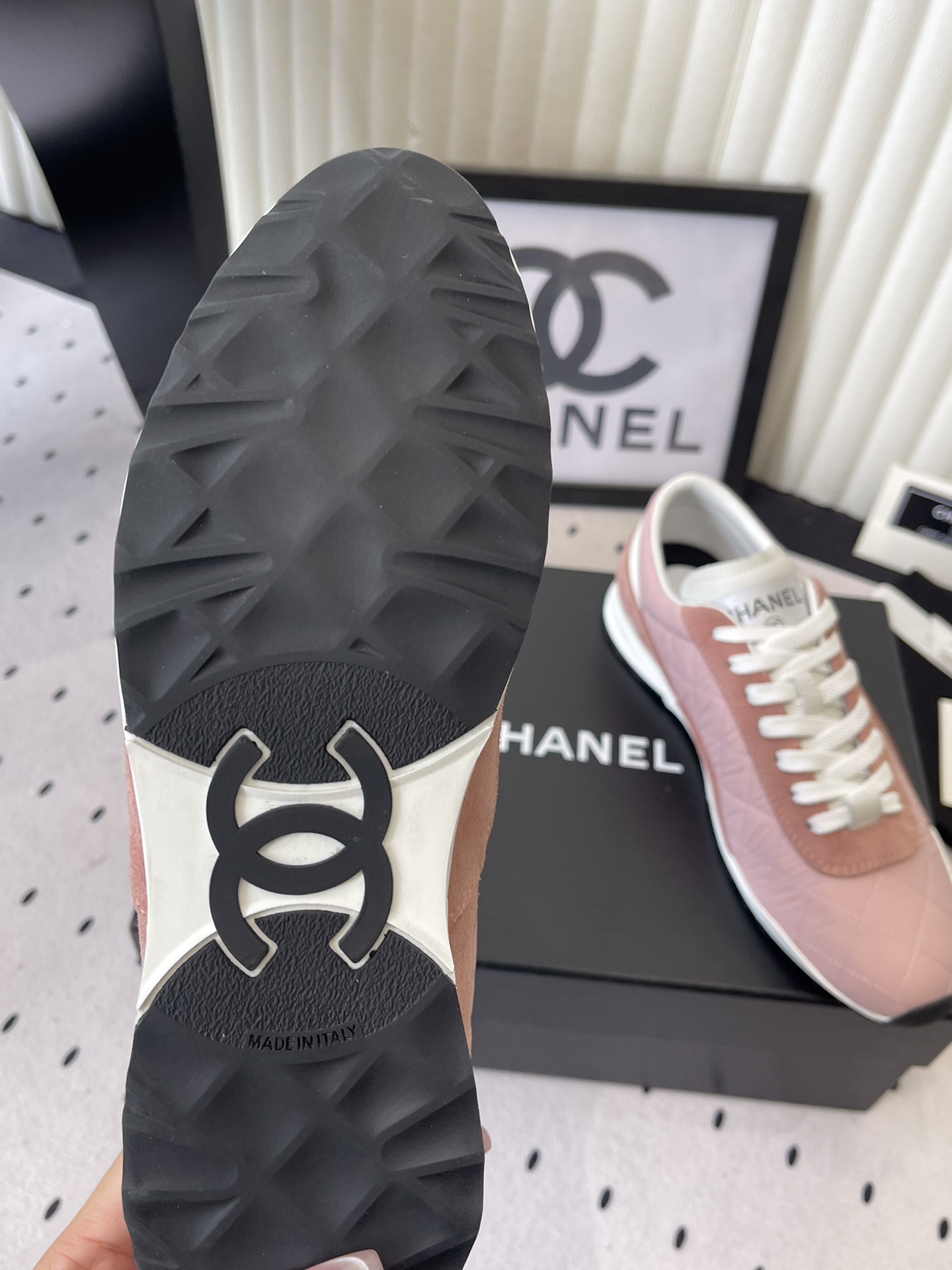 這款鞋子是AAAAA 1:1 質量(非常棒). 使用了和原版一模一樣的材料. 商標部分也保持了和香奈兒/Chanel一樣. 圖片拍攝是實物鞋子拍攝, 您所收到的實物保證和我們圖片一模一樣.