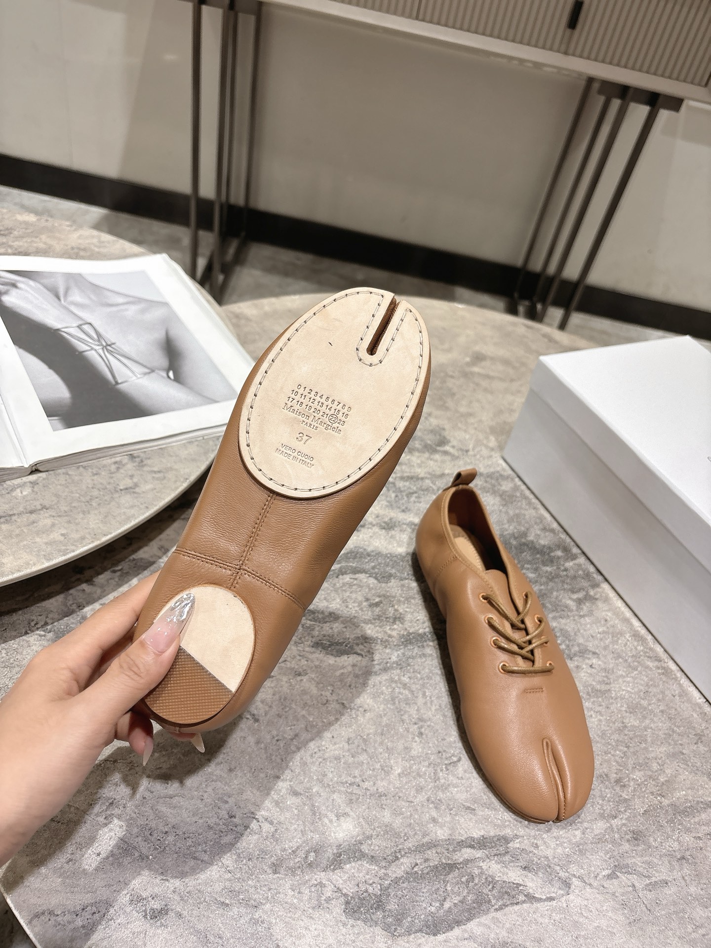 這款鞋子是AAAAA 1:1 質量(非常棒). 使用了和原版一模一樣的材料. 商標部分也保持了和Maison Margiela一樣. 圖片拍攝是實物鞋子拍攝, 您所收到的實物保證和我們圖片一模一樣.