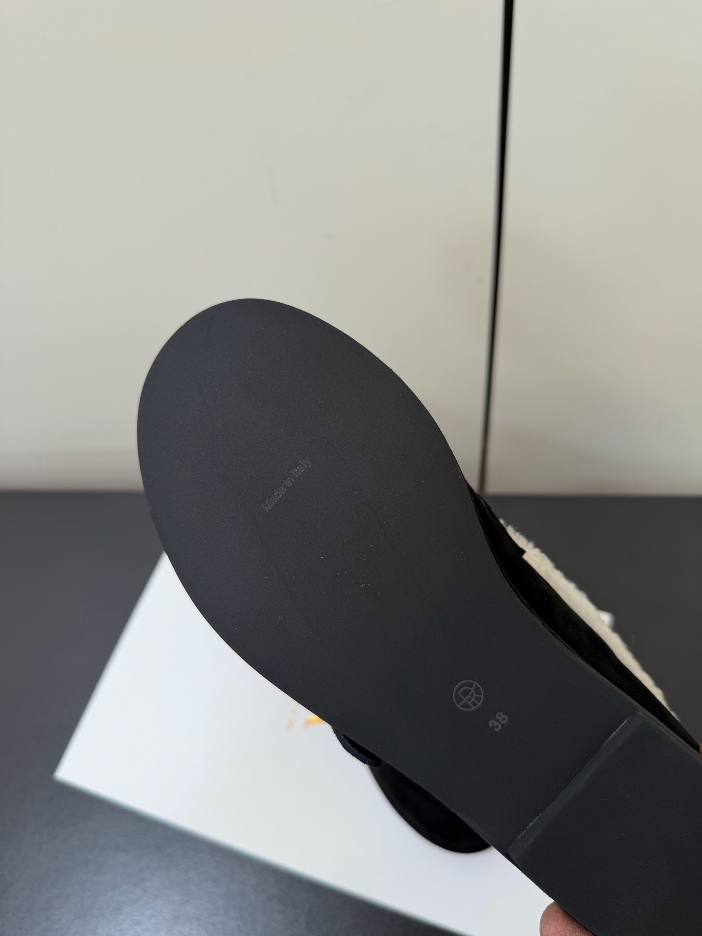 這款鞋子是AAAAA 1:1 質量(非常棒). 使用了和原版一模一樣的材料. 商標部分也保持了和The Row一樣. 圖片拍攝是實物鞋子拍攝, 您所收到的實物保證和我們圖片一模一樣.