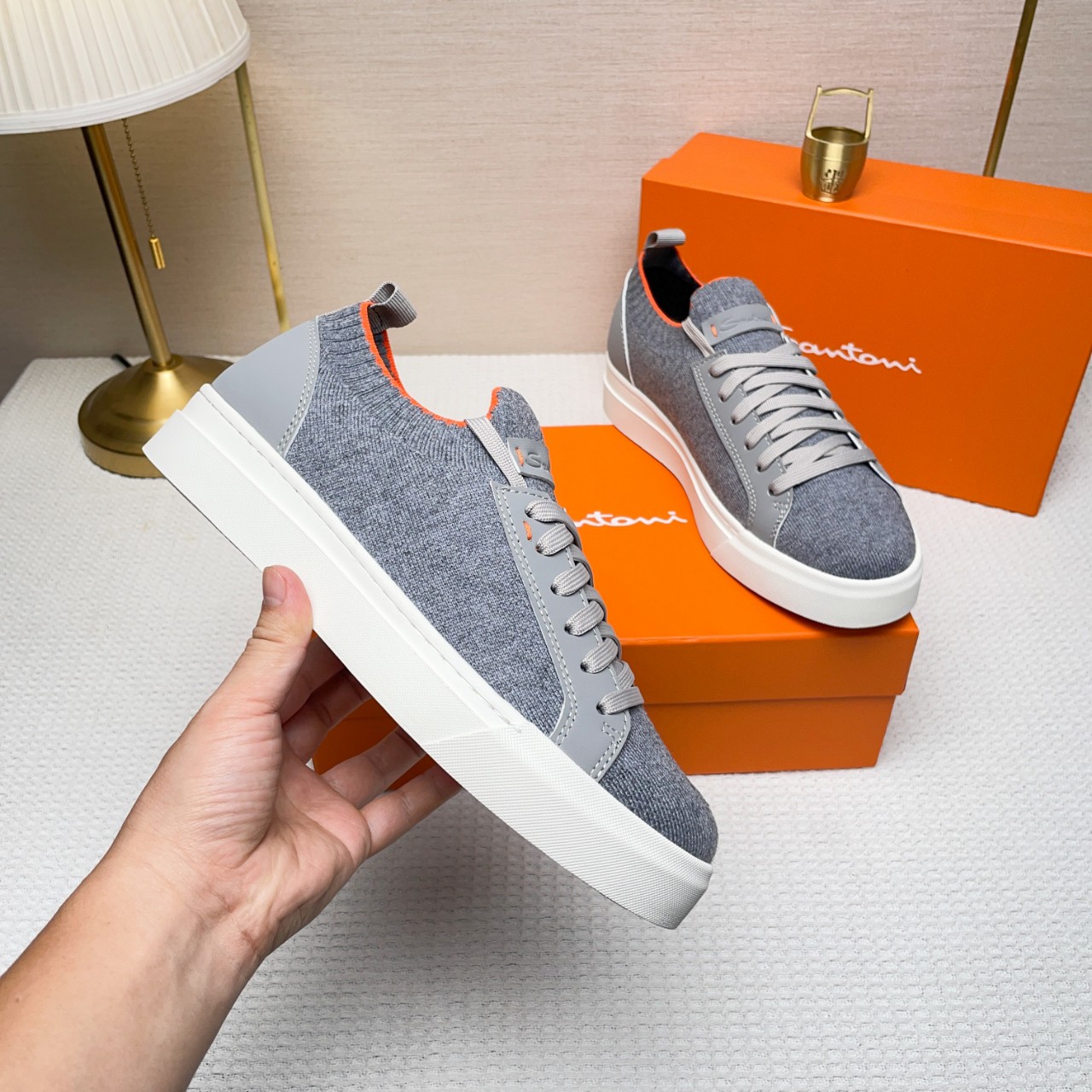 這款鞋子是AAAAA 1:1 質量(非常棒). 使用了和原版一模一樣的材料. 商標部分也保持了和Santoni一樣. 圖片拍攝是實物鞋子拍攝, 您所收到的實物保證和我們圖片一模一樣.
