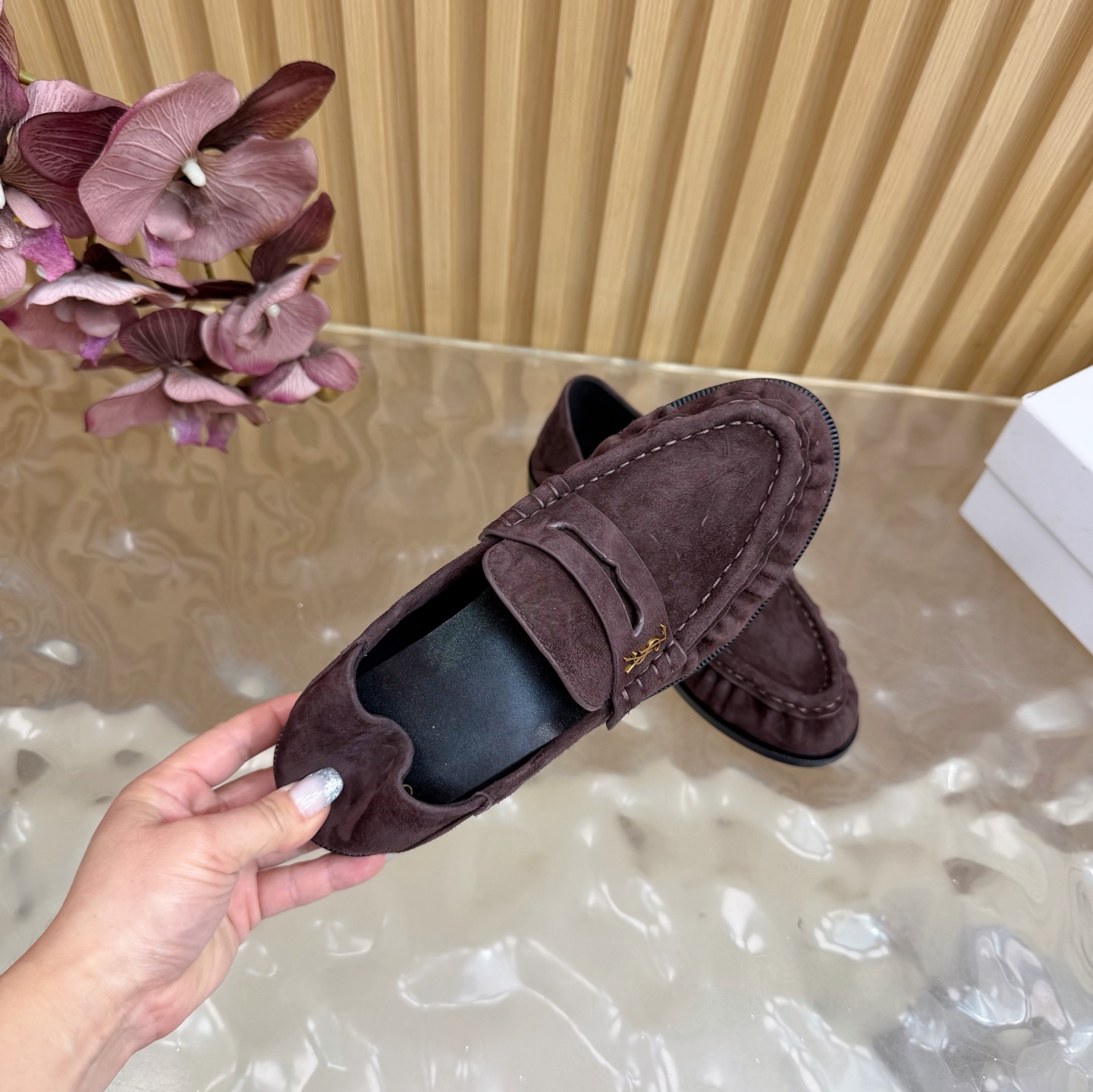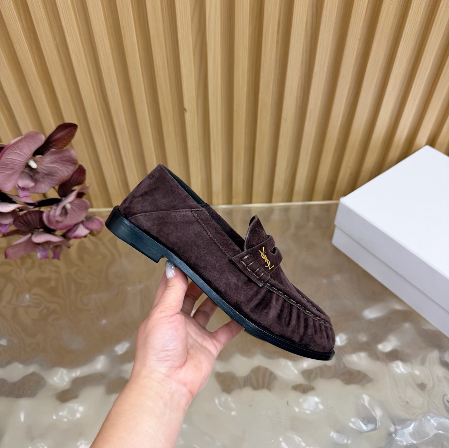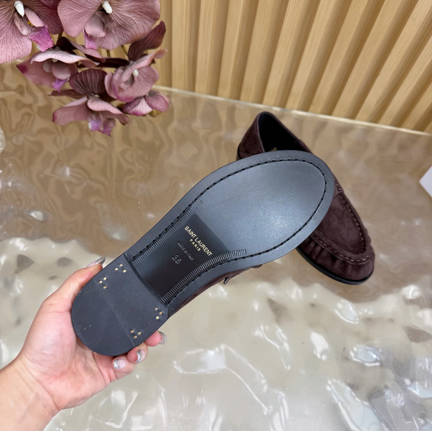 這款鞋子是AAAAA 1:1 質量(非常棒). 使用了和原版一模一樣的材料. 商標部分也保持了和聖羅蘭/Saint Laurent一樣. 圖片拍攝是實物鞋子拍攝, 您所收到的實物保證和我們圖片一模一樣.