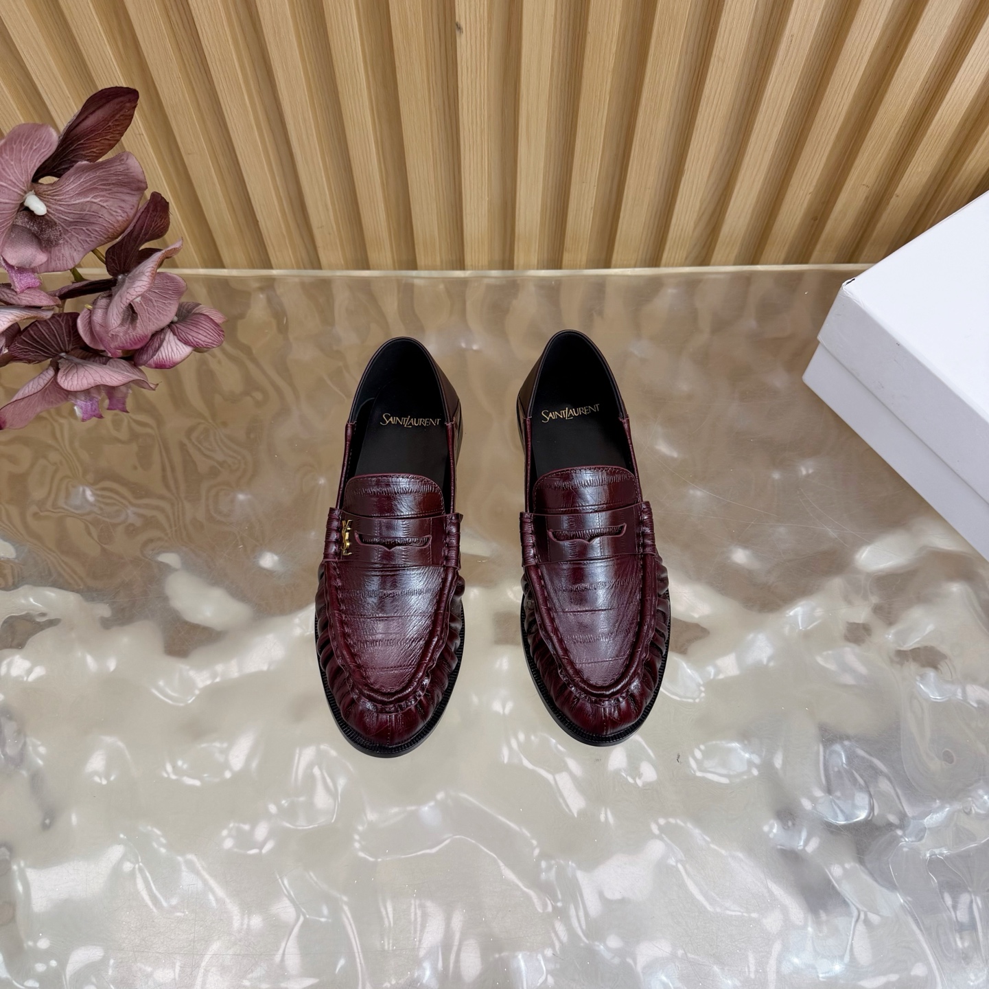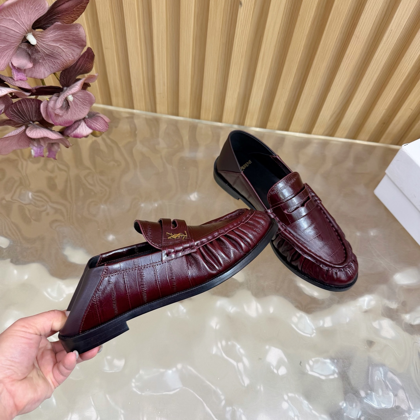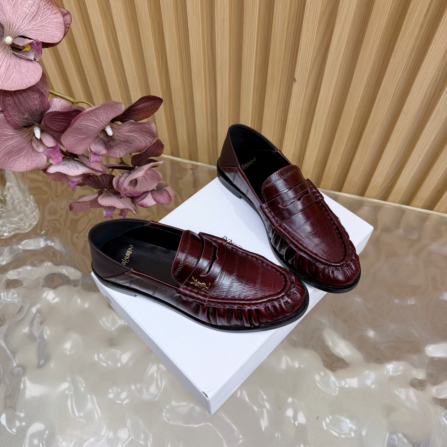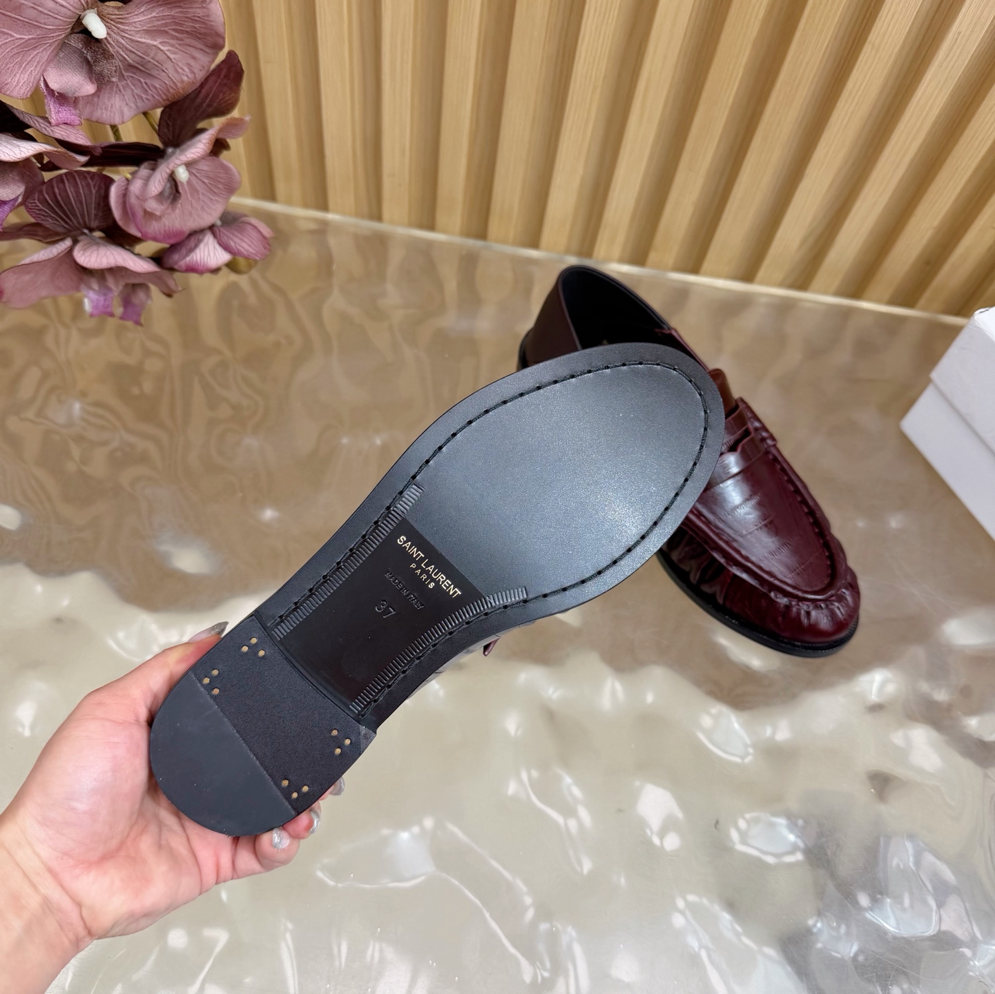 這款鞋子是AAAAA 1:1 質量(非常棒). 使用了和原版一模一樣的材料. 商標部分也保持了和聖羅蘭/Saint Laurent一樣. 圖片拍攝是實物鞋子拍攝, 您所收到的實物保證和我們圖片一模一樣.