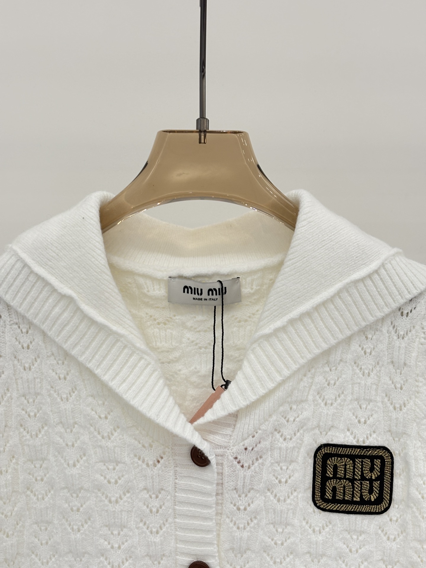 這款衣服是AAAAA 1:1 質量(非常棒). 使用了和原版一模一樣的材料. 商標部分也保持了和繆繆/Miu Miu一樣. 圖片拍攝是實物衣服拍攝, 您所收到的實物保證和我們圖片一模一樣.