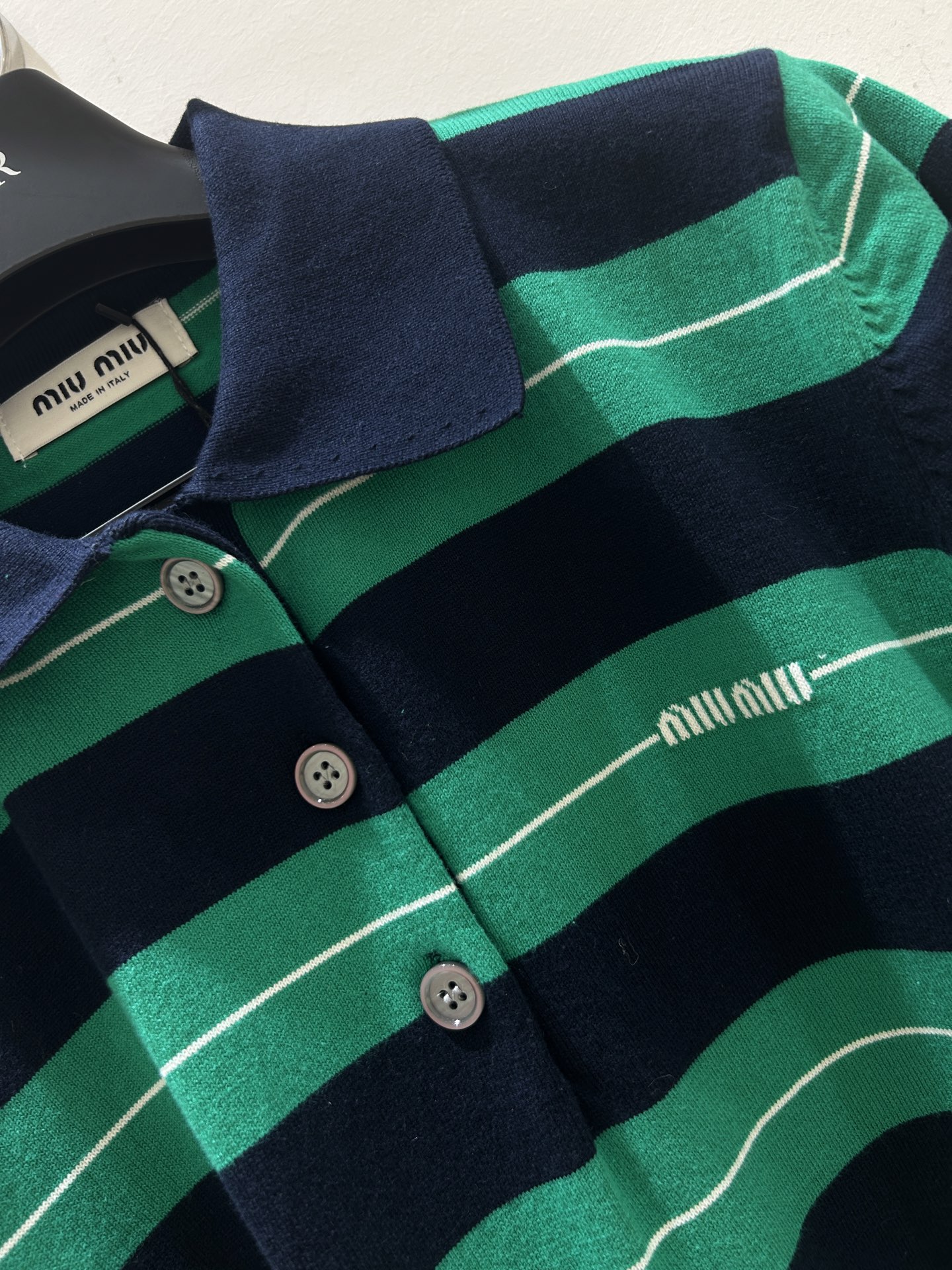 這款衣服是AAAAA 1:1 質量(非常棒). 使用了和原版一模一樣的材料. 商標部分也保持了和繆繆/Miu Miu一樣. 圖片拍攝是實物衣服拍攝, 您所收到的實物保證和我們圖片一模一樣.