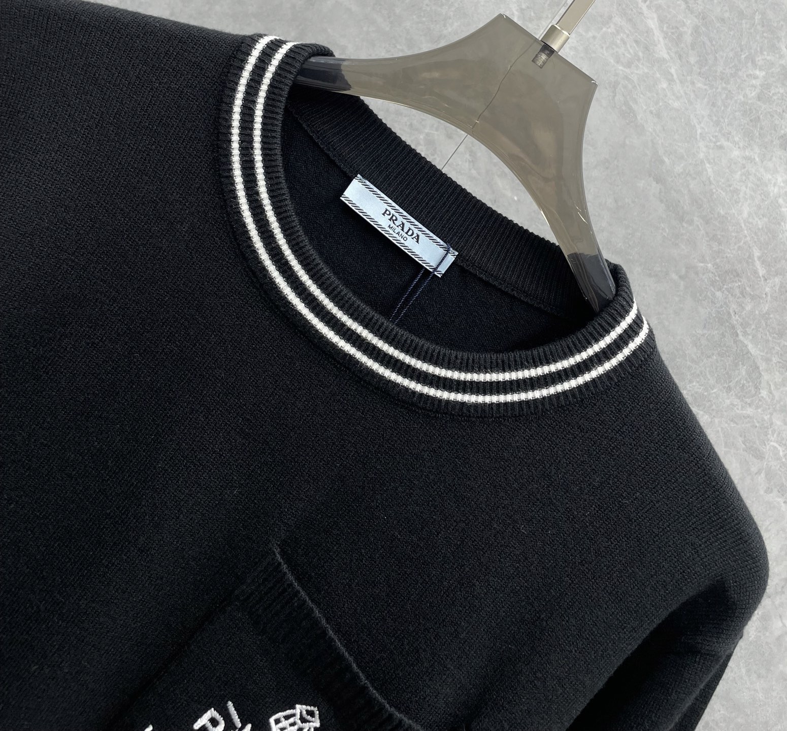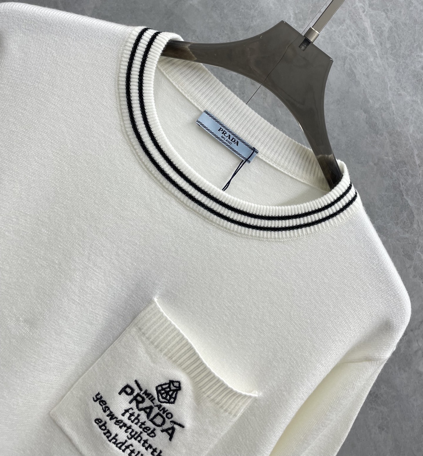 這款衣服是AAAAA 1:1 質量(非常棒). 使用了和原版一模一樣的材料. 商標部分也保持了和普拉達/Prada一樣. 圖片拍攝是實物衣服拍攝, 您所收到的實物保證和我們圖片一模一樣.