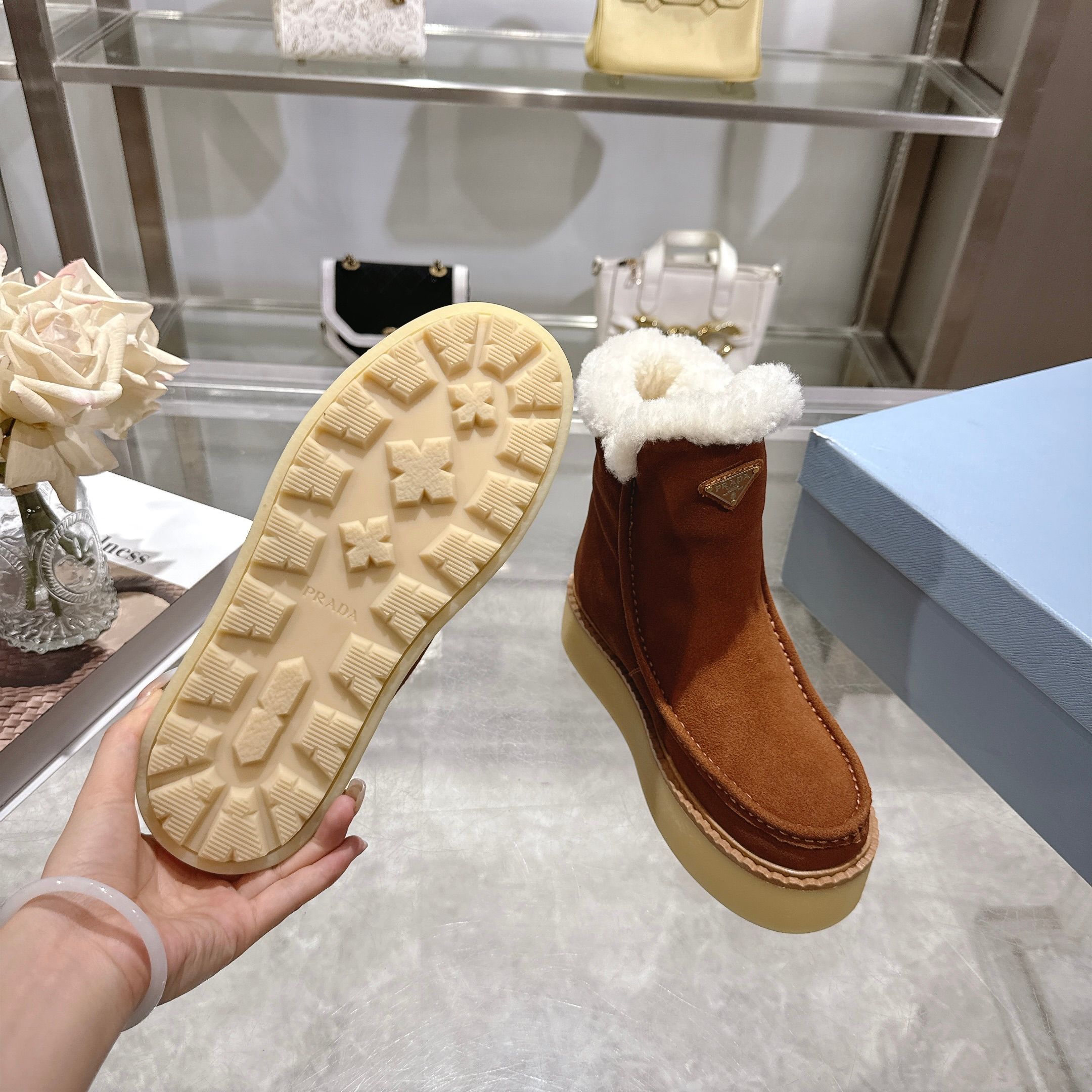 這款鞋子是AAAAA 1:1 質量(非常棒). 使用了和原版一模一樣的材料. 商標部分也保持了和普拉達/Prada一樣. 圖片拍攝是實物鞋子拍攝, 您所收到的實物保證和我們圖片一模一樣.