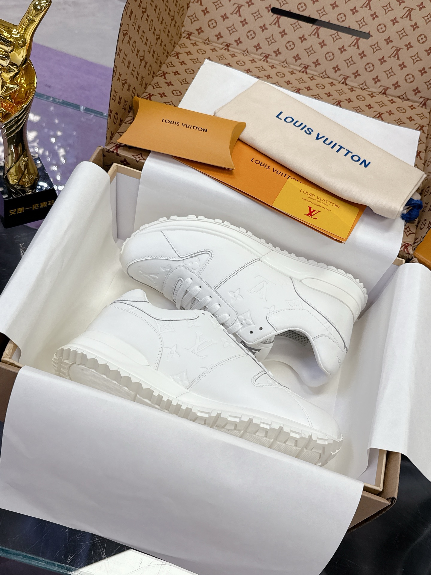 這款鞋子是AAAAA 1:1 質量(非常棒). 使用了和原版一模一樣的材料. 商標部分也保持了和路易威登/Louis Vuitton一樣. 圖片拍攝是實物鞋子拍攝, 您所收到的實物保證和我們圖片一模一樣.