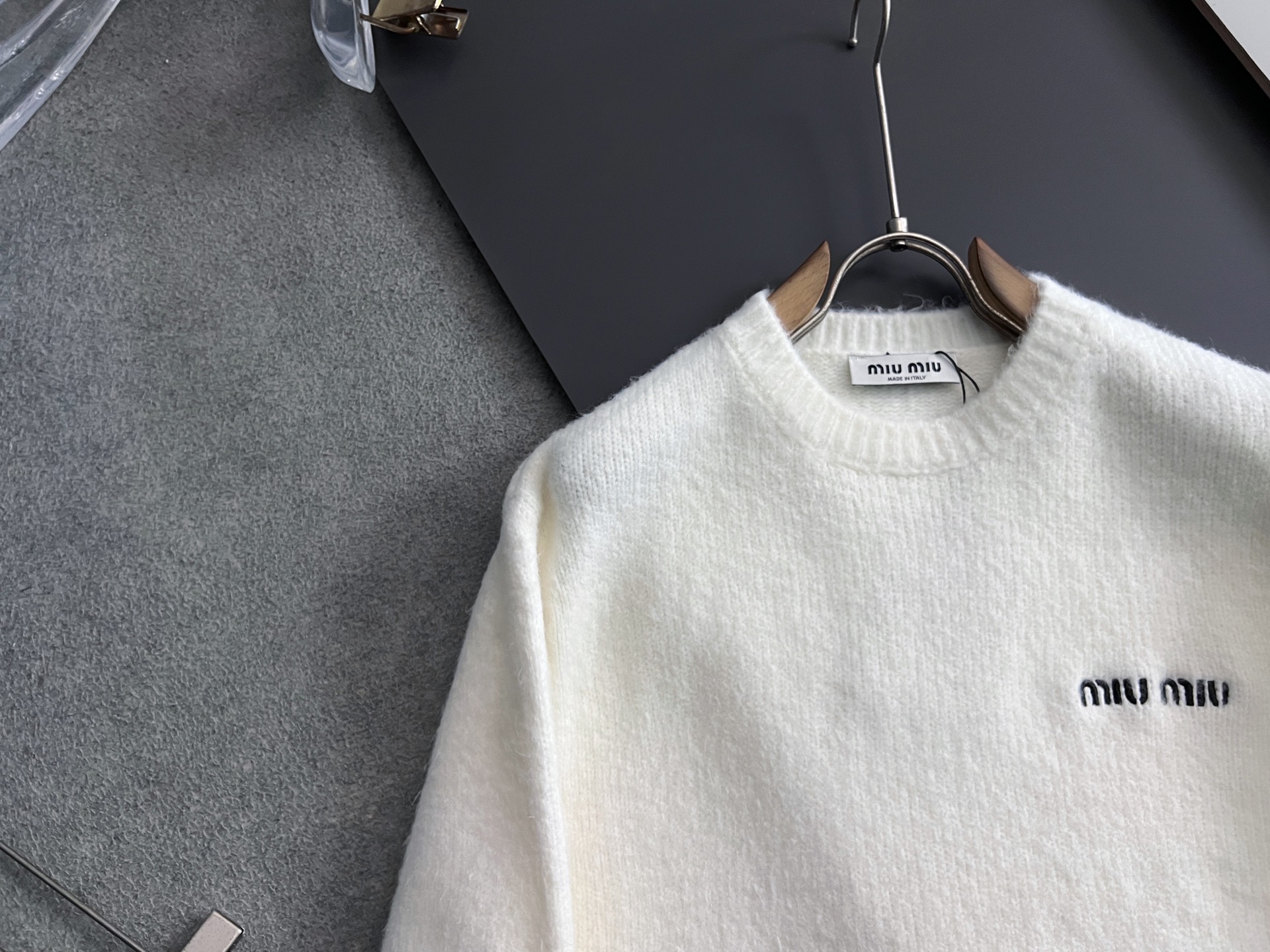 這款衣服是AAAAA 1:1 質量(非常棒). 使用了和原版一模一樣的材料. 商標部分也保持了和繆繆/Miu Miu一樣. 圖片拍攝是實物衣服拍攝, 您所收到的實物保證和我們圖片一模一樣.