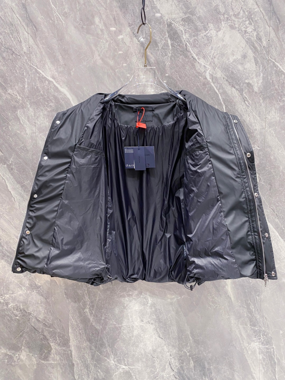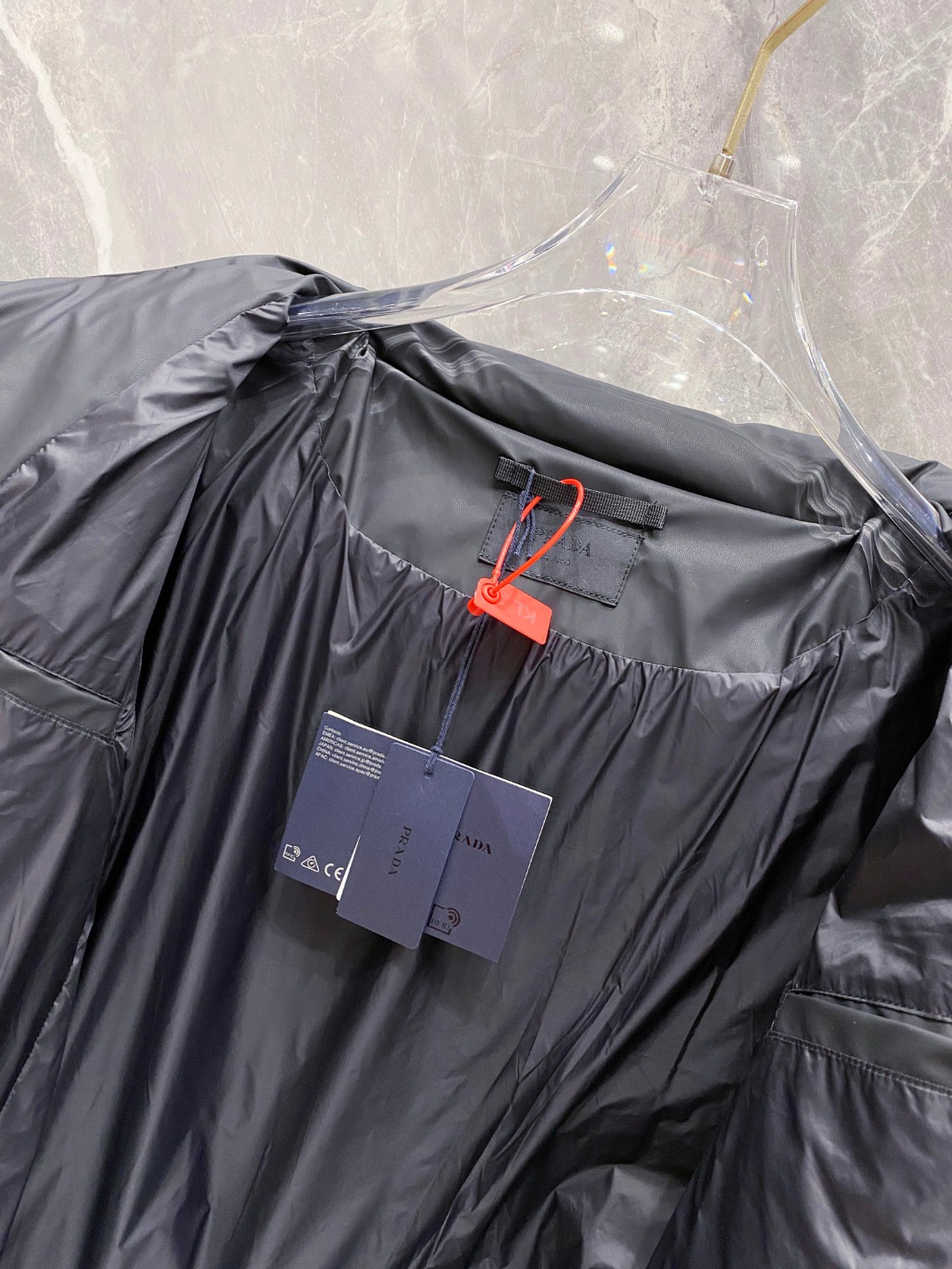 這款衣服是AAAAA 1:1 質量(非常棒). 使用了和原版一模一樣的材料. 商標部分也保持了和普拉達/Prada一樣. 圖片拍攝是實物衣服拍攝, 您所收到的實物保證和我們圖片一模一樣.
