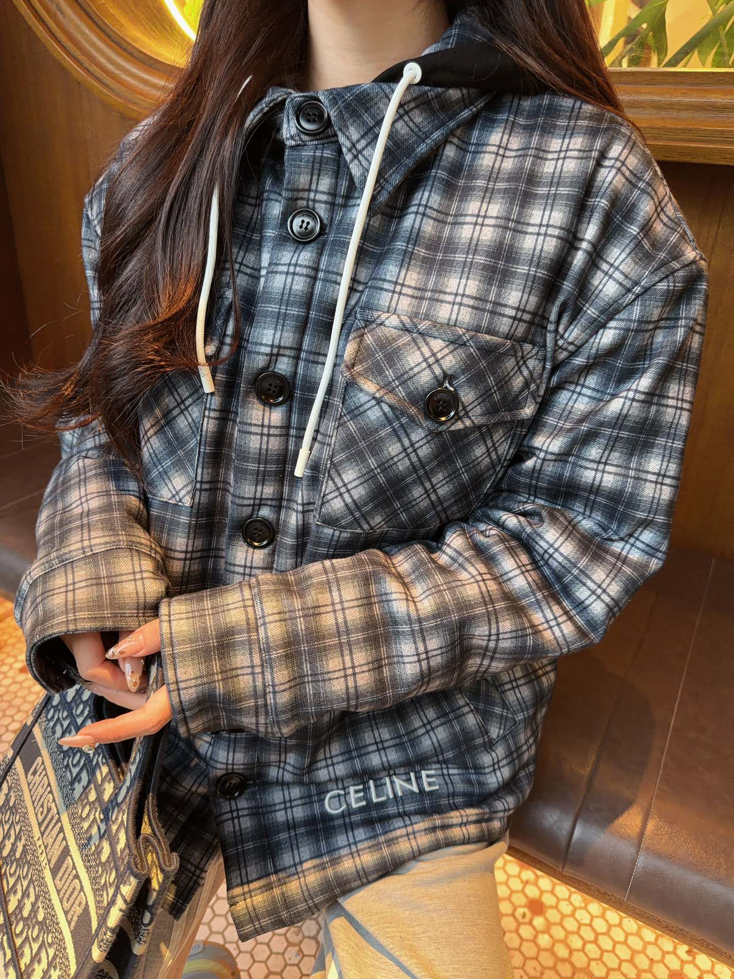 這款衣服是AAAAA 1:1 質量(非常棒). 使用了和原版一模一樣的材料. 商標部分也保持了和思琳/赛琳/Celine一樣. 圖片拍攝是實物衣服拍攝, 您所收到的實物保證和我們圖片一模一樣.
