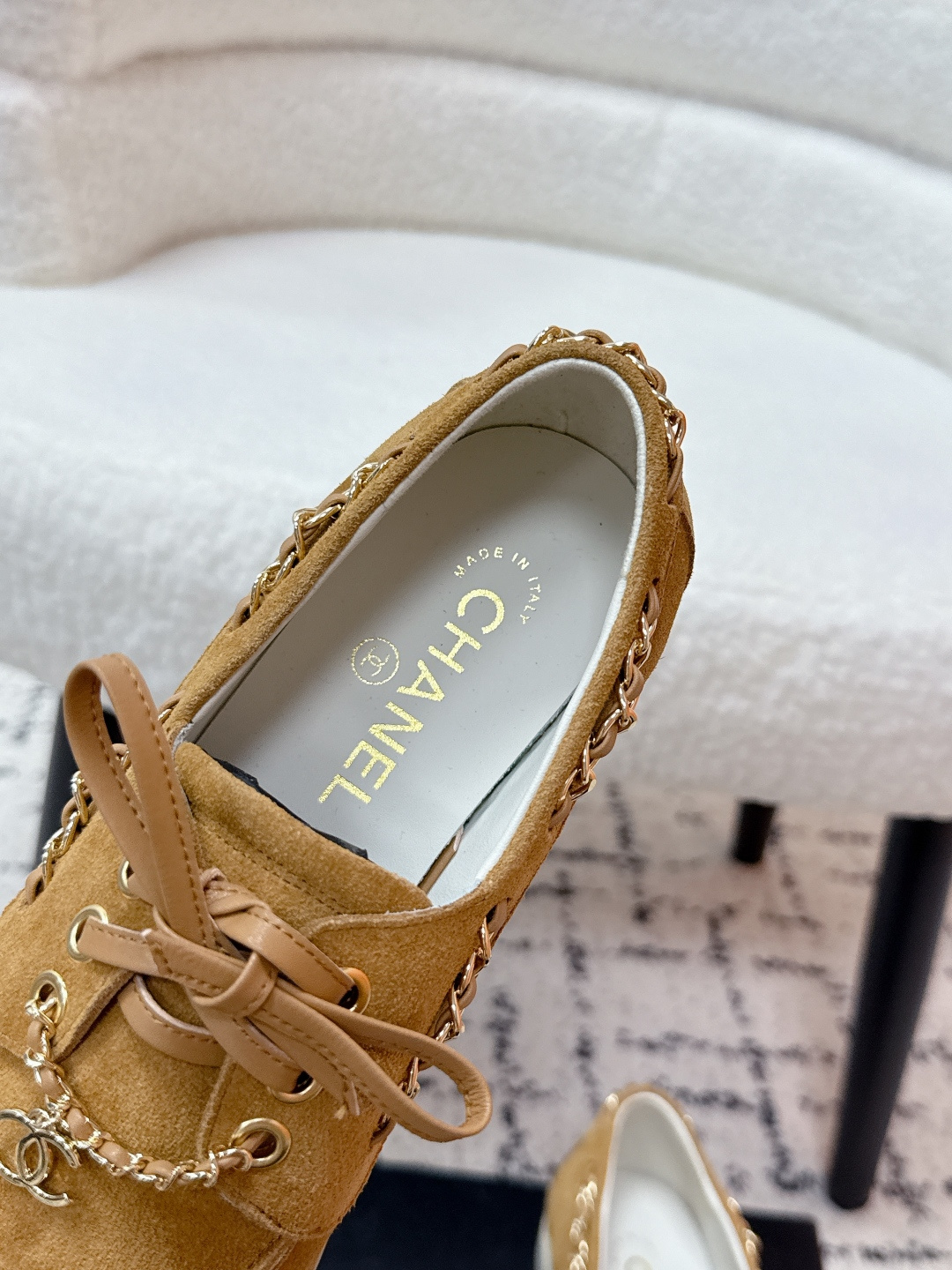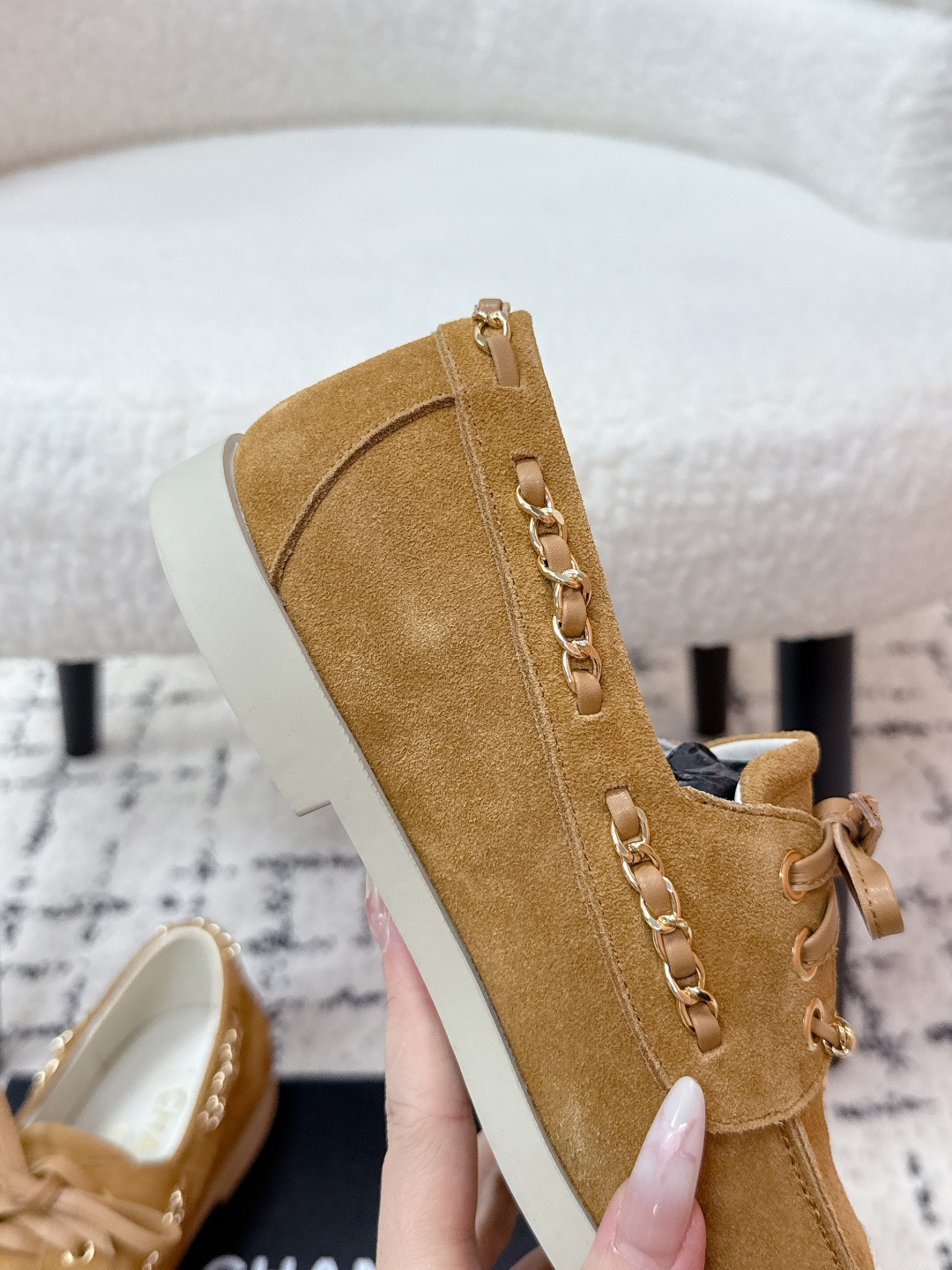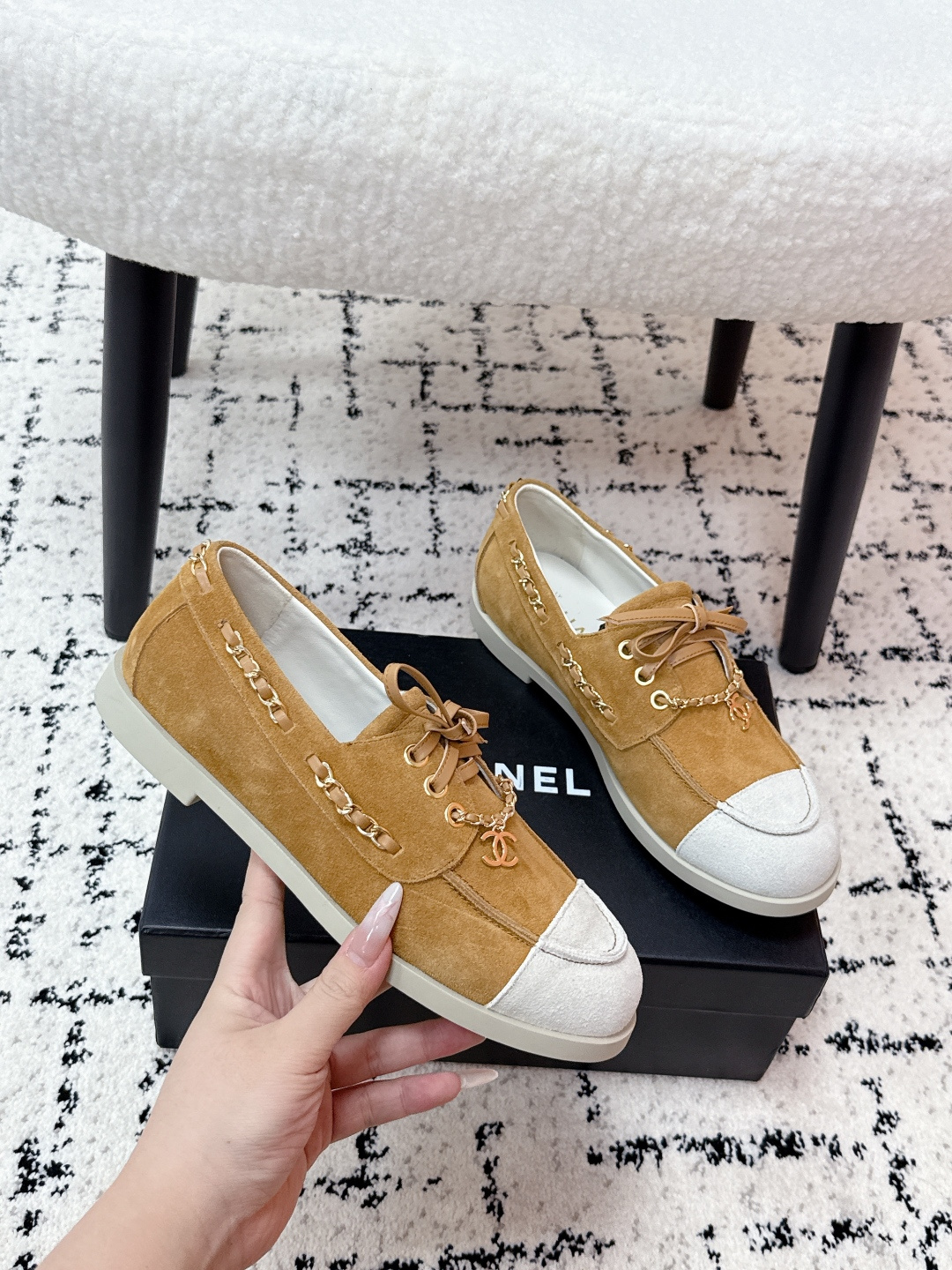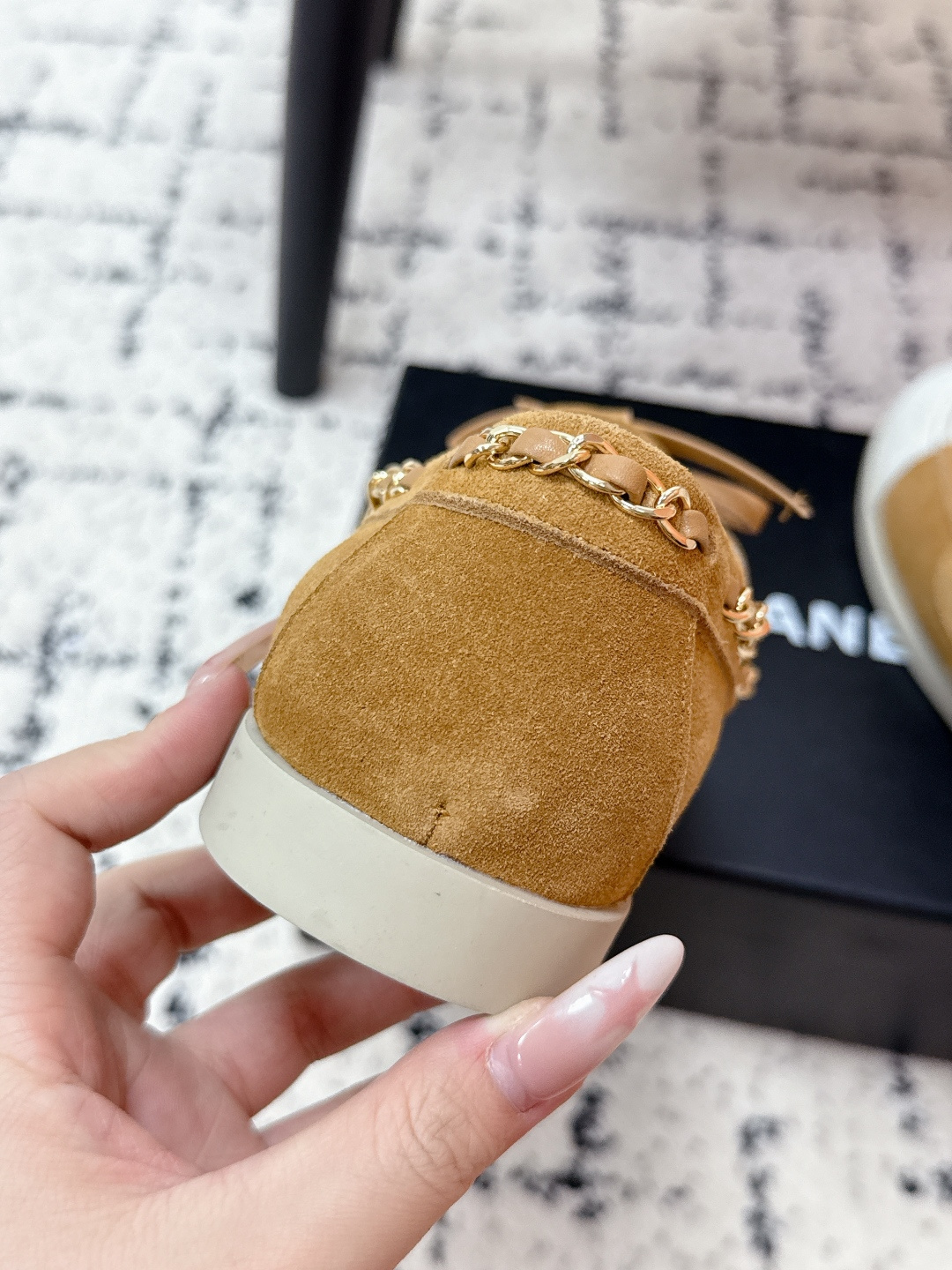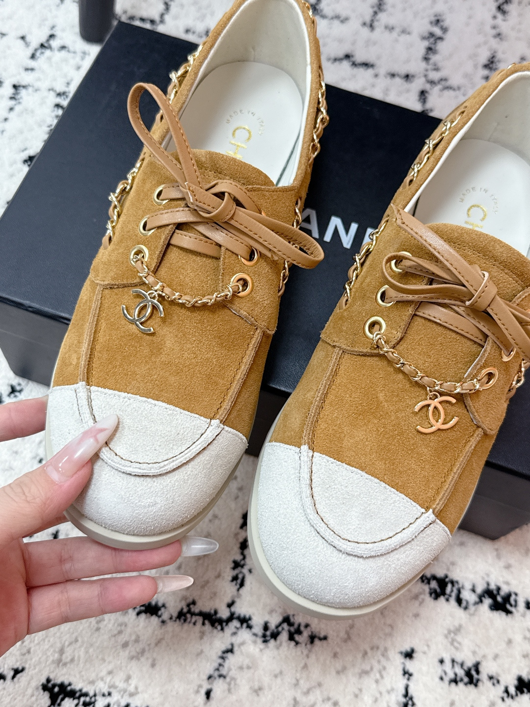 這款鞋子是AAAAA 1:1 質量(非常棒). 使用了和原版一模一樣的材料. 商標部分也保持了和香奈兒/Chanel一樣. 圖片拍攝是實物鞋子拍攝, 您所收到的實物保證和我們圖片一模一樣.