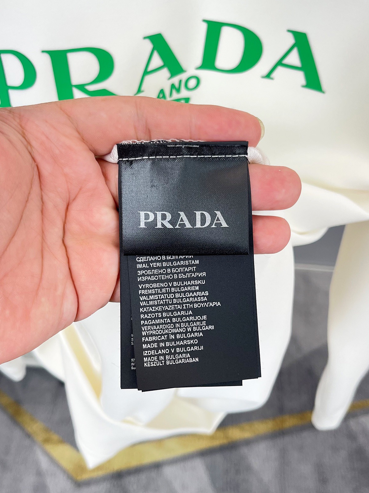 這款衣服是AAAAA 1:1 質量(非常棒). 使用了和原版一模一樣的材料. 商標部分也保持了和普拉達/Prada一樣. 圖片拍攝是實物衣服拍攝, 您所收到的實物保證和我們圖片一模一樣.