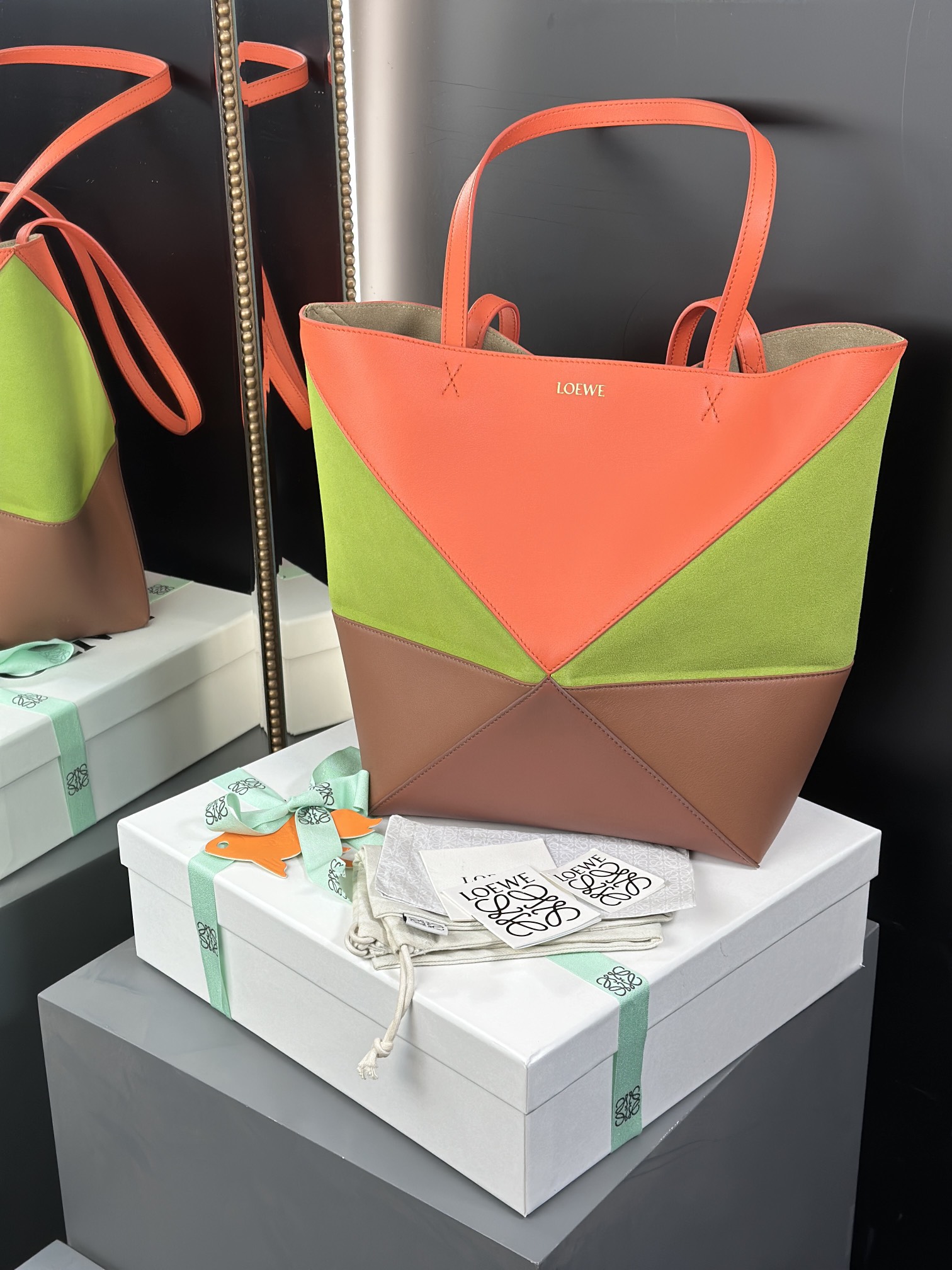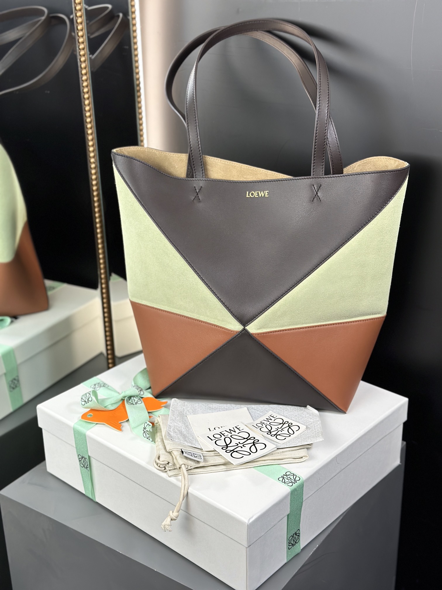 這款包包是AAAAA 1:1 質量(非常棒). 使用了和原版一模一樣的材料. 商標部分也保持了和Loewe一樣. 圖片拍攝是實物包包拍攝, 您所收到的實物保證和我們圖片一模一樣.
