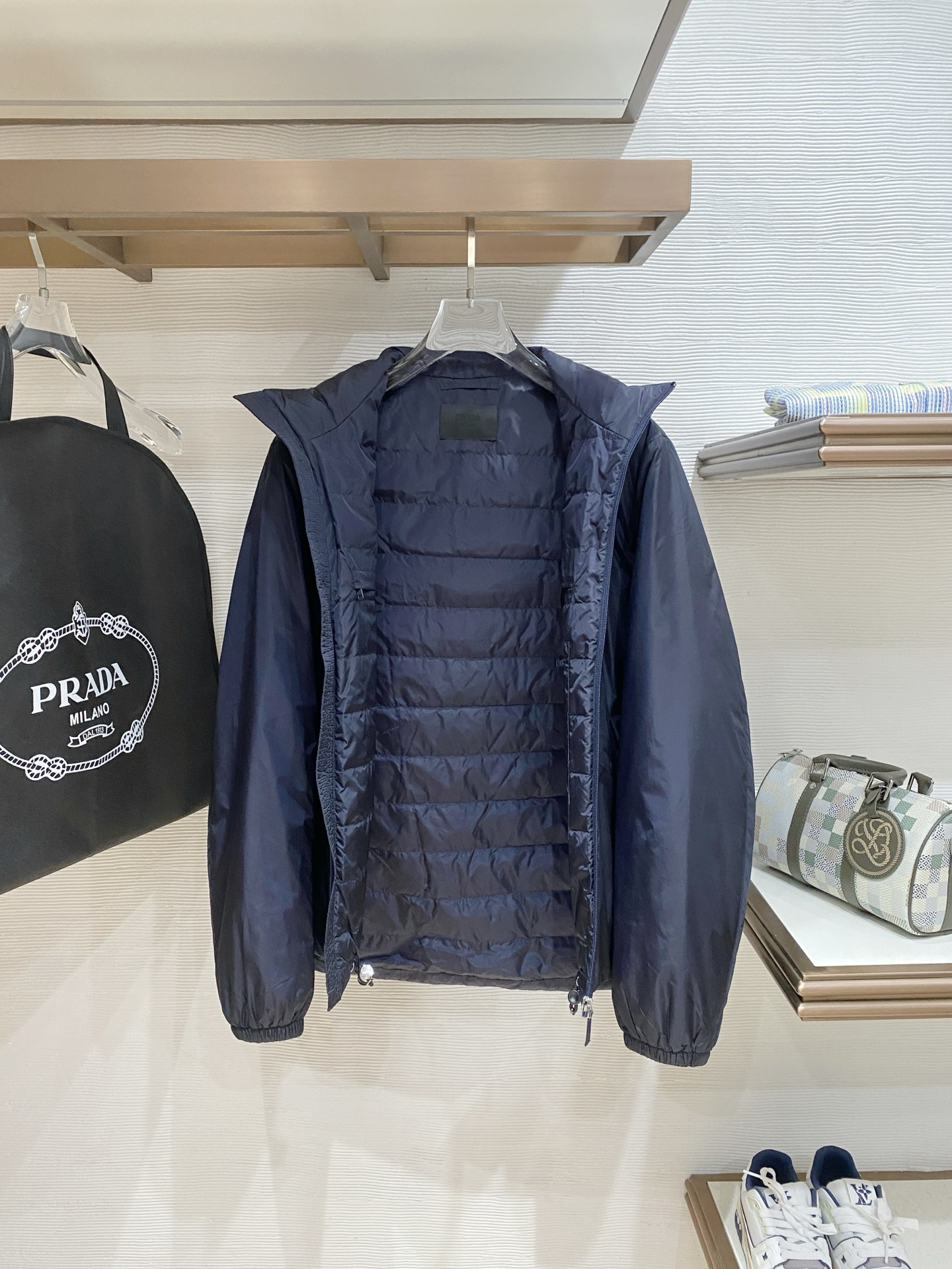 這款衣服是AAAAA 1:1 質量(非常棒). 使用了和原版一模一樣的材料. 商標部分也保持了和普拉達/Prada一樣. 圖片拍攝是實物衣服拍攝, 您所收到的實物保證和我們圖片一模一樣.