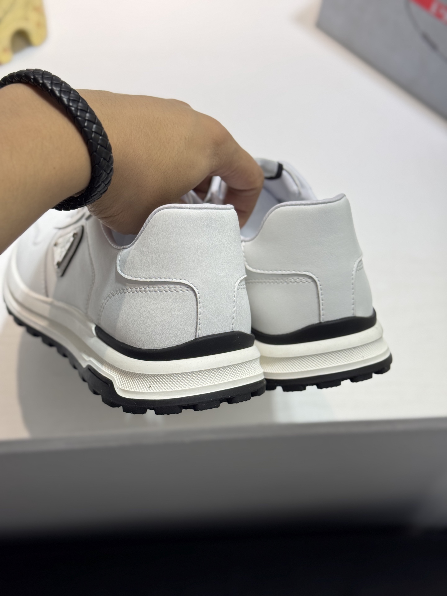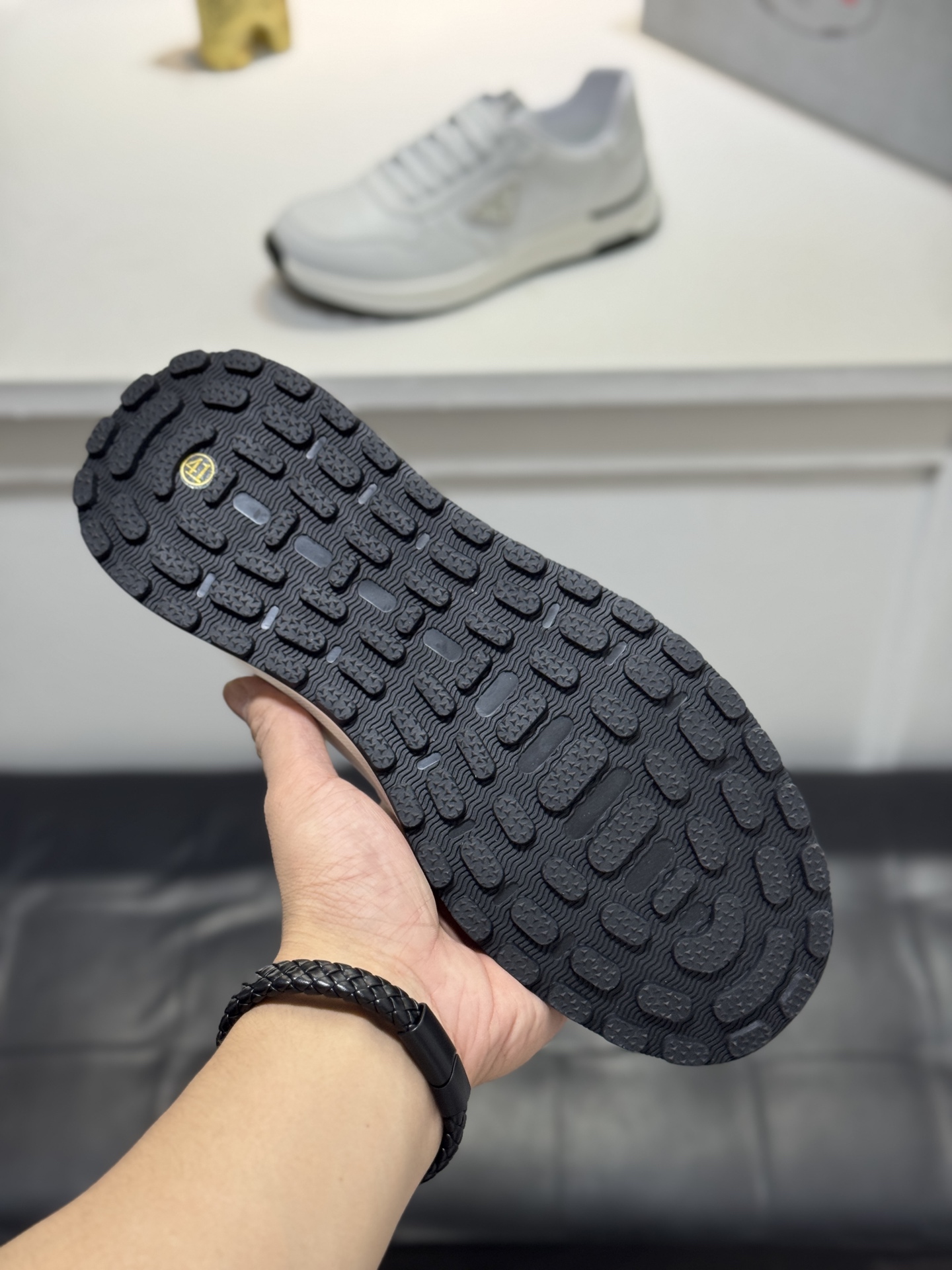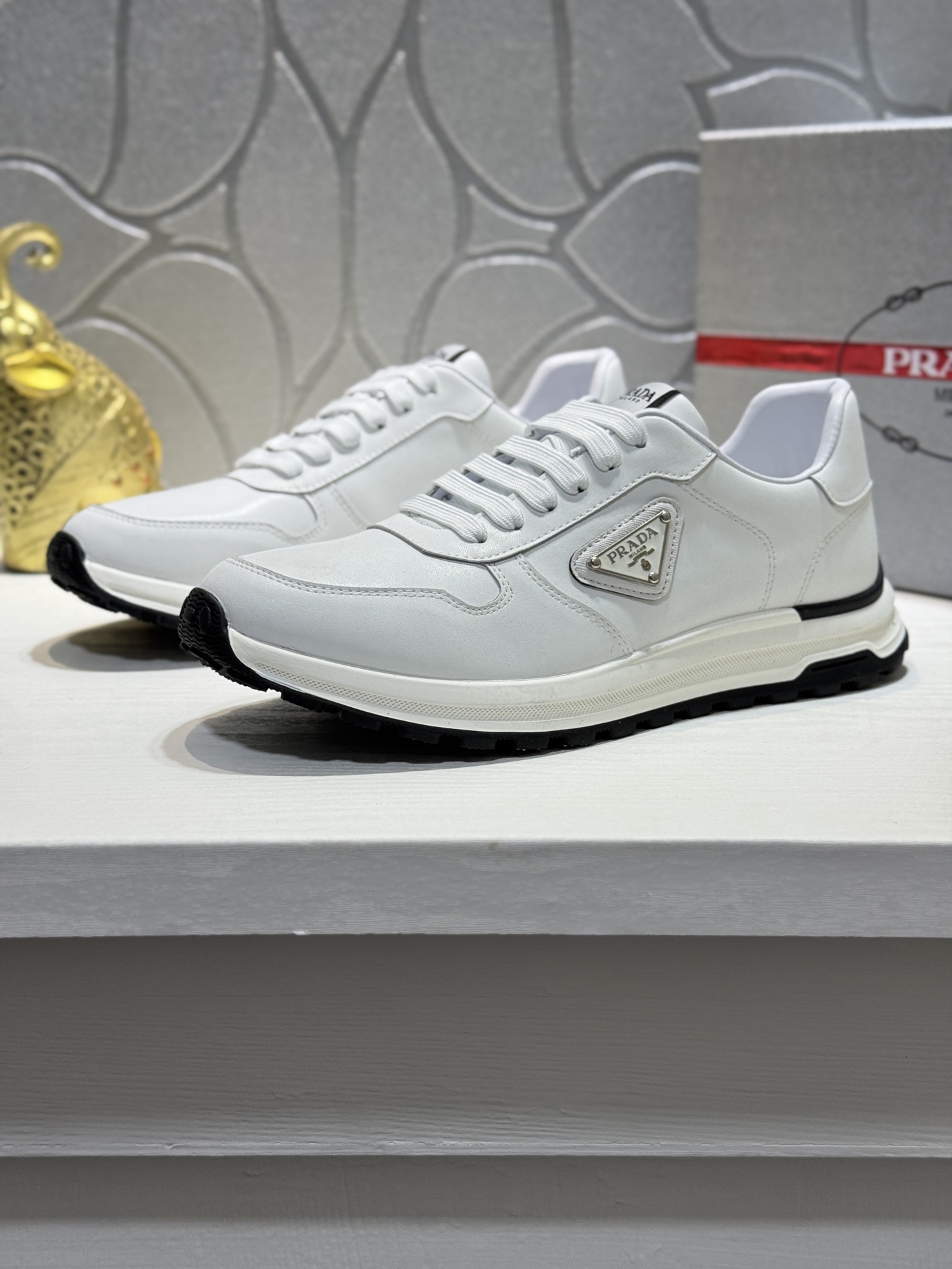 這款鞋子是AAAAA 1:1 質量(非常棒). 使用了和原版一模一樣的材料. 商標部分也保持了和普拉達/Prada一樣. 圖片拍攝是實物鞋子拍攝, 您所收到的實物保證和我們圖片一模一樣.