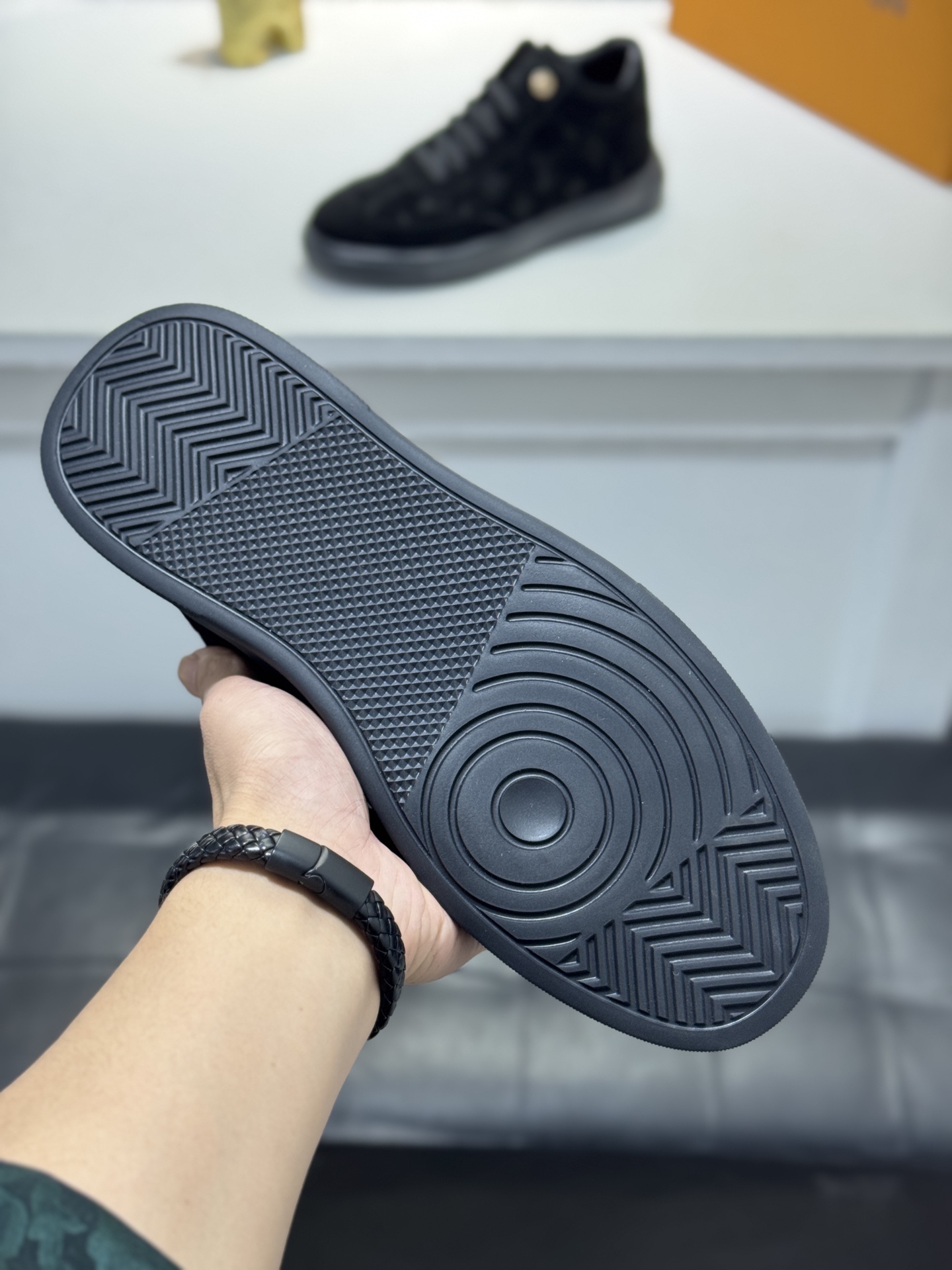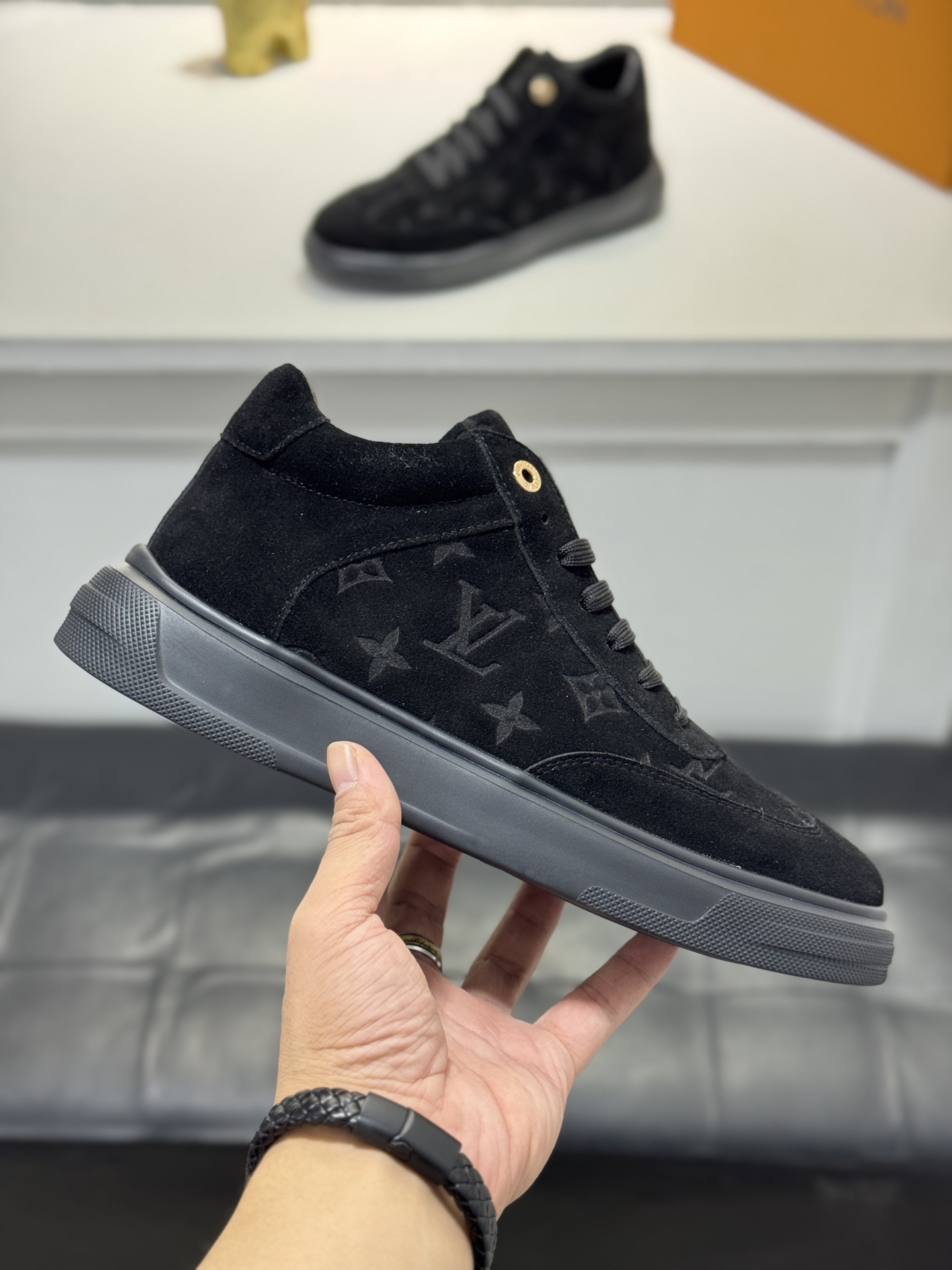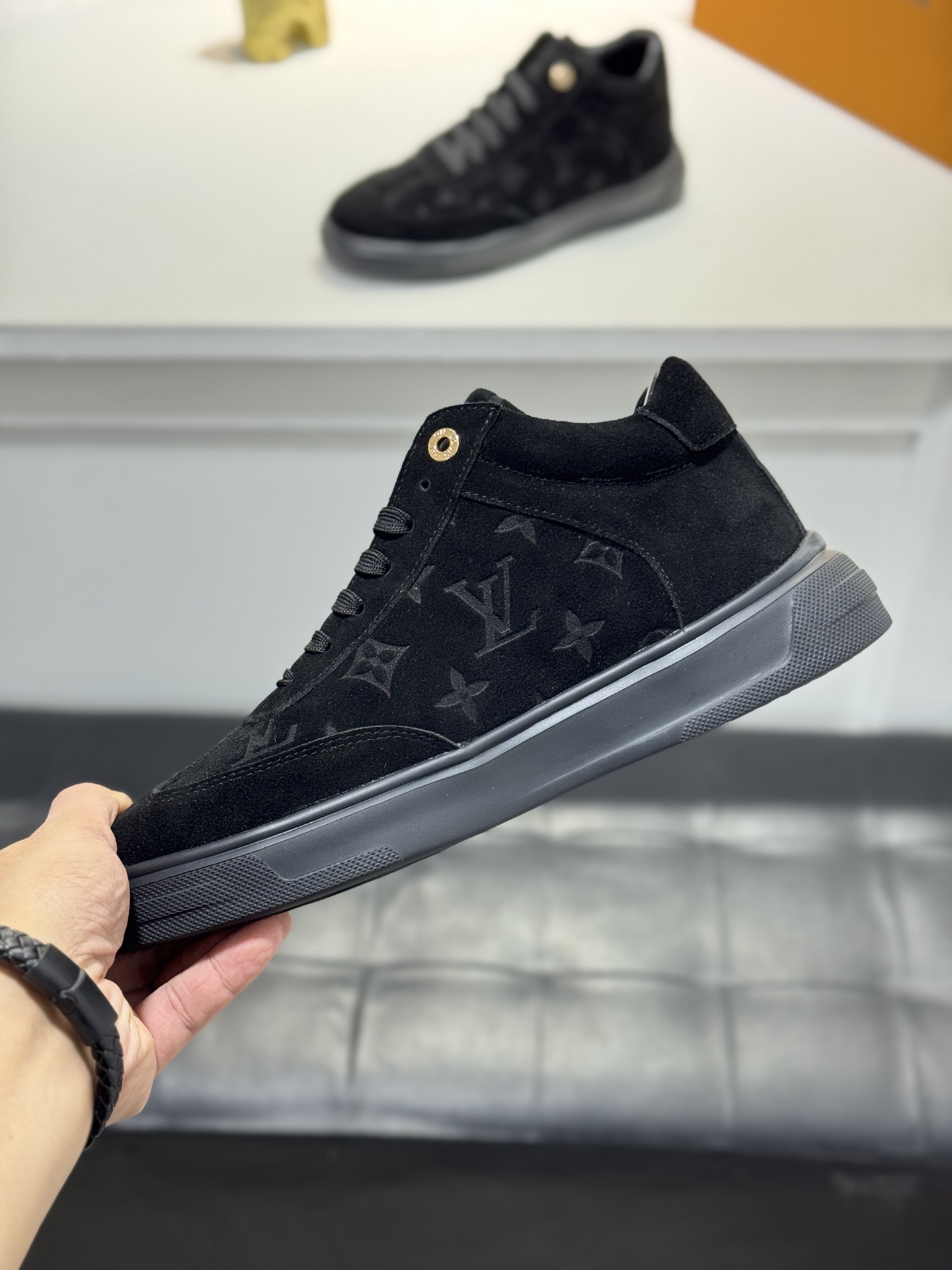 這款鞋子是AAAAA 1:1 質量(非常棒). 使用了和原版一模一樣的材料. 商標部分也保持了和路易威登/Louis Vuitton一樣. 圖片拍攝是實物鞋子拍攝, 您所收到的實物保證和我們圖片一模一樣.