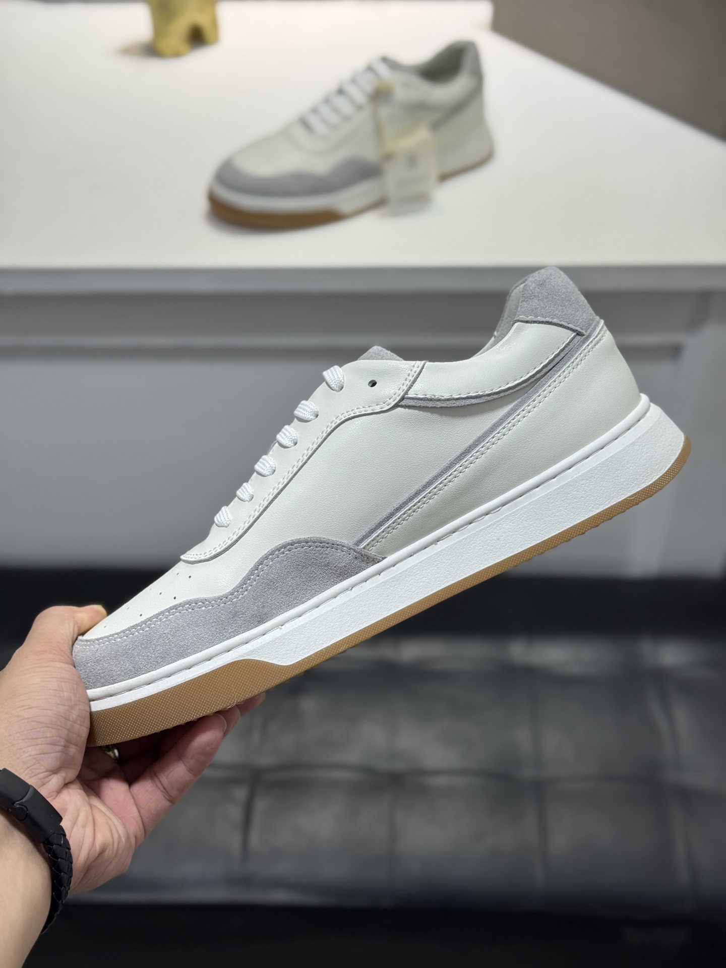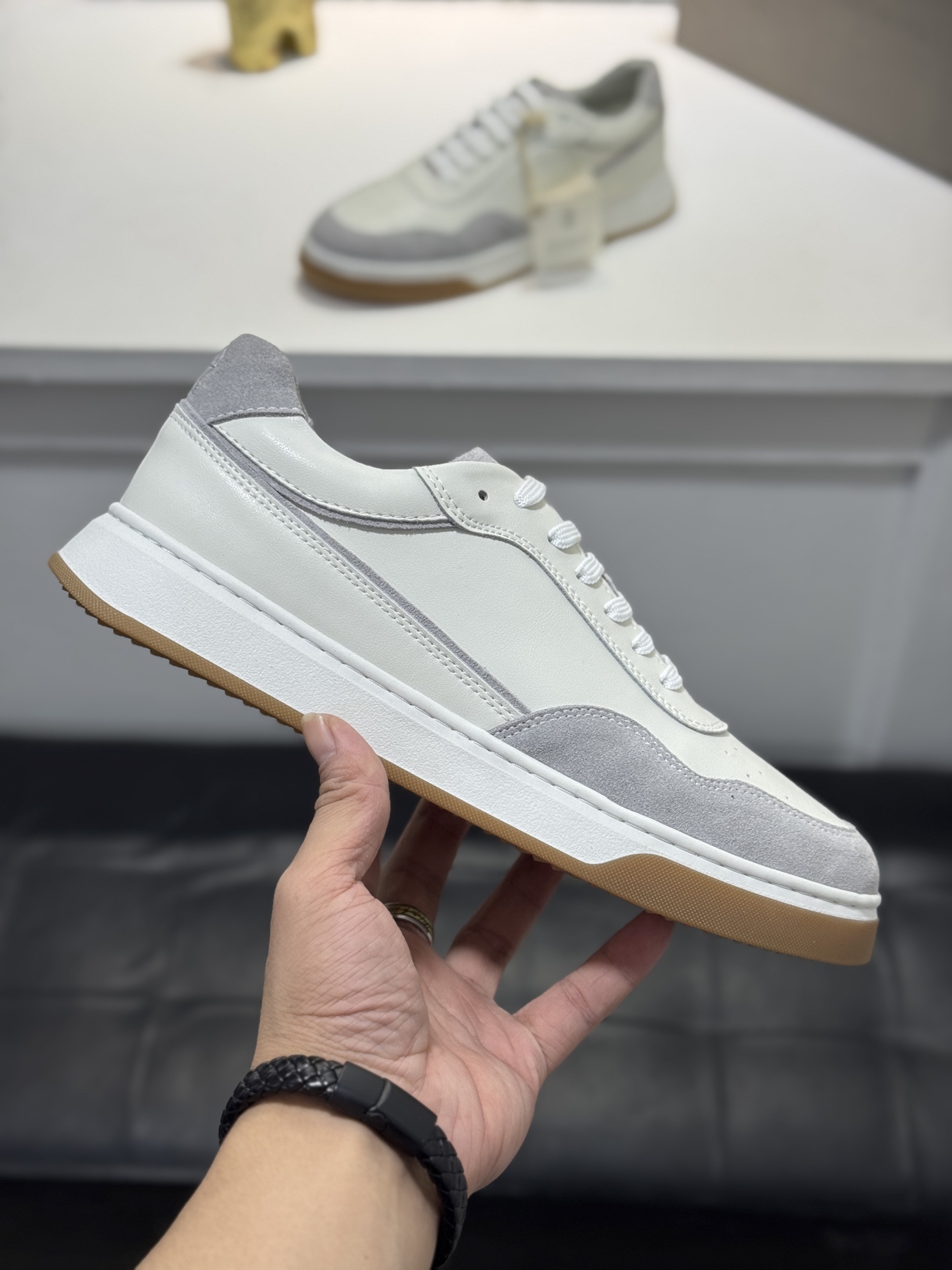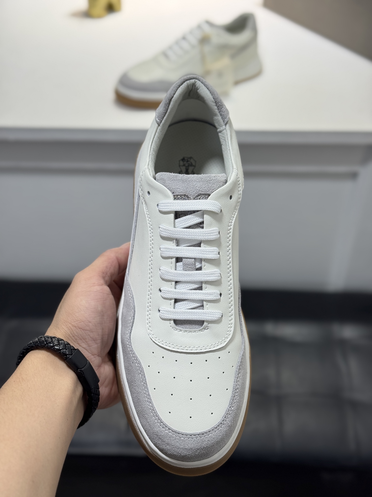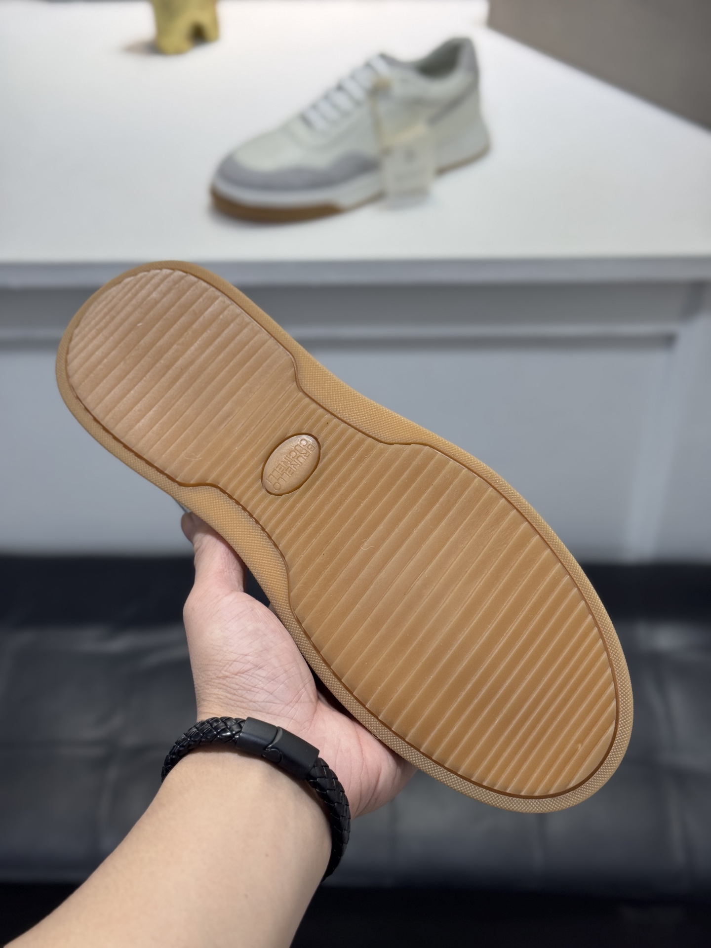 這款鞋子是AAAAA 1:1 質量(非常棒). 使用了和原版一模一樣的材料. 商標部分也保持了和Brunello Cucinelli一樣. 圖片拍攝是實物鞋子拍攝, 您所收到的實物保證和我們圖片一模一樣.