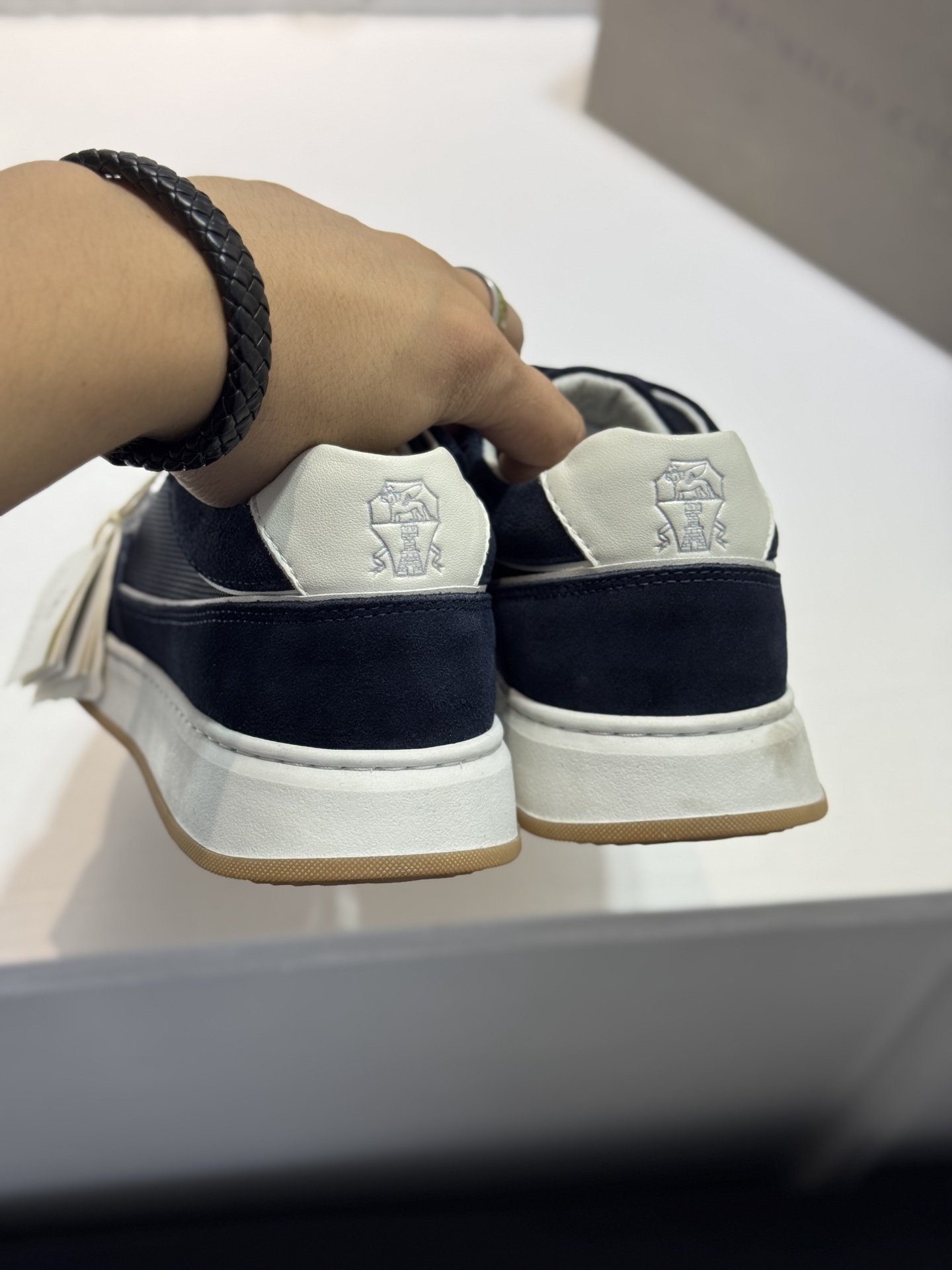 這款鞋子是AAAAA 1:1 質量(非常棒). 使用了和原版一模一樣的材料. 商標部分也保持了和Brunello Cucinelli一樣. 圖片拍攝是實物鞋子拍攝, 您所收到的實物保證和我們圖片一模一樣.