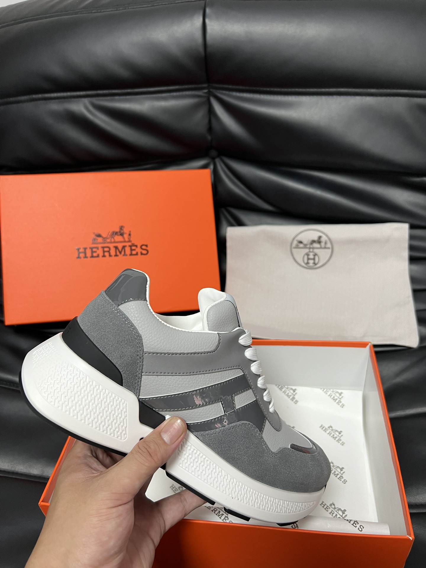 這款鞋子是AAAAA 1:1 質量(非常棒). 使用了和原版一模一樣的材料. 商標部分也保持了和愛馬仕/Hermes一樣. 圖片拍攝是實物鞋子拍攝, 您所收到的實物保證和我們圖片一模一樣.