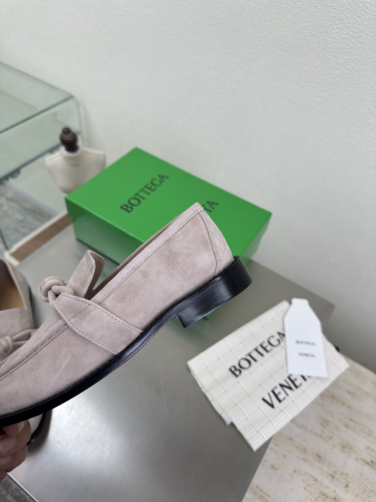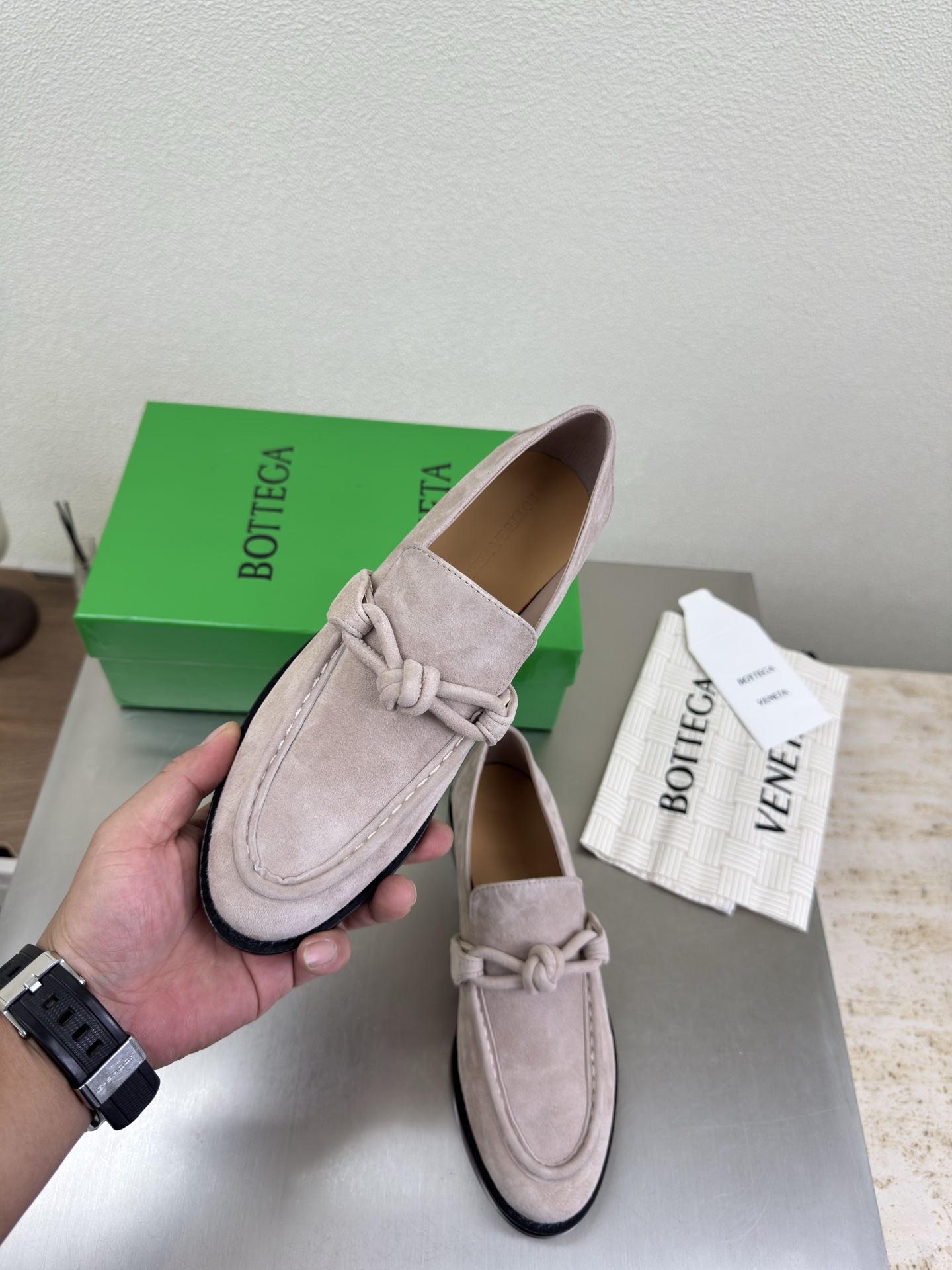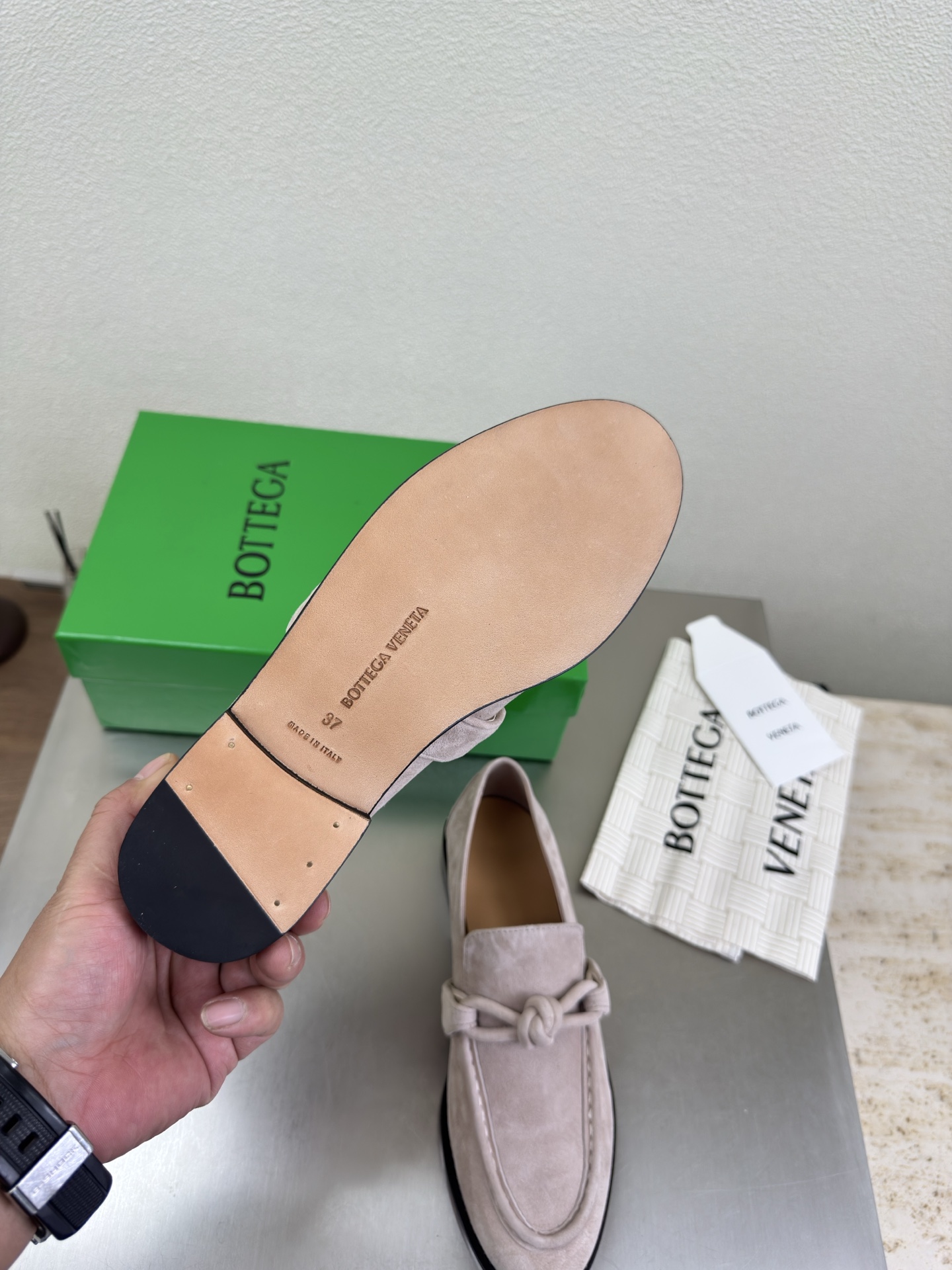 這款鞋子是AAAAA 1:1 質量(非常棒). 使用了和原版一模一樣的材料. 商標部分也保持了和葆蝶家/Bottega Veneta一樣. 圖片拍攝是實物鞋子拍攝, 您所收到的實物保證和我們圖片一模一樣.