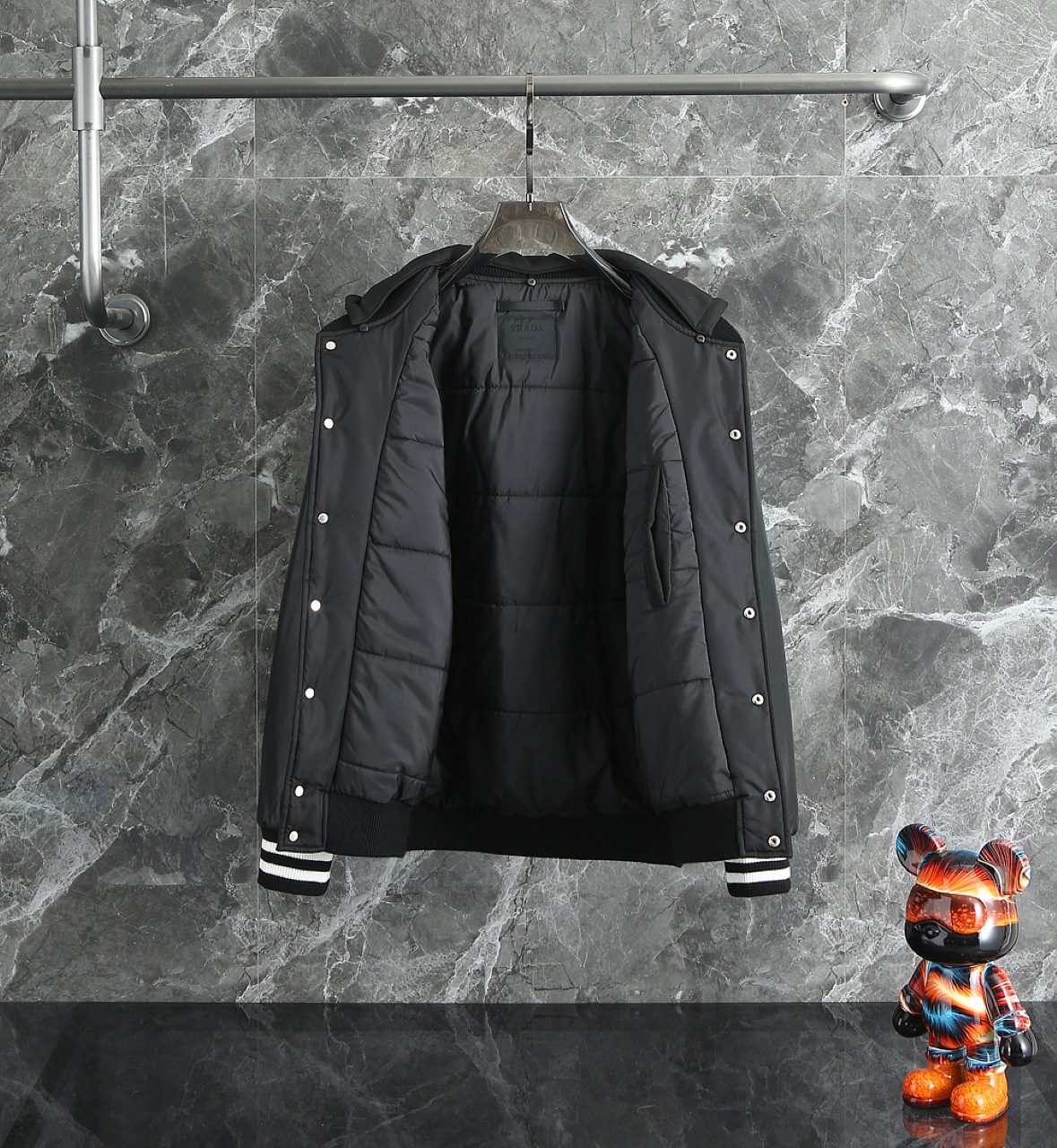 這款衣服是AAAAA 1:1 質量(非常棒). 使用了和原版一模一樣的材料. 商標部分也保持了和普拉達/Prada一樣. 圖片拍攝是實物衣服拍攝, 您所收到的實物保證和我們圖片一模一樣.